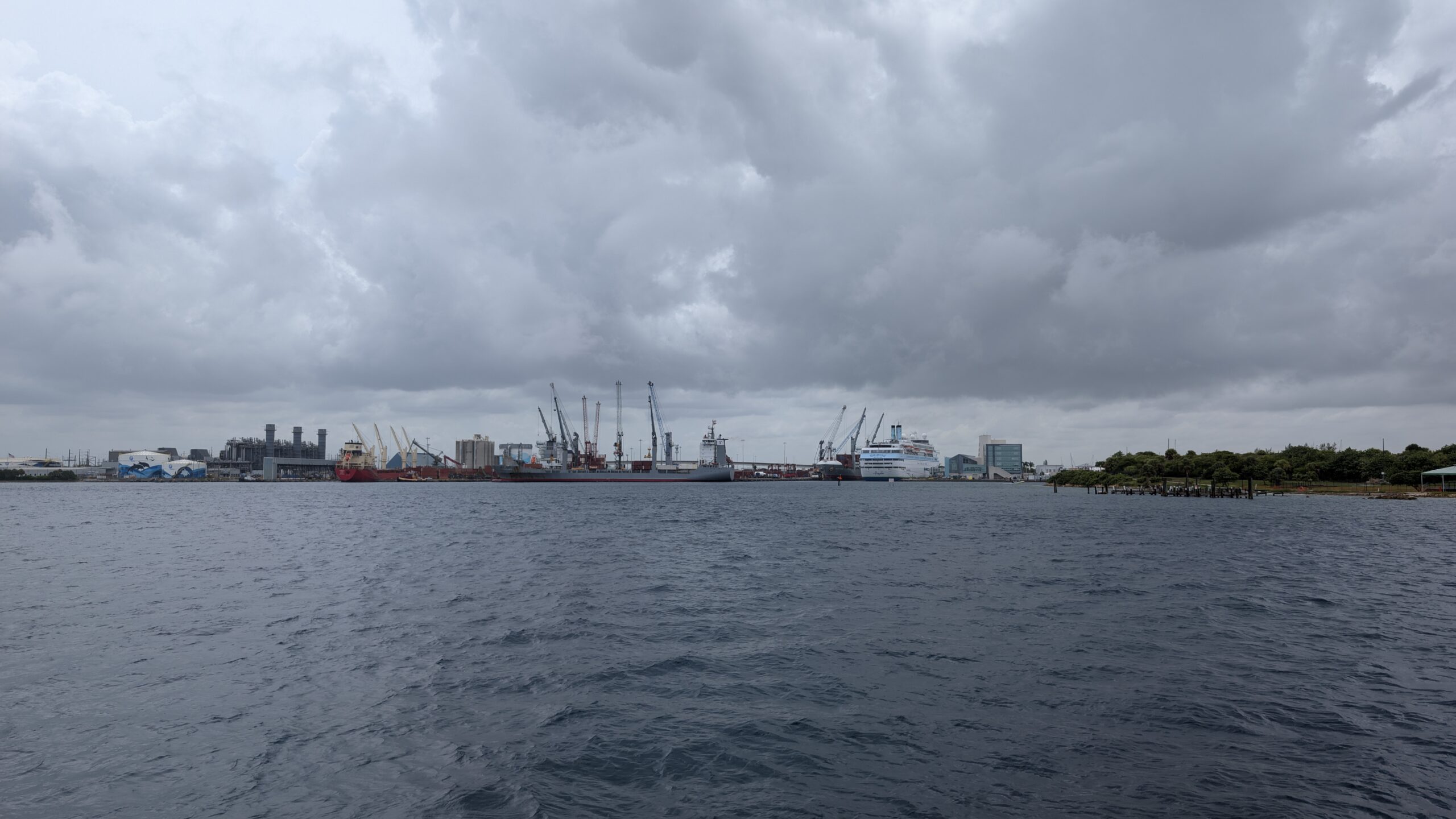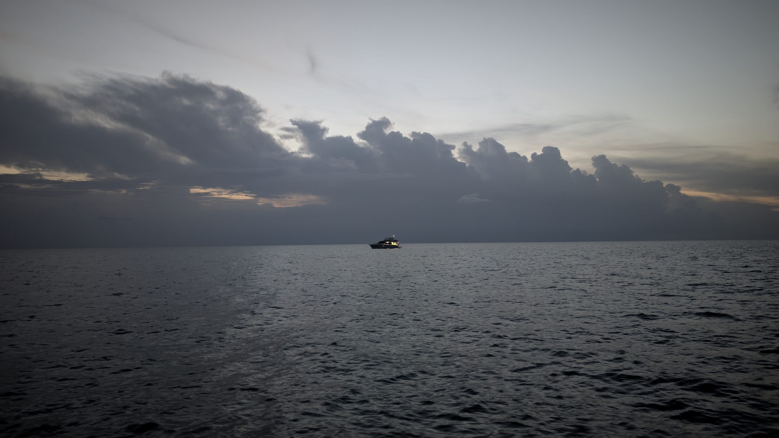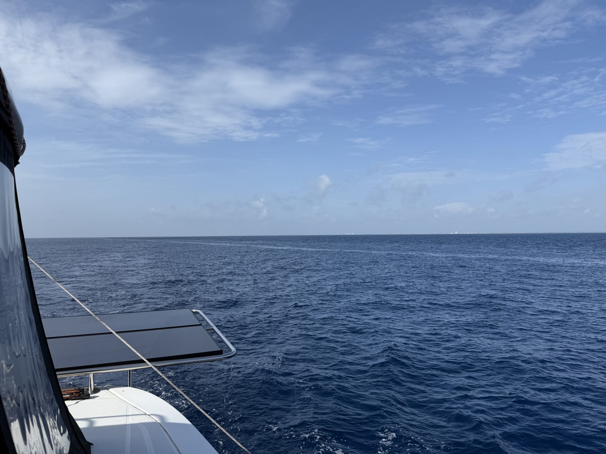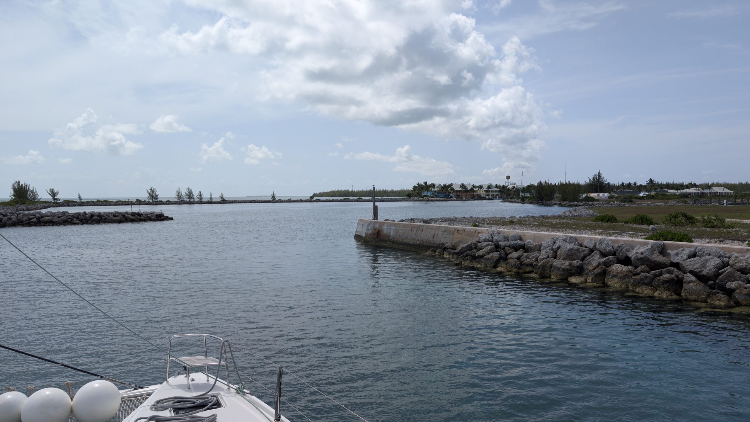 Wir wollen heute möglichst nahe an West End auf Grand Bahama kommen, darum heisst es schon um 6:30 Uhr Anker lichten. Erst ganz ohne, dann mit sehr wenig Wind motoren wir durch das ruhige Meer. Wir kommen ganz gut voran. Unterwegs werden wir zwar von einem Regenschauer geduscht, aber die Gewitter halten sich schön fern. 😁