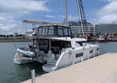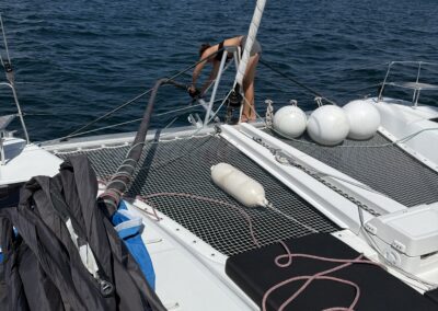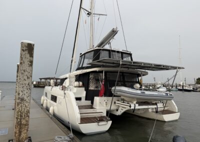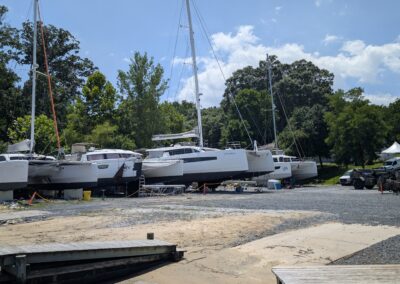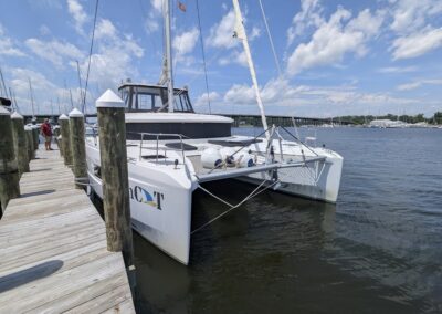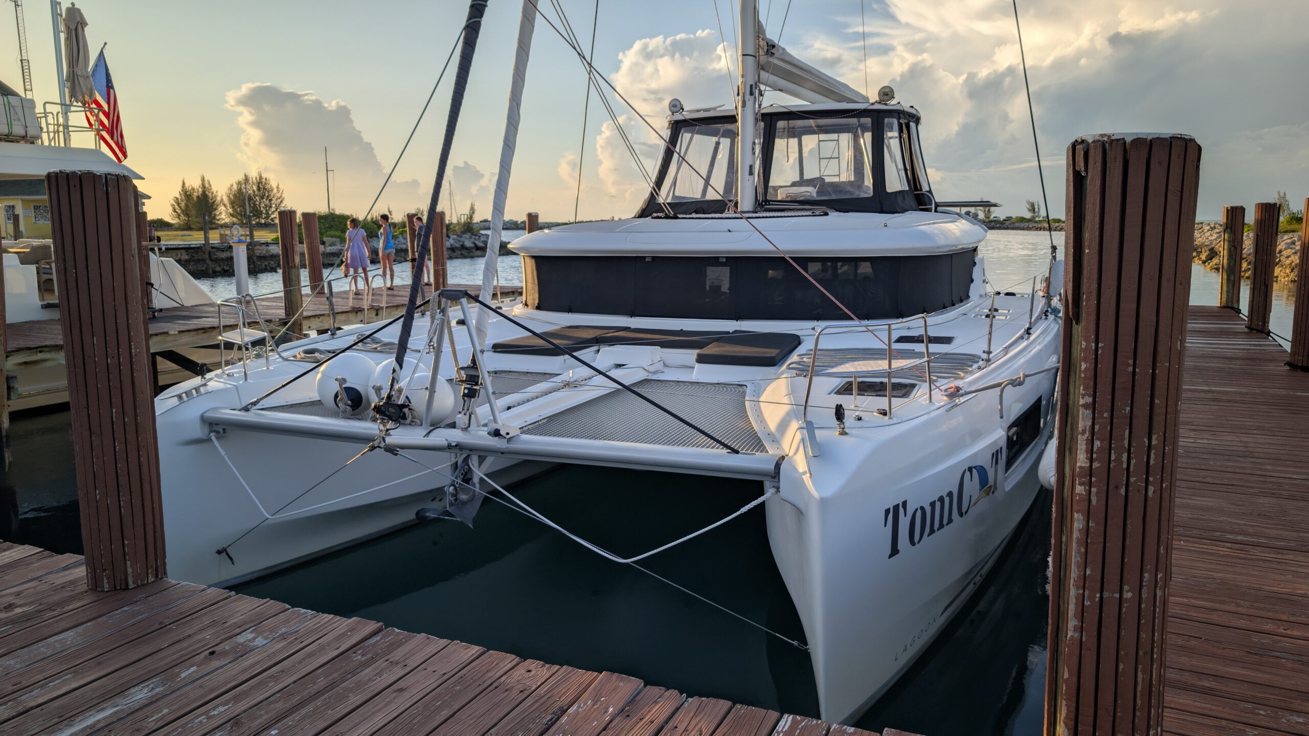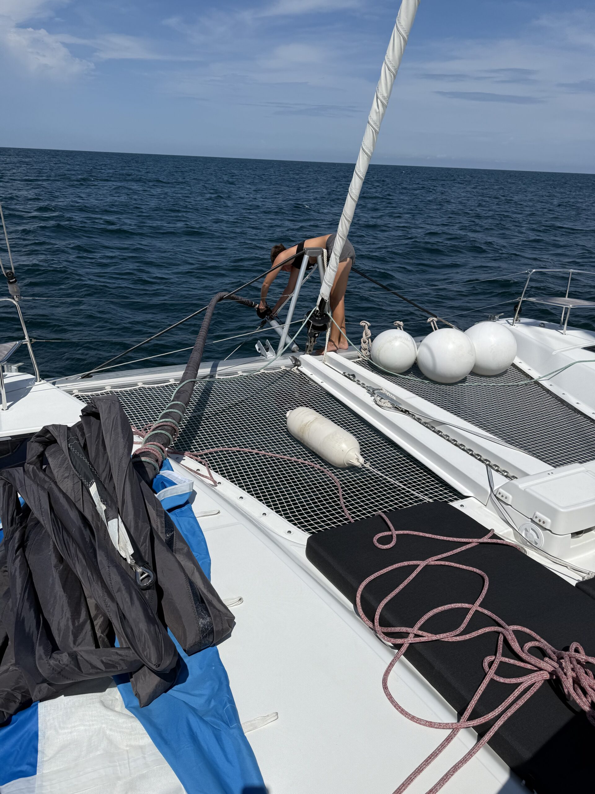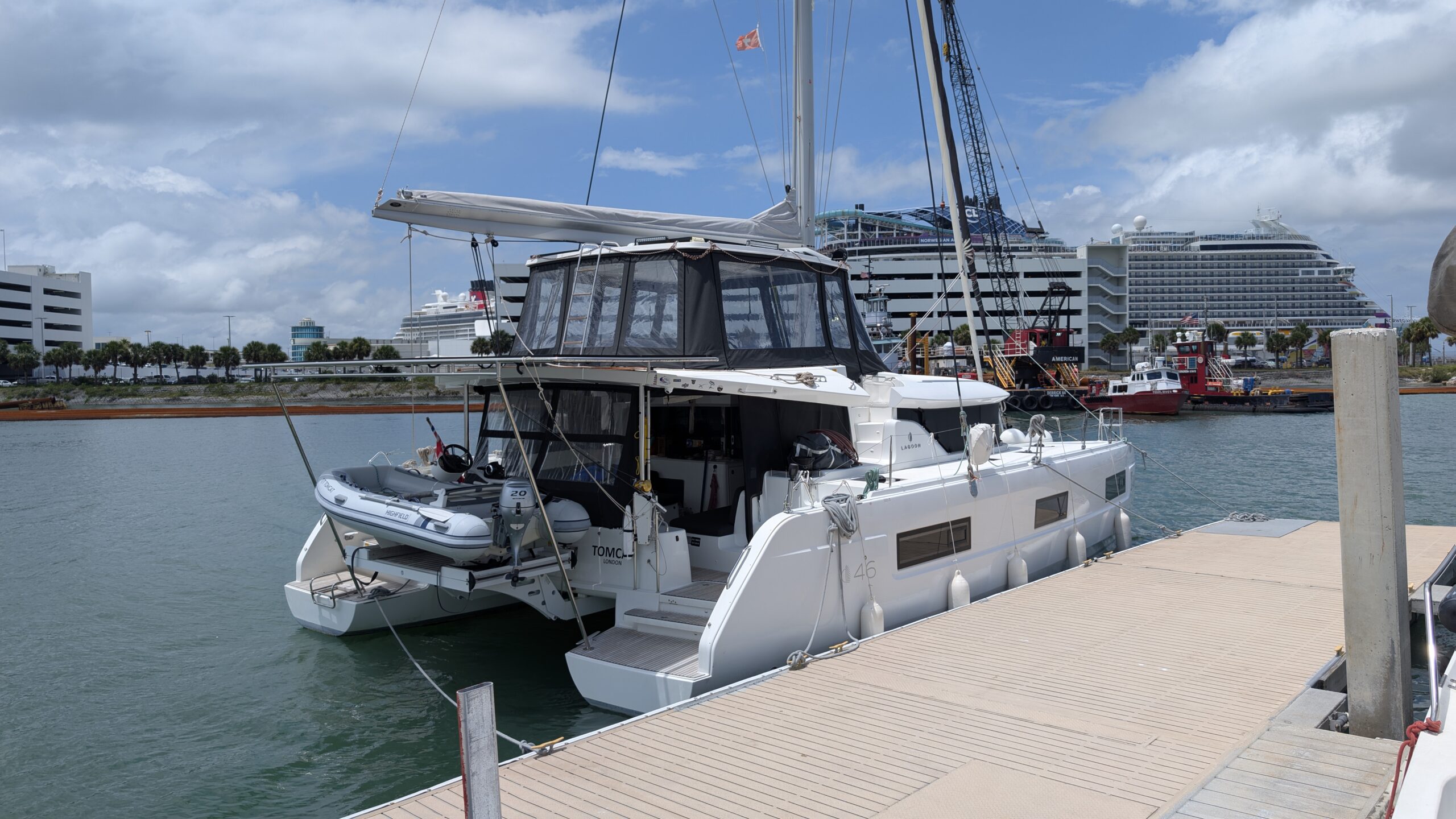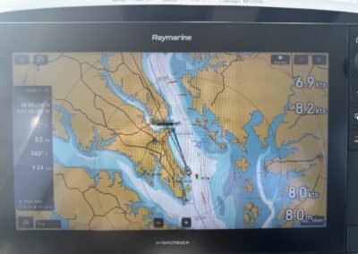Wir sind ohne Wecker kurz nach Sonnenaufgang bereits wach. Darum machen wir uns um 7:15 Uhr auch schon auf den Weg. Um 13 Uhr erreichen wir den South River. Beide Marinas, die Thomas angefragt haben liegen an diesem Flussarm und beide haben gleichzeitig vor Kurzem eine Offerte geschickt. Darum ankern wir in der Selby Bay und vergleichen mal die beiden Offerten. Bzw. machen noch ein paar Arbeiten am Schiff. 2 Stunden später steht die Entscheidung und wir machen uns auf den Weg zur Pier 7 Marina. Ihr grosser Vorteil ist der Conolift Trailer. Ein Gefährt, das den Katamaran von unten heben kann, anstelle der Gurte der normalen Krane. Das ist sehr viel schonender für das Schiff. 😊