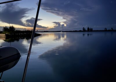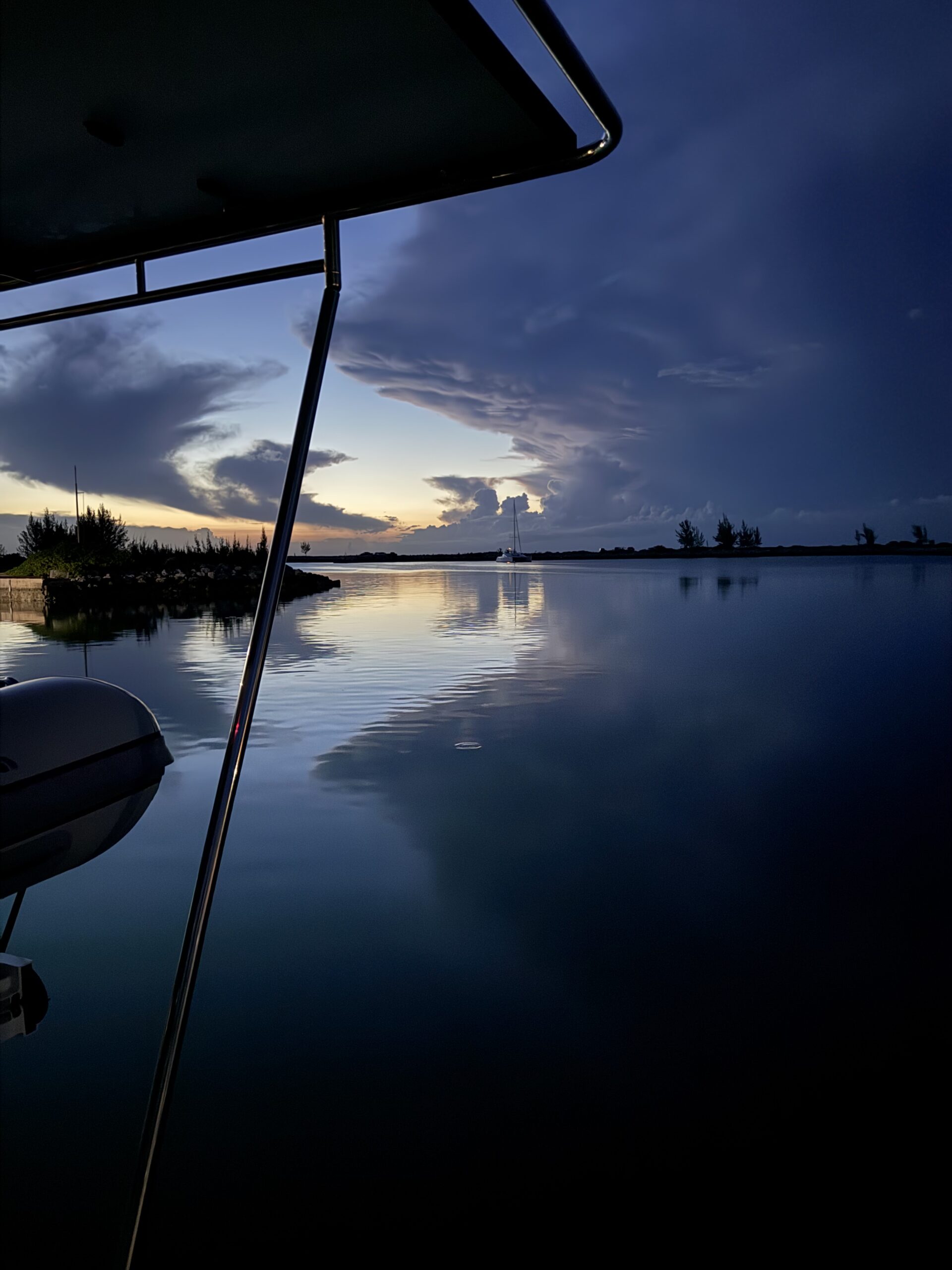 Wir kommen so gut voran, dass wir bis nach Mangrove Cay fahren. Von hier ist es nach West End nur noch einen Katzensprung. Um 18:45 Uhr sitzt der Anker. Wir sind, hier mitten im Nirgendwo, nicht mal allein. Ein Trawler übernachtet auch hier. 😁