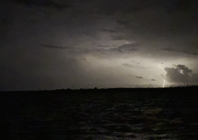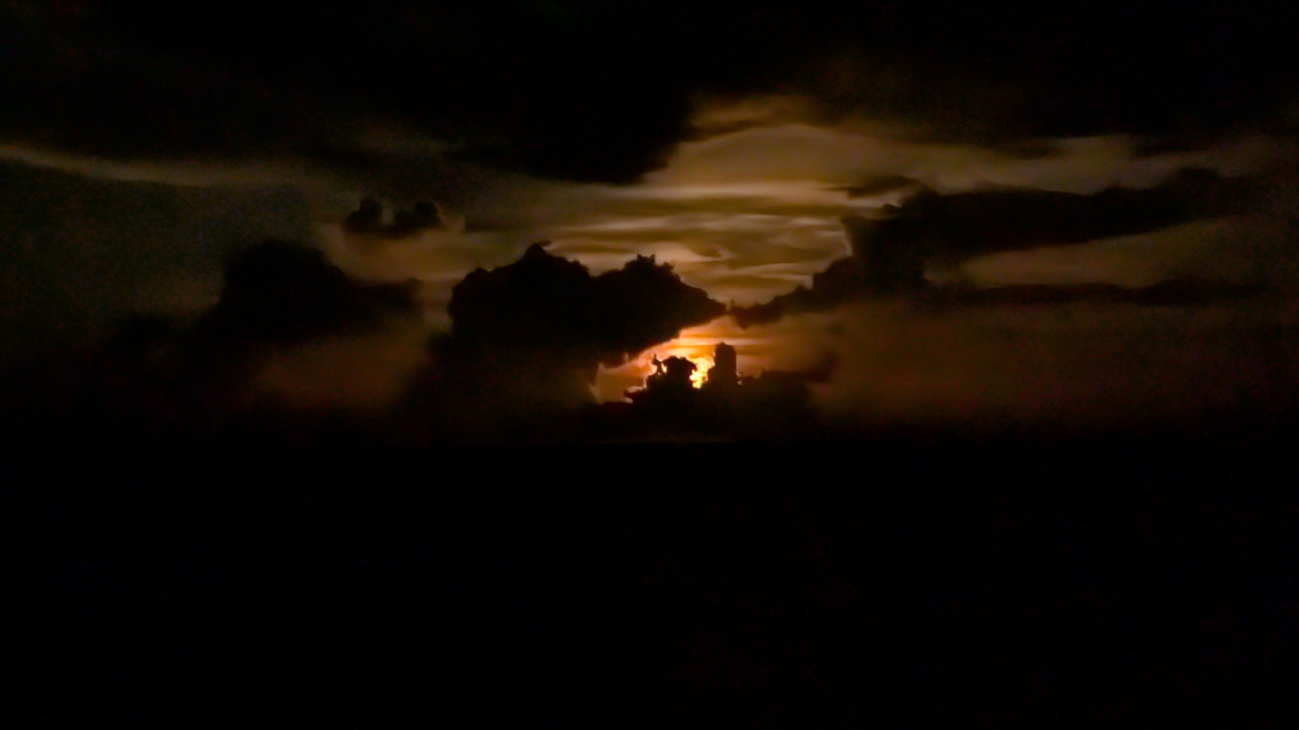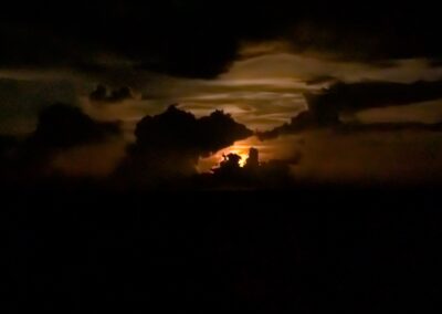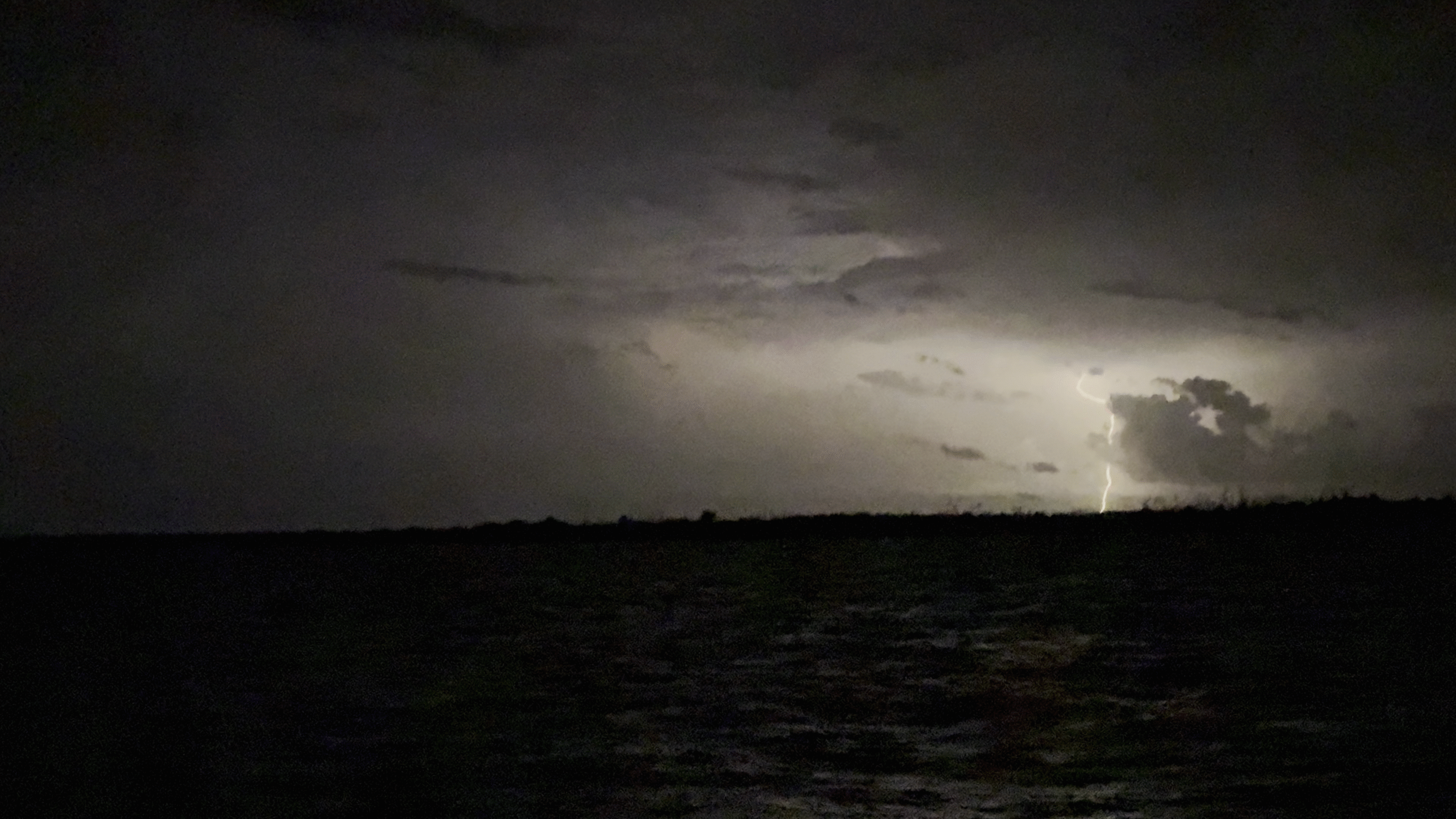Unsere Anziehungskraft für Gewitter funktioniert auch hier. Später am Abend müssen wir unsere PCs mitten in der Arbeit herunterfahren, da die Blitze so nah sind. 😆