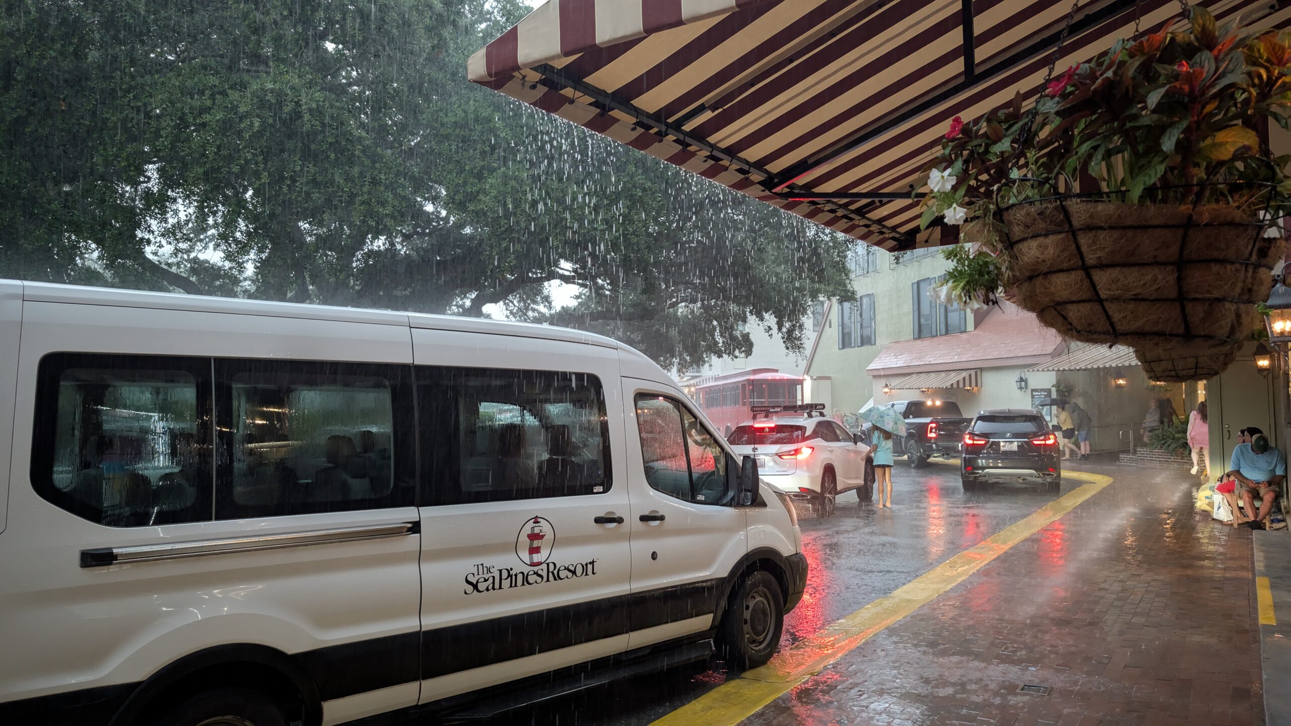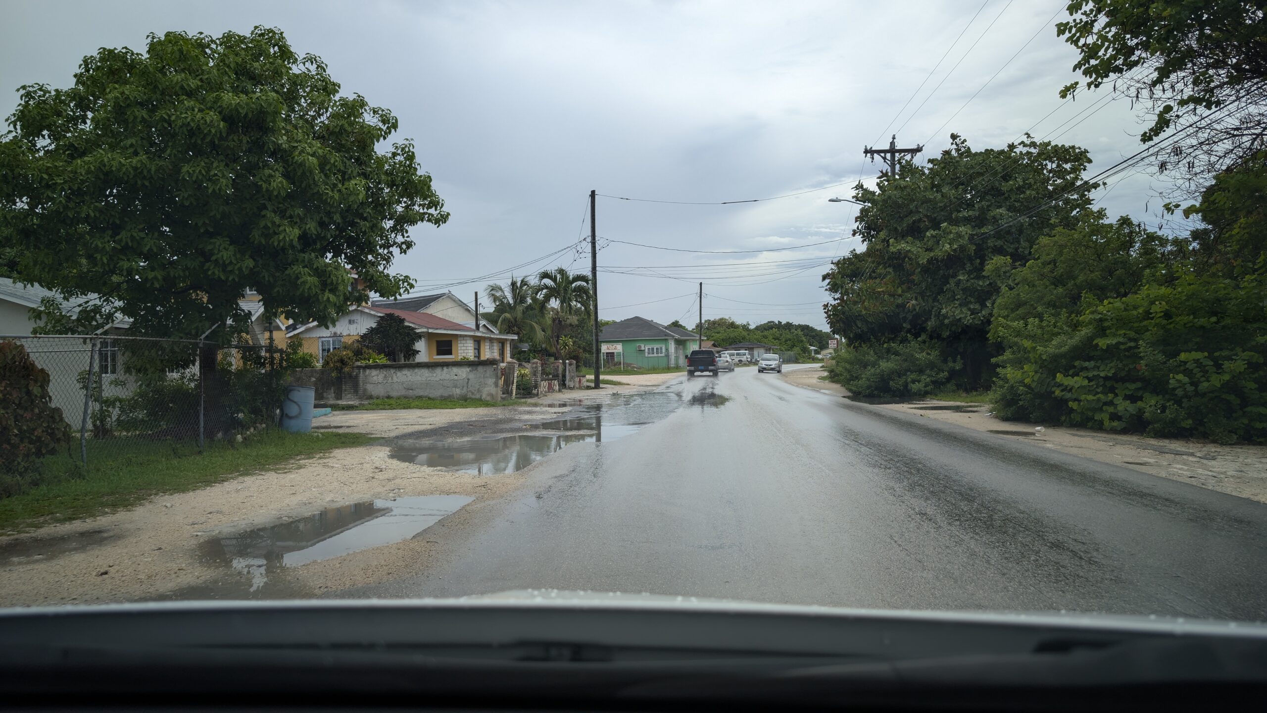 Hoffentlich ist das Mietauto wasserdicht. Denn damit unternehmen wir heute die erste Spritzfahrt hier auf Grand Bahama. 😁