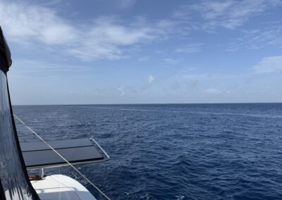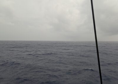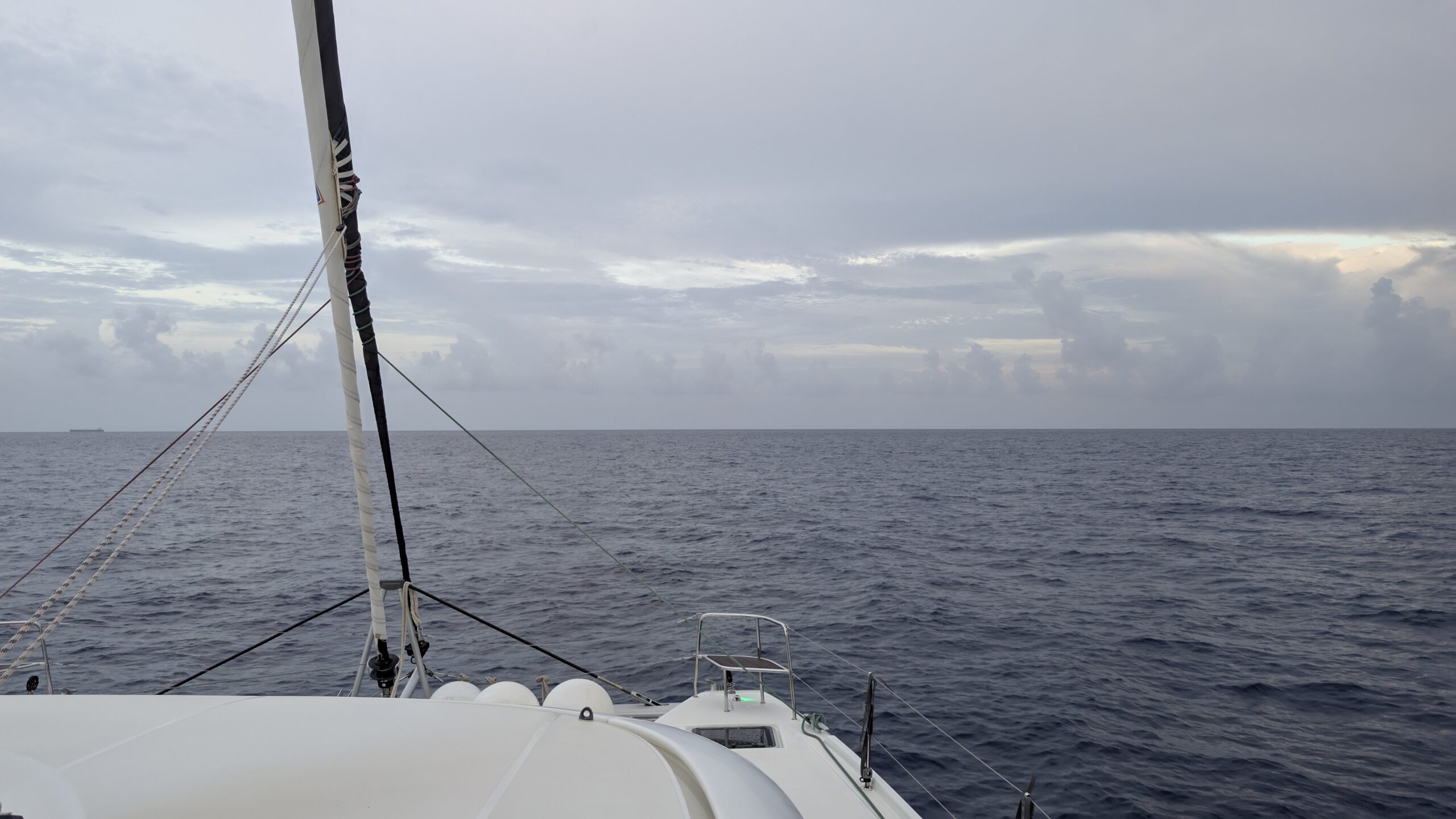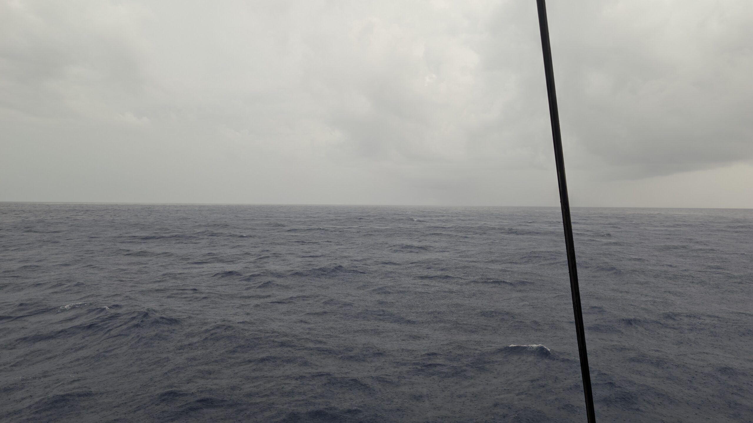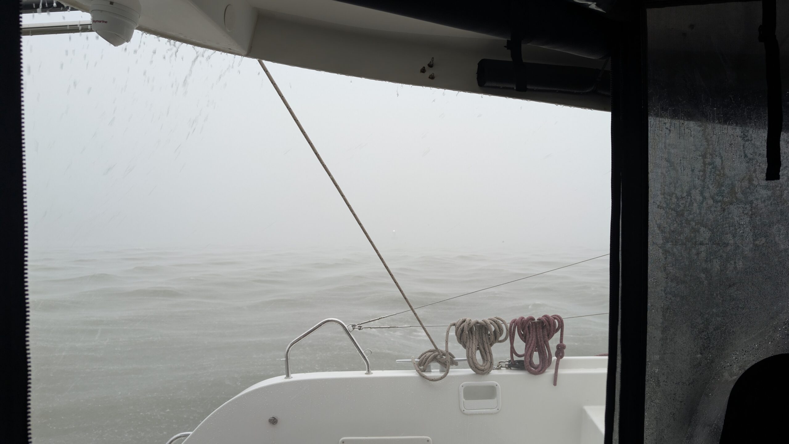 Das Wetter hingegen ist eher mühsam. Erst ist es bewölkt, dann kommt die Sonne und es wird heiss. Dann wird’s langsam wieder bewölkt und paff, ein Squall bringt innerhalb Sekunden Regen und 32 Knoten Wind. Zum Glück haben wir nicht so viel Segel gesetzt. 😨
