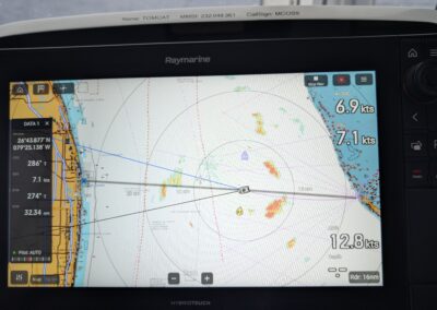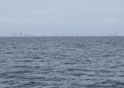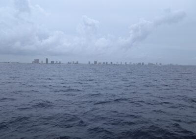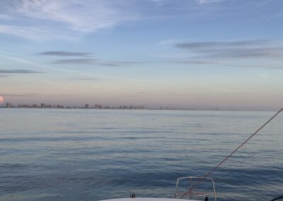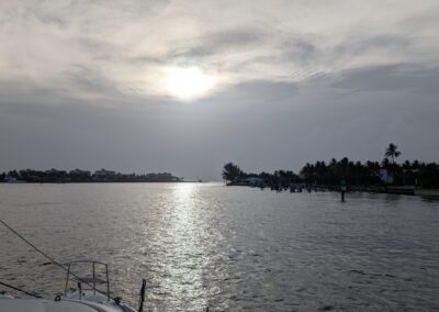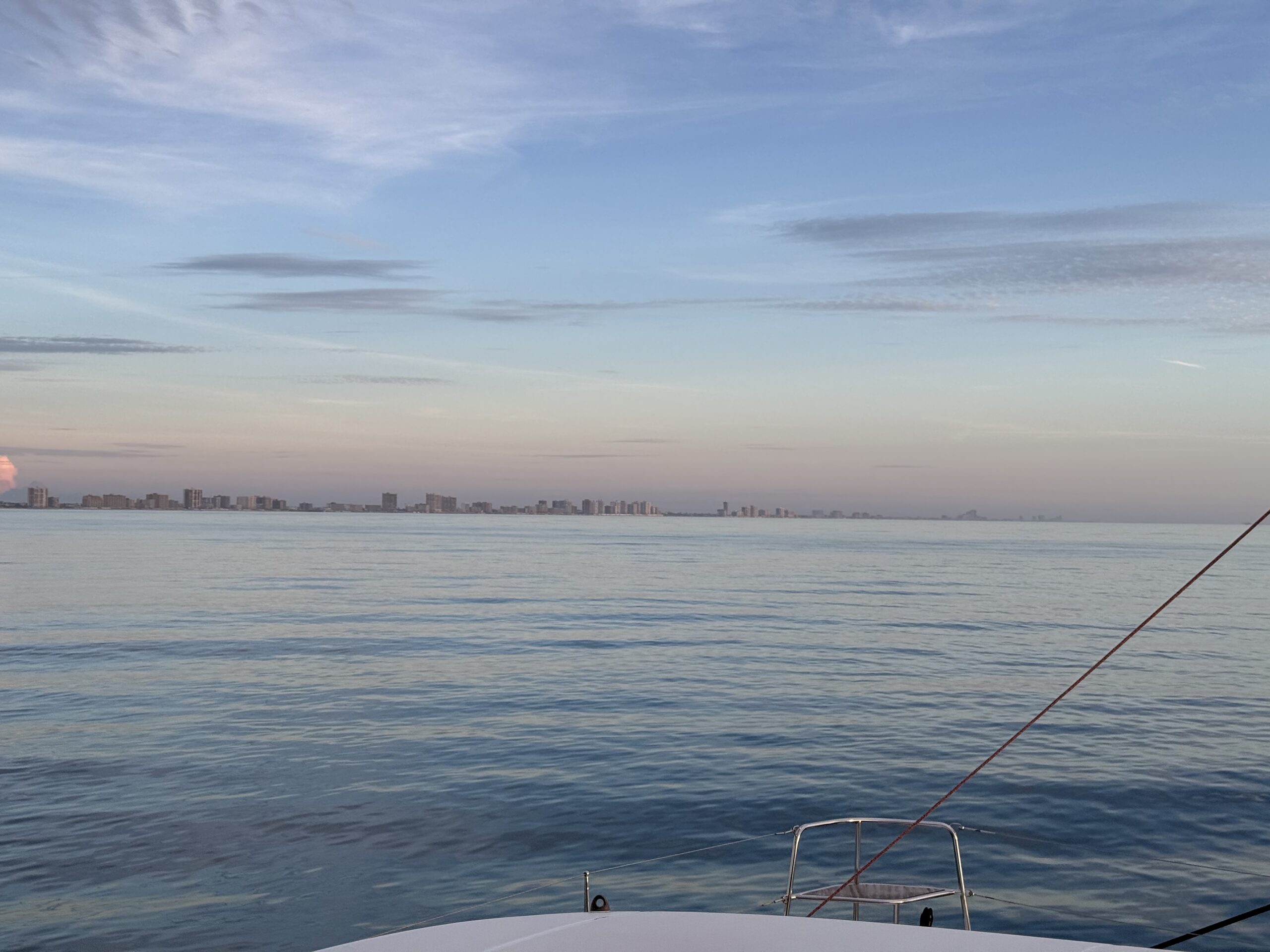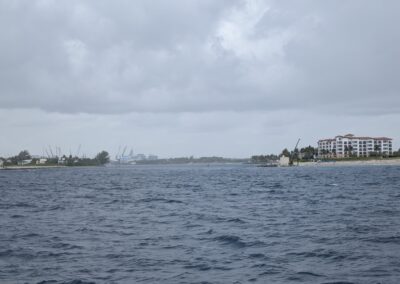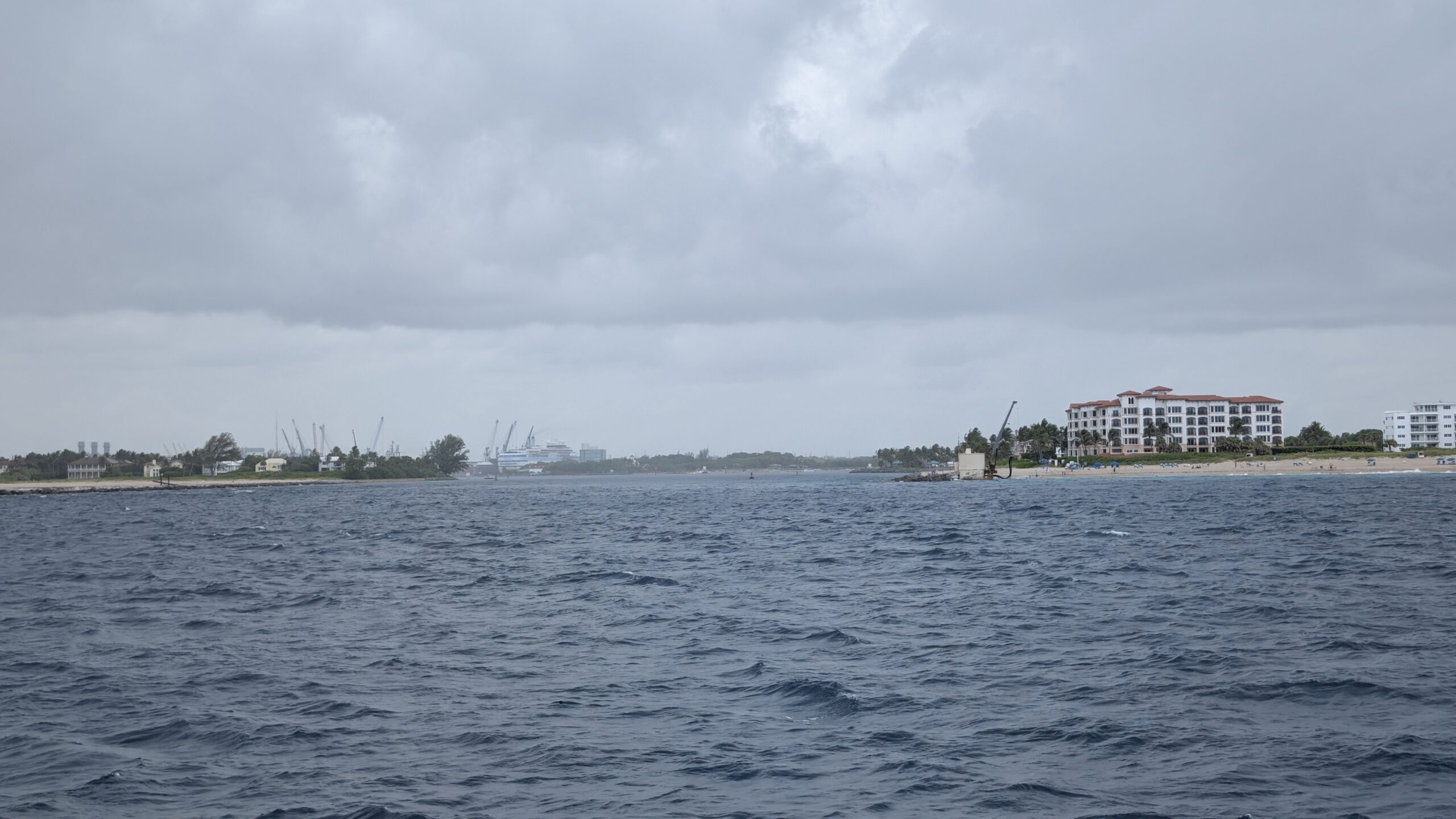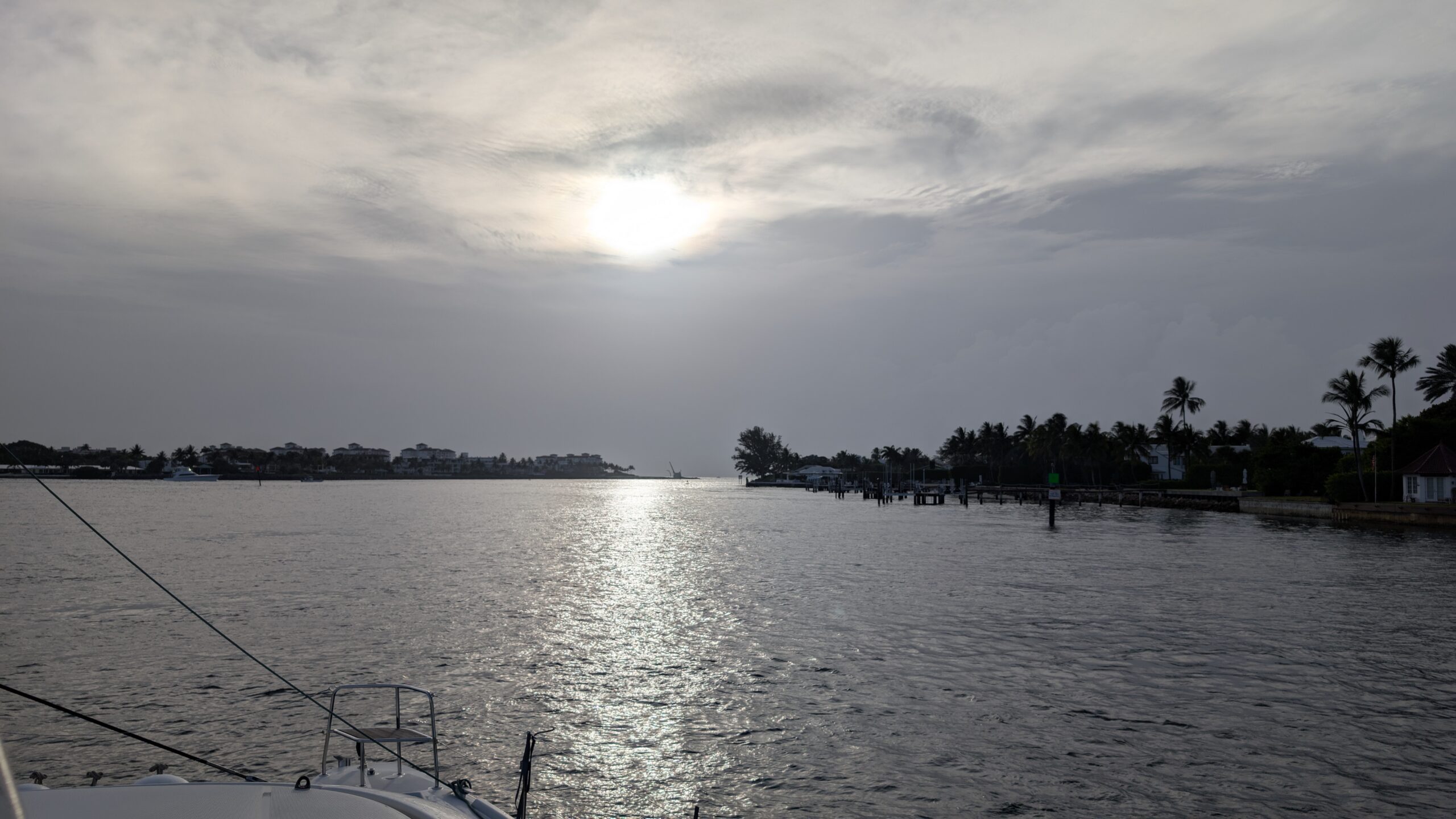 Bis nach West Palm Beach rüber sind es 56 Seemeilen. Wenn wir noch bei Tageslicht ankommen wollen, müssen wir heute früh los. Das heisst, um 5:30 Uhr aufstehen und bereit machen zum Ablegen. Naja… ein Regenschauer verzögert die Arbeit etwas. Aber netterweise ist es mit 2 Knoten Wind praktisch windstill. So geht das Ablegen easy und um 6:15 Uhr verlassen wir dann die Marina.