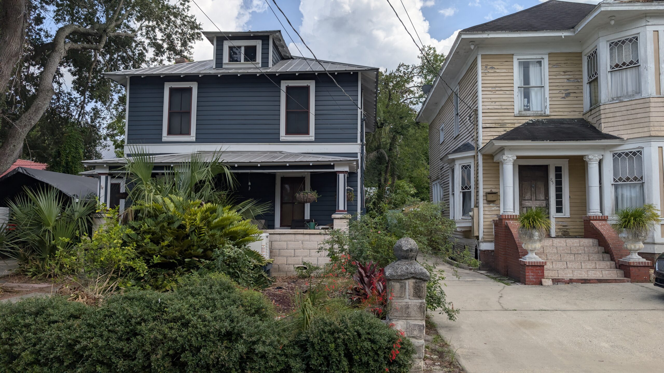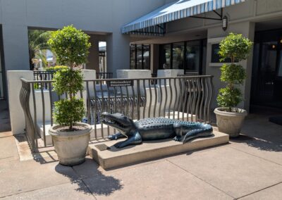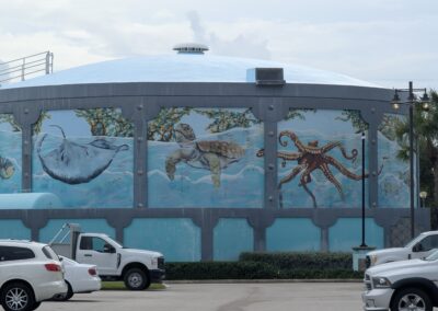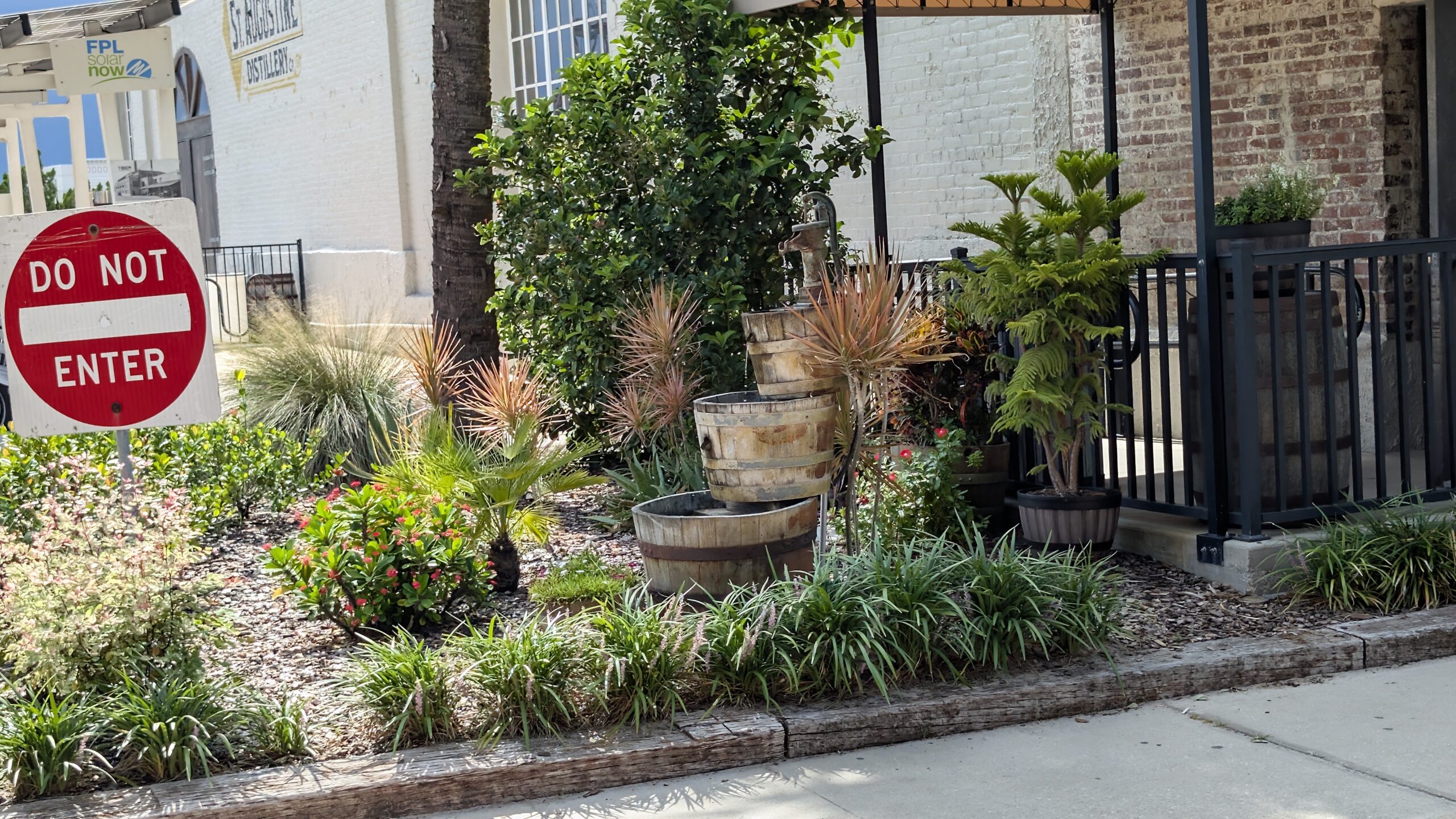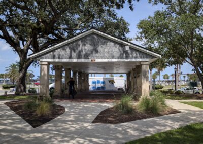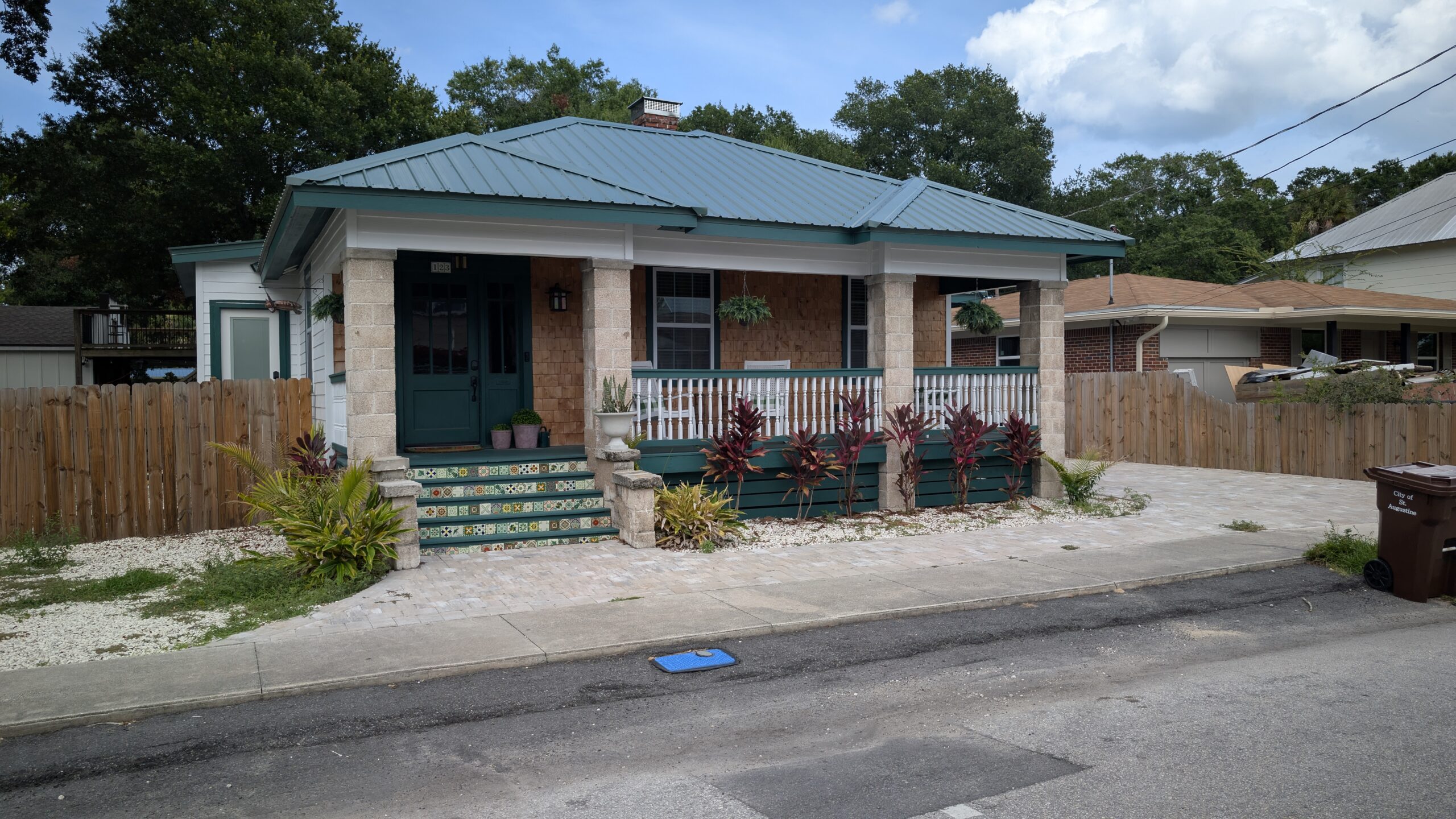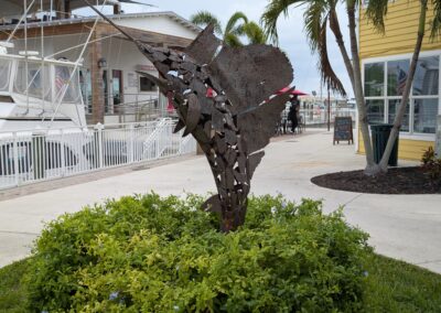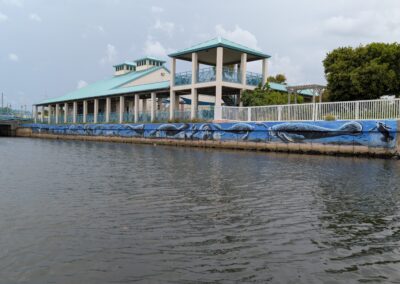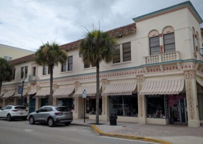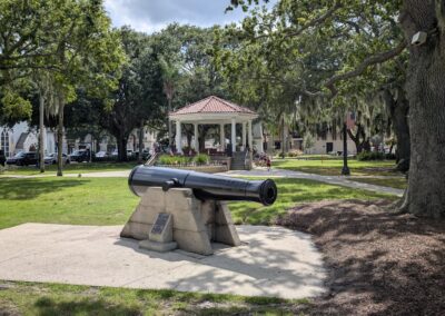 Aber wir kommen heil und sogar trocken wieder auf TomCAT an. Nun backe ich noch die Apfelstrudel fertig. Dann gehen wir auf eine Dinghy-Rundfahrt in der Gegend. Es ist sehr weitläufig und es künden sich bereits wieder Regenwolken an. Darum fahren wir nicht sehr weit und parken das Dinghy am sehr praktischen Dinghy Dock der Fort Pierce City Marina. Von hier spazieren wir durch das historische Viertel. Ist nicht viel los, da heute Feiertag ist. Sehr historisch wirkt es auch nicht. 😇