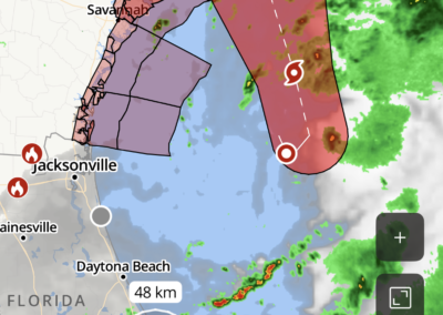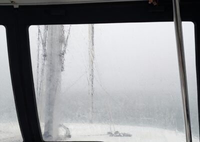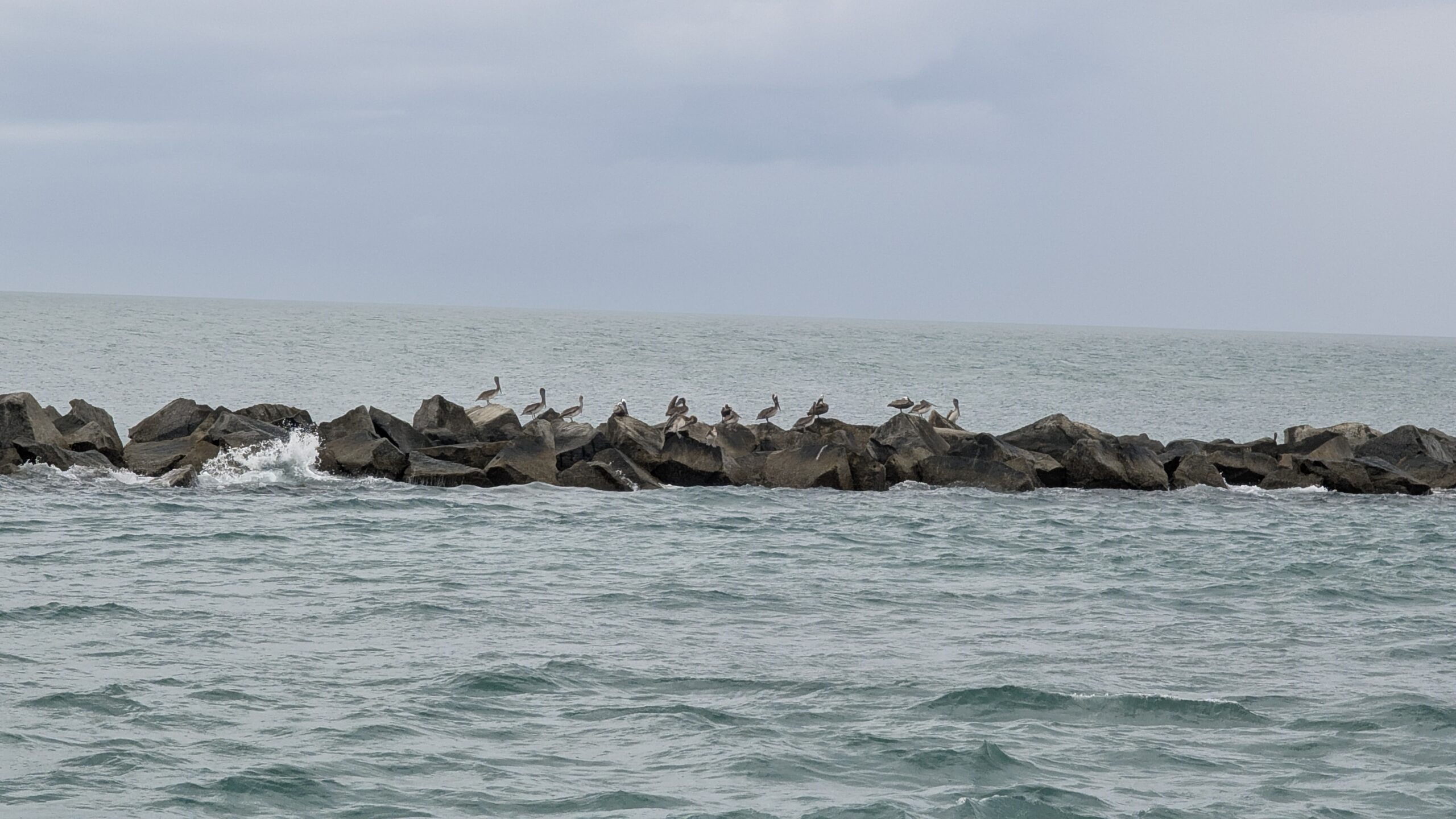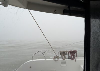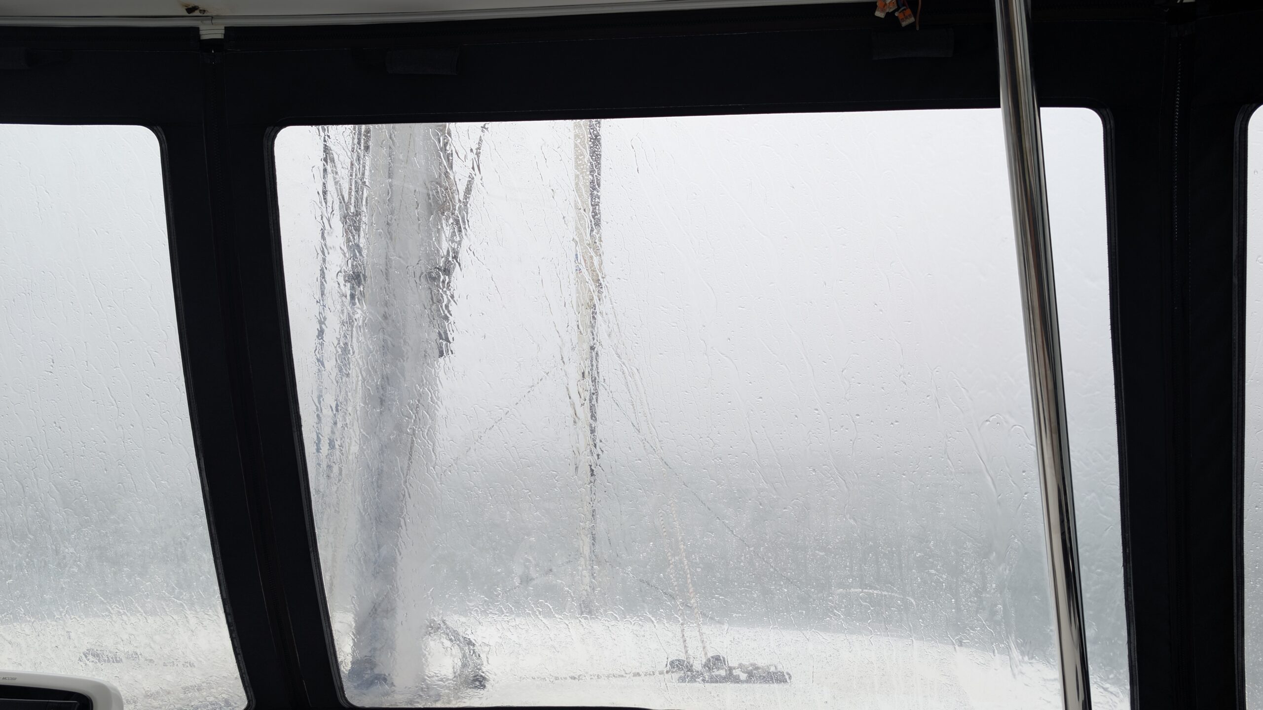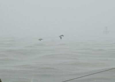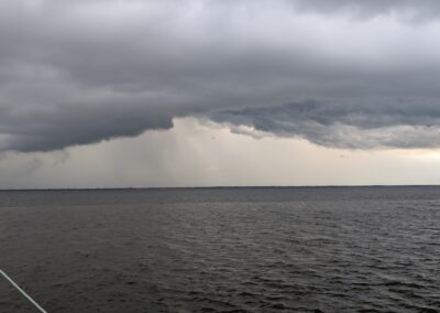 Die Ankunft beim Ponce Inlet um 14:15 Uhr verläuft jedoch planmässig. Wir können in aller Ruhe ankern. Ca. 30 Minuten später kommt dann so ein Regenschauer, in dem man nichts mehr sieht. 😜
