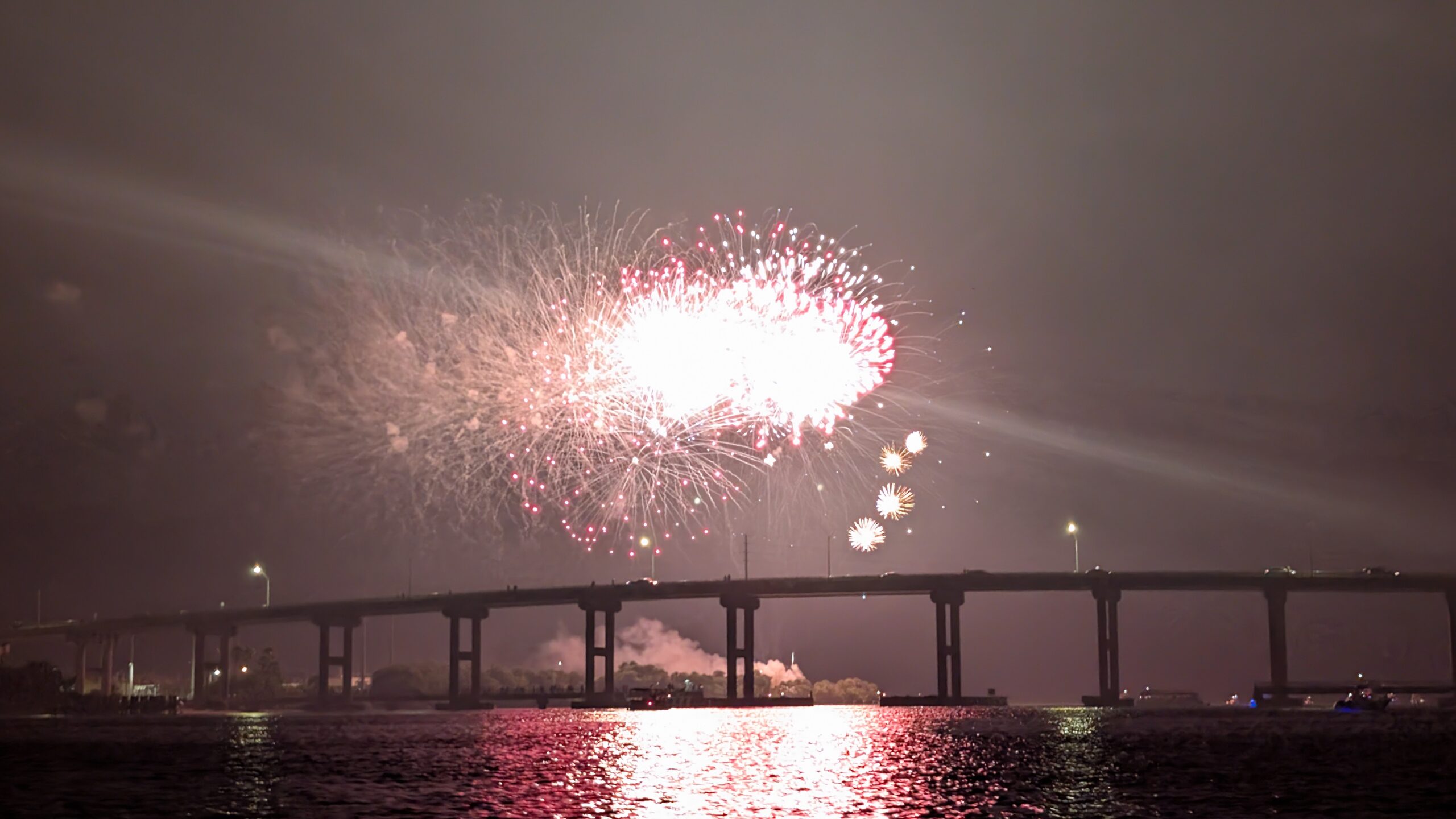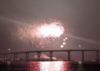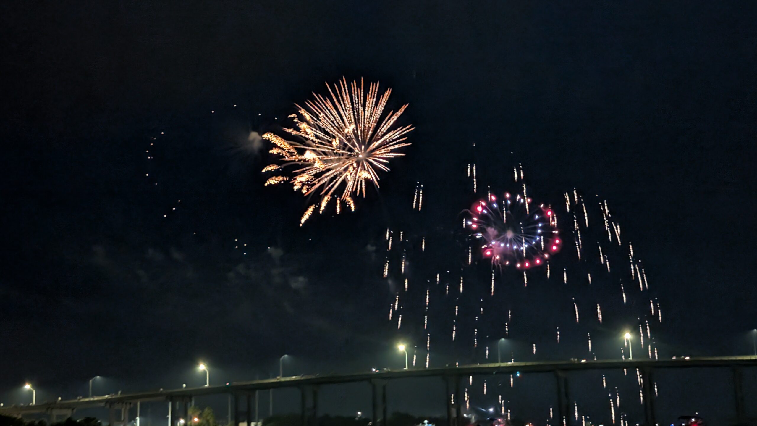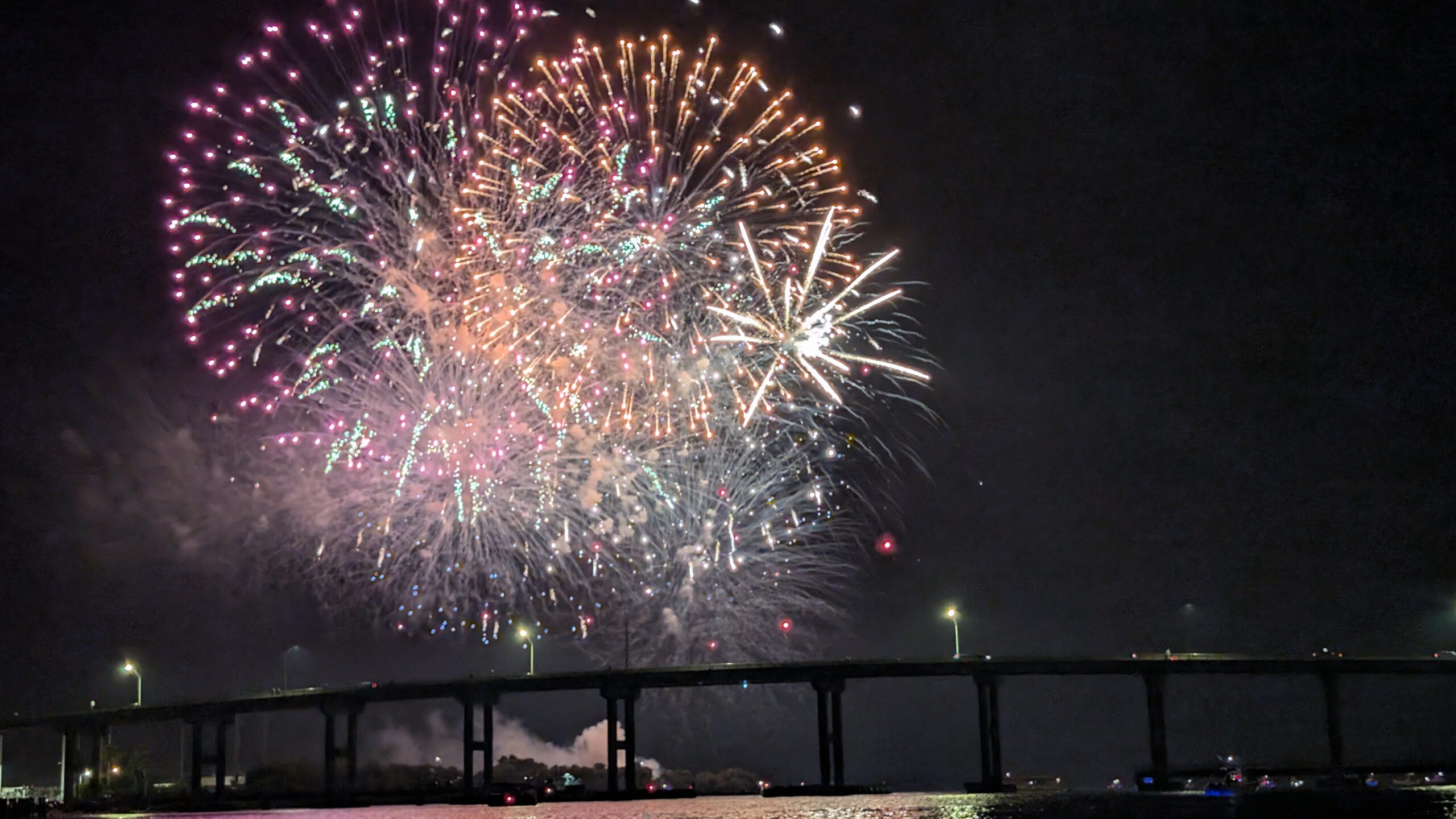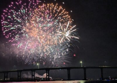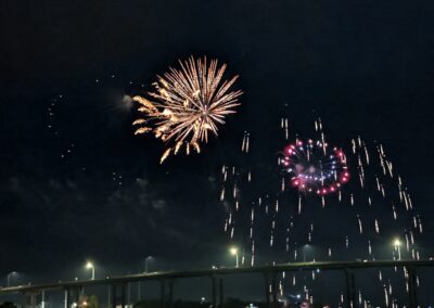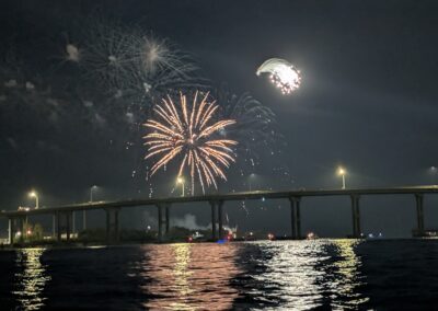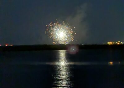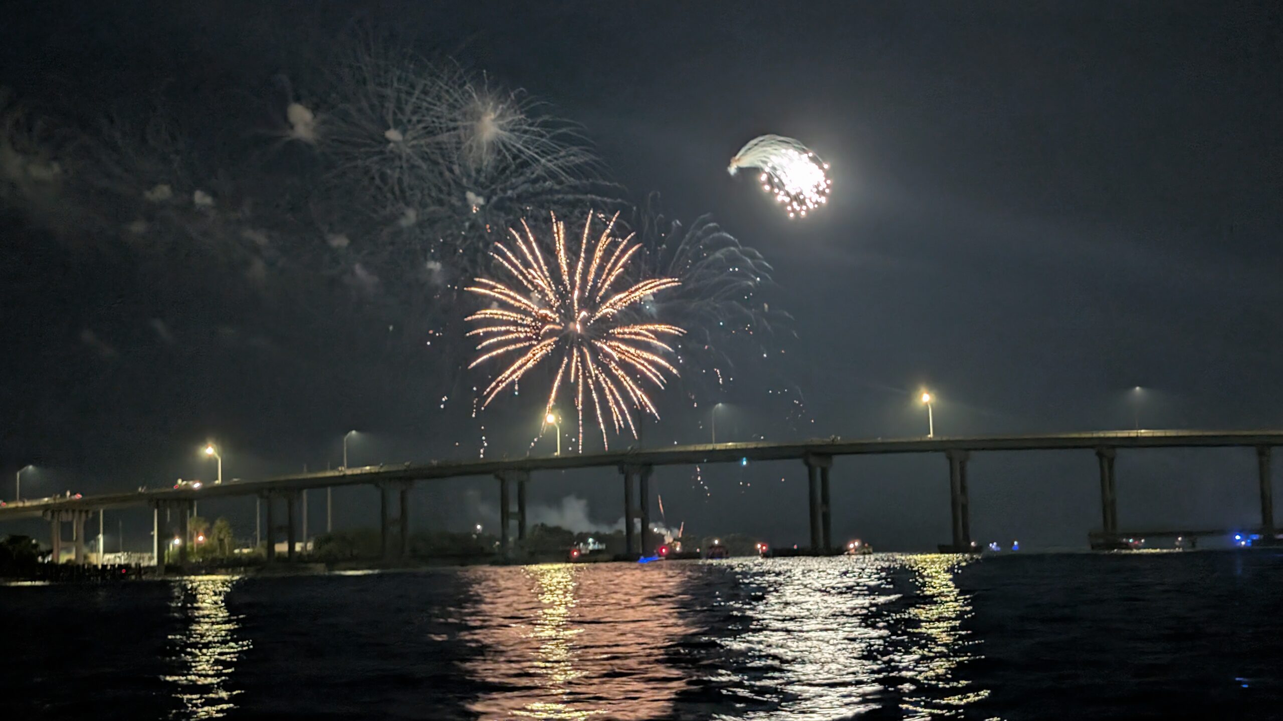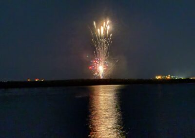 Um uns herum fängt ein Gewusel an. Gefühlt alle, die ein Boot haben, fahren zur Fort Pierce City Marina. Dort schiessen sie um 21 Uhr ein Feuerwerk in den Himmel. Um 20:45 Uhr zünden wir bei TomCAT jedes zweite Licht an und fahren mit dem Dinghy ebenfalls etwas in die Nähe. 😊