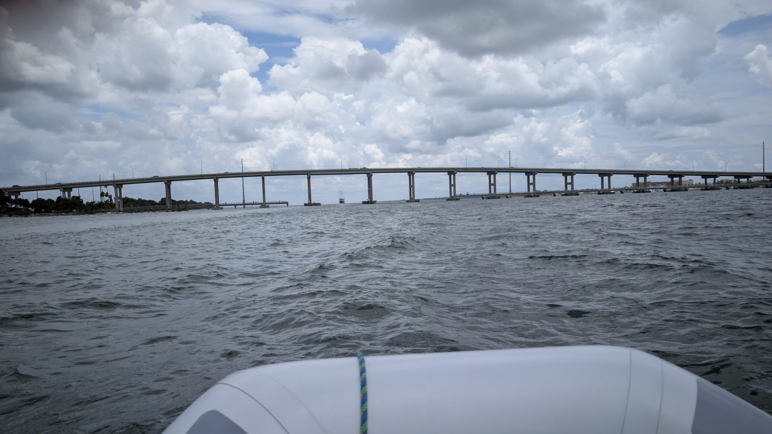 Als wir den Fort Pierce Inlet erreichen und ankern wollen, zieht ein Gewitter über uns und wir sehen überhaupt nichts mehr vor lauter Regen. 😨