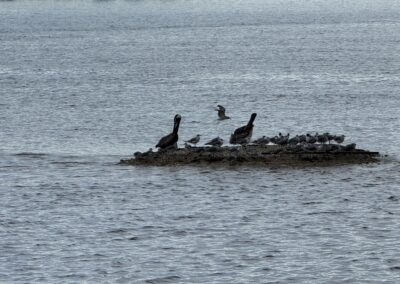 Wir jedenfalls machen uns kurz vor 10 Uhr wieder auf den Weg. Aber jetzt halt weiter in den Norden, näher zu Washington und versuchen dort oben eine Marina zu finden. Der Weg gestaltet sich ereignislos. Man kann nur viele Vögel, Delphine und seeehr viele Fischschwärme beobachten. Die Sonne macht wieder gute Arbeit und sorgt für hohe Temperaturen. Kurz nach Sonnenuntergang, um 20:15 Uhr sind wir bei Patuxent River, jetzt im Bundesstaat Maryland, vor Anker zum Übernachten. 😊