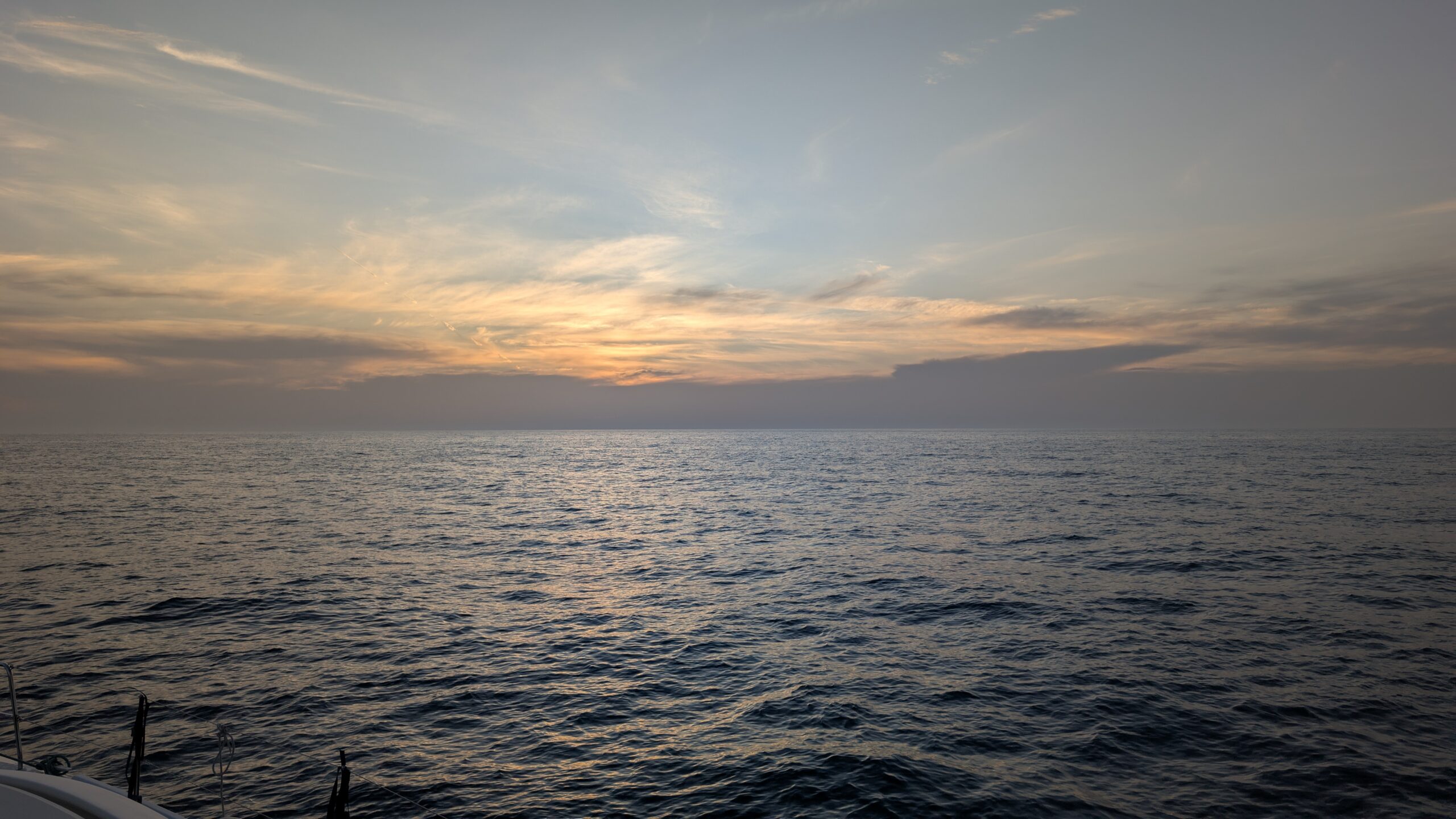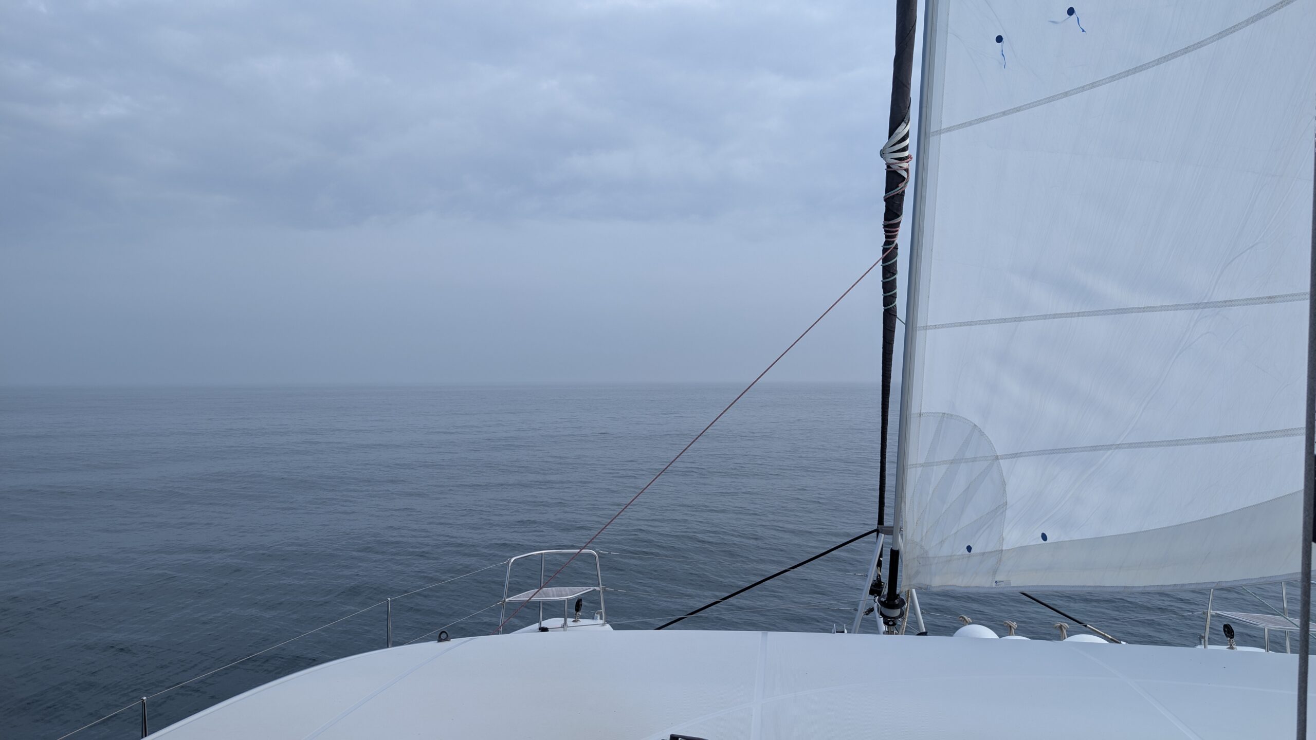 Also warten wir eben nicht bis Mitternacht, sondern lichten sofort den Anker. Dank Rückenströmung sind wir schnell auf dem Atlantik draussen. Dieser ist unerwartet ruhig. Fast wie ein See. 😊