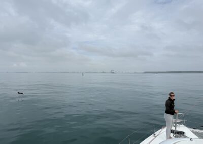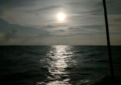 Am Morgen, kurz nachdem ich Thomas wieder ablöse, kommen 3 Delphine vorbei. Sie sind aber bereits wieder verschwunden, als ich das Handy zum Filmen ready habe. 😅