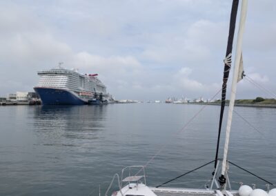 Wir legen heute um 5 Uhr früh ab. Wir wollen erstens nicht so spät am Ziel ankommen und zweitens wollen wir eigentlich weg sein, wenn die 3 Kreuzfahrtschiffe uns entgegen nach Port Canaveral fahren. Naja… das mit den Kreuzfahrtschiffen hat schon mal nicht so geklappt. 😅