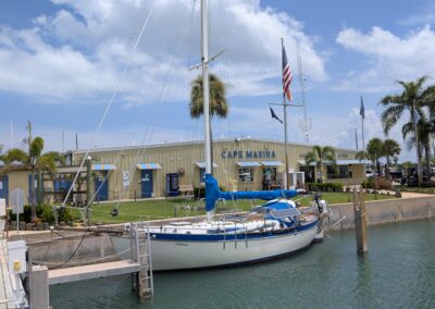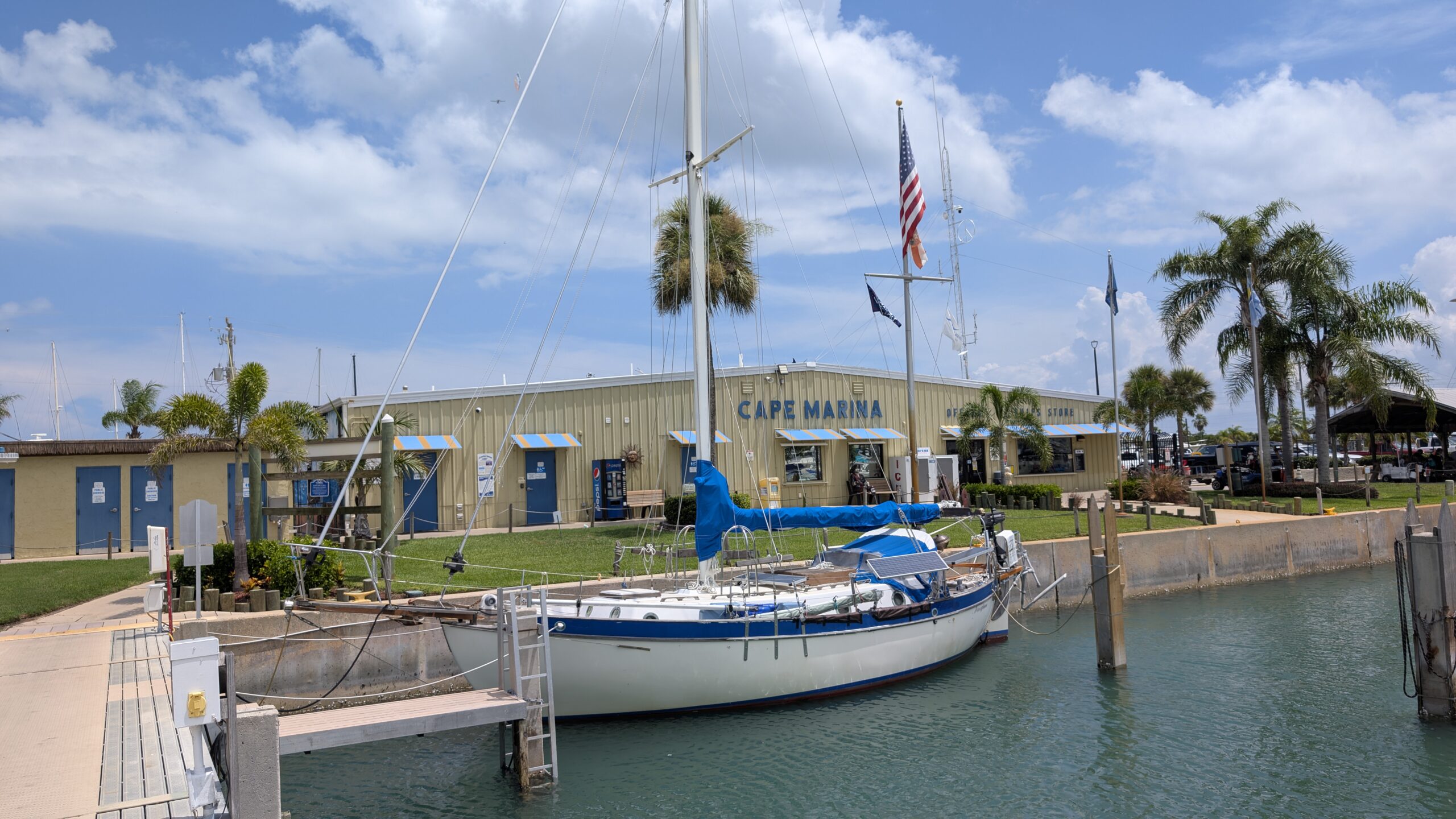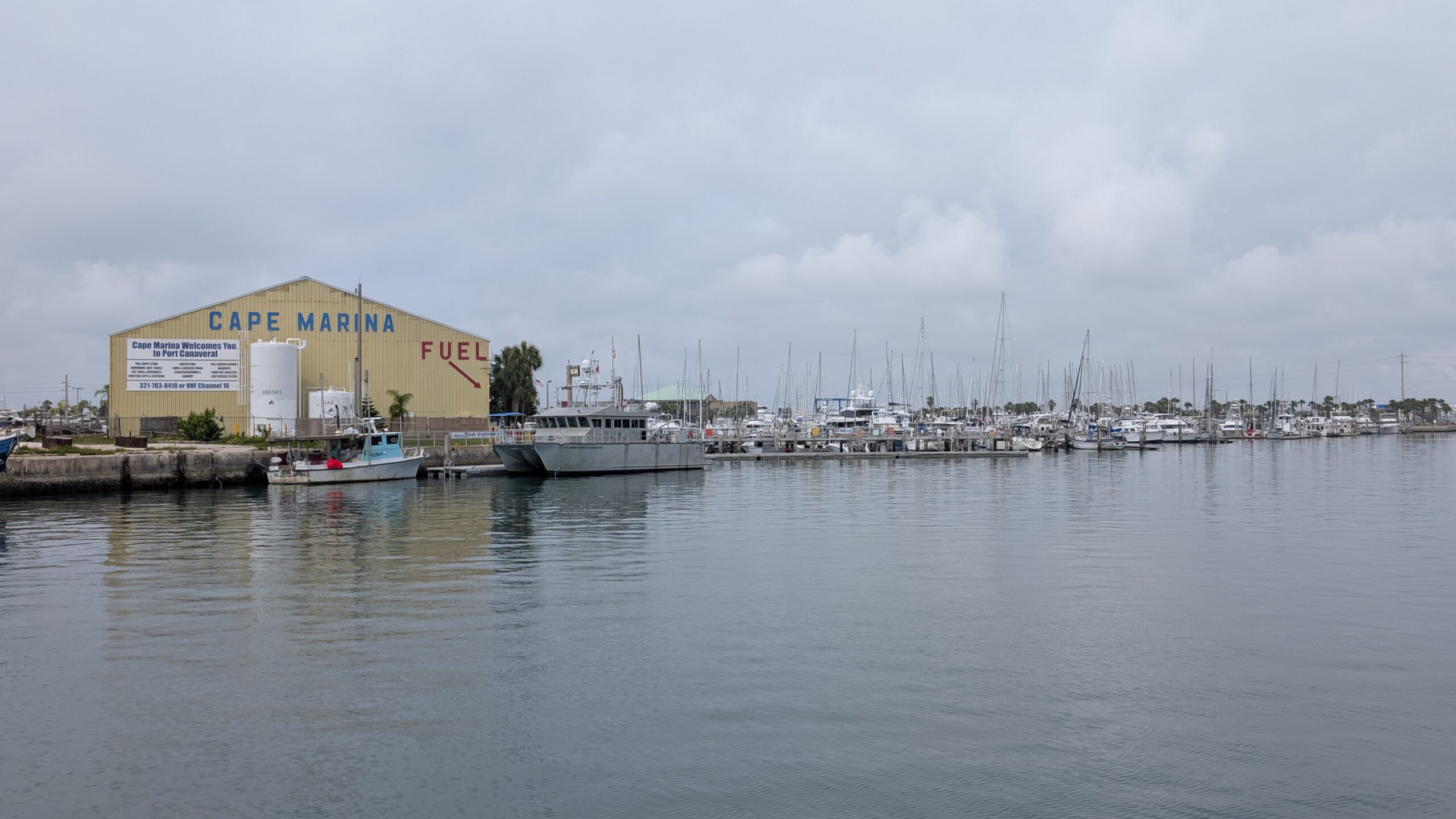 Als wir um 10:30 Uhr in der Cape Marina in Port Canaveral ankommen ist es bereits wieder einigermassen sonnig. Hier tanken wir erst mal wieder voll. Dann können wir auch direkt an unseren Stegplatz gehen, obwohl wir ein paar Stunden zu früh dran sind. 😇