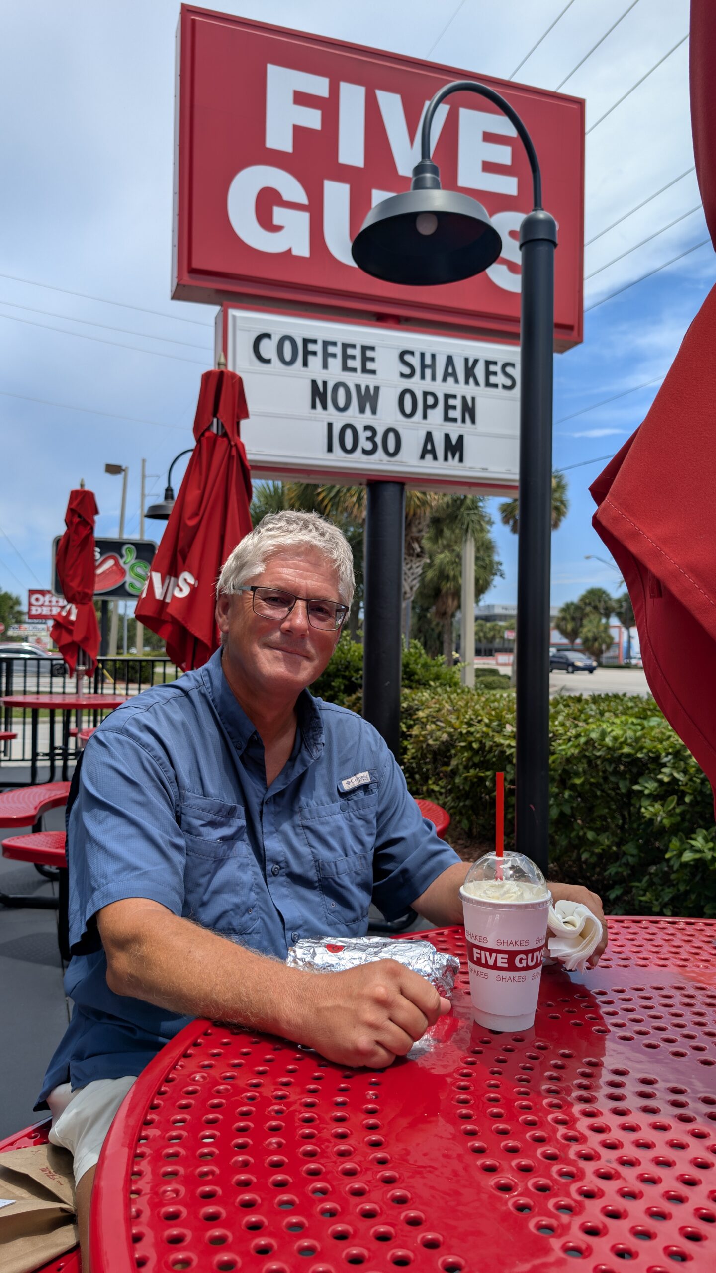 Auf dem Rückweg machen wir eine kurze Essenspause bei Five Guys (lange ist’s her). 😜