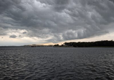 Wie immer, haben wir keinen Wind. Aber heute auch keine Sonne. Es ist eine langweilige, ereignislose Fahrt. Eigentlich wollten wir bei St. Marys übernachten. Dort ist allerdings ein Gewitter im Gange. Darum fahren wir noch ein Stück weiter, bis nach Brunswick. Das liegt bereits im Bundestaat Georgia.