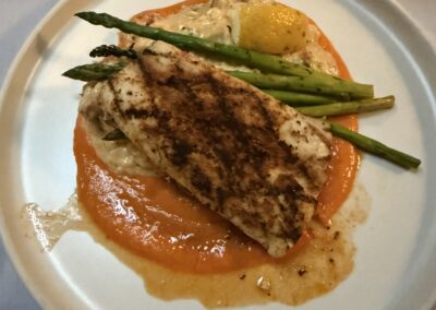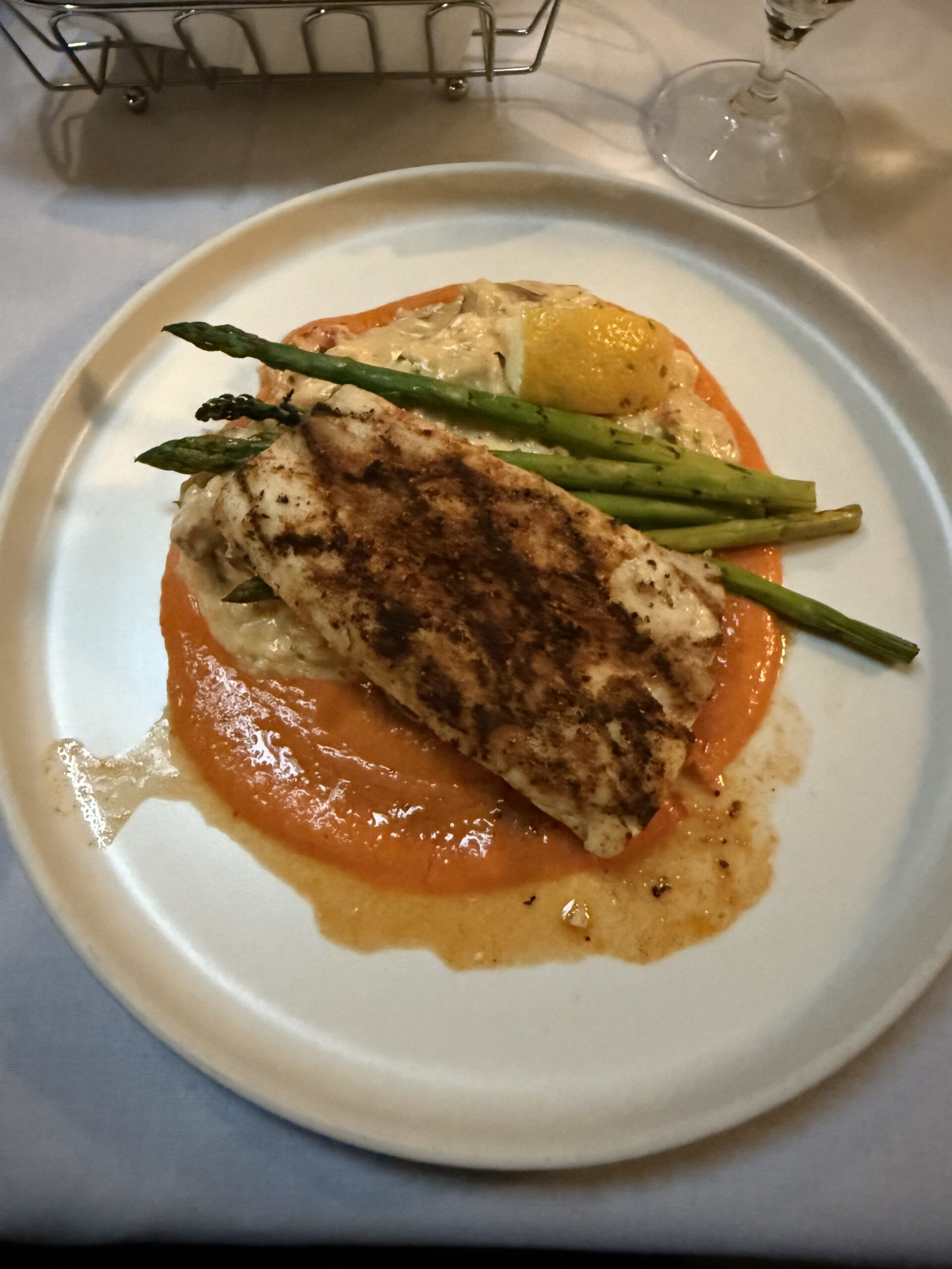 Noch schnell duschen und umziehen, dann testen wir das Restaurant «Dockside Grill», hier in der Marina. 😊