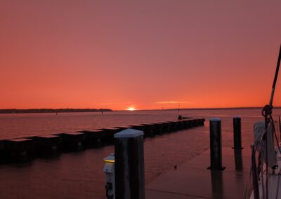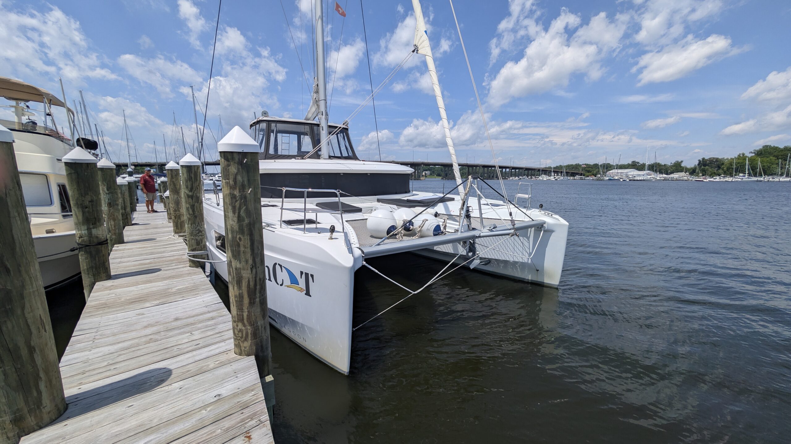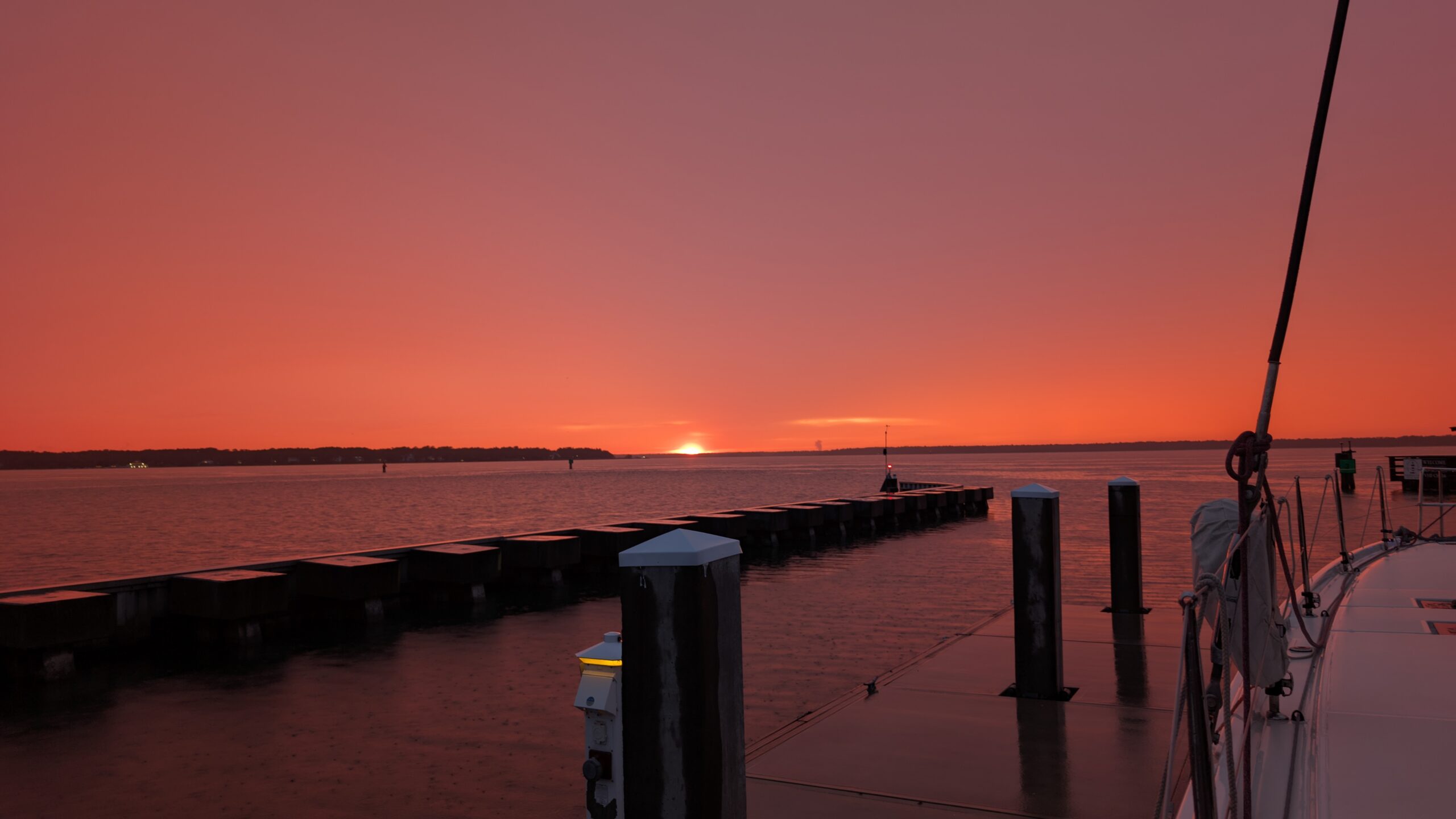 Es ist nicht mehr weit zu fahren und um 16:15 Uhr sind wir an unserem Slip in der Pier 7 Marina in Edgewater festgemacht. 😊