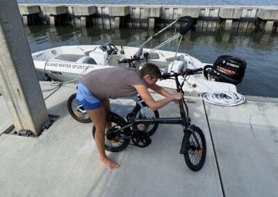Als wir festgemacht haben gibt’s noch eine kleine Trainingseinheit, wie man Leinen über einen Pfahl wirft. Das hat beim Anlegen natürlich nicht funktioniert. 😆