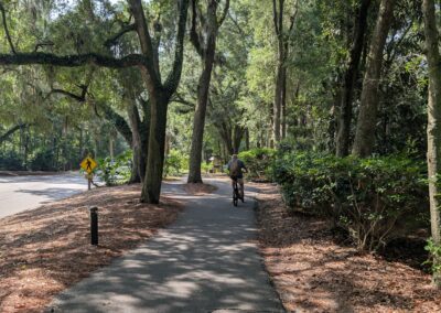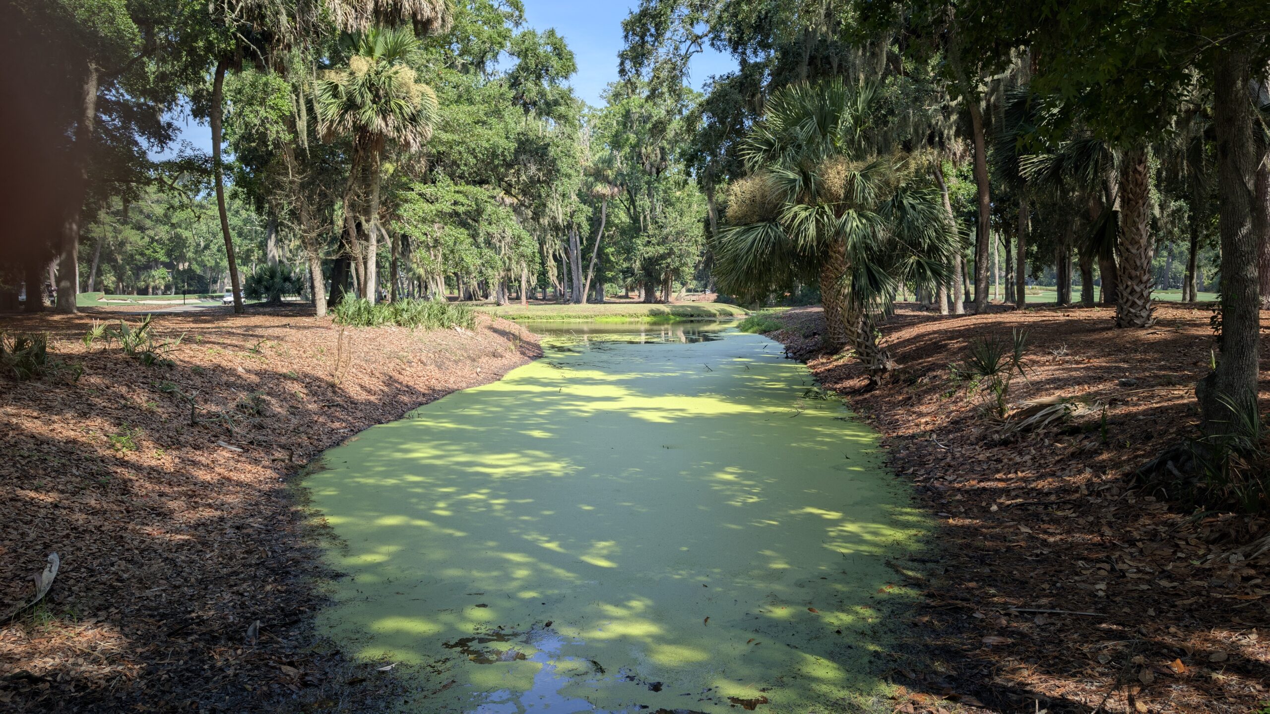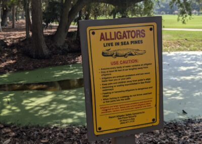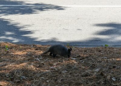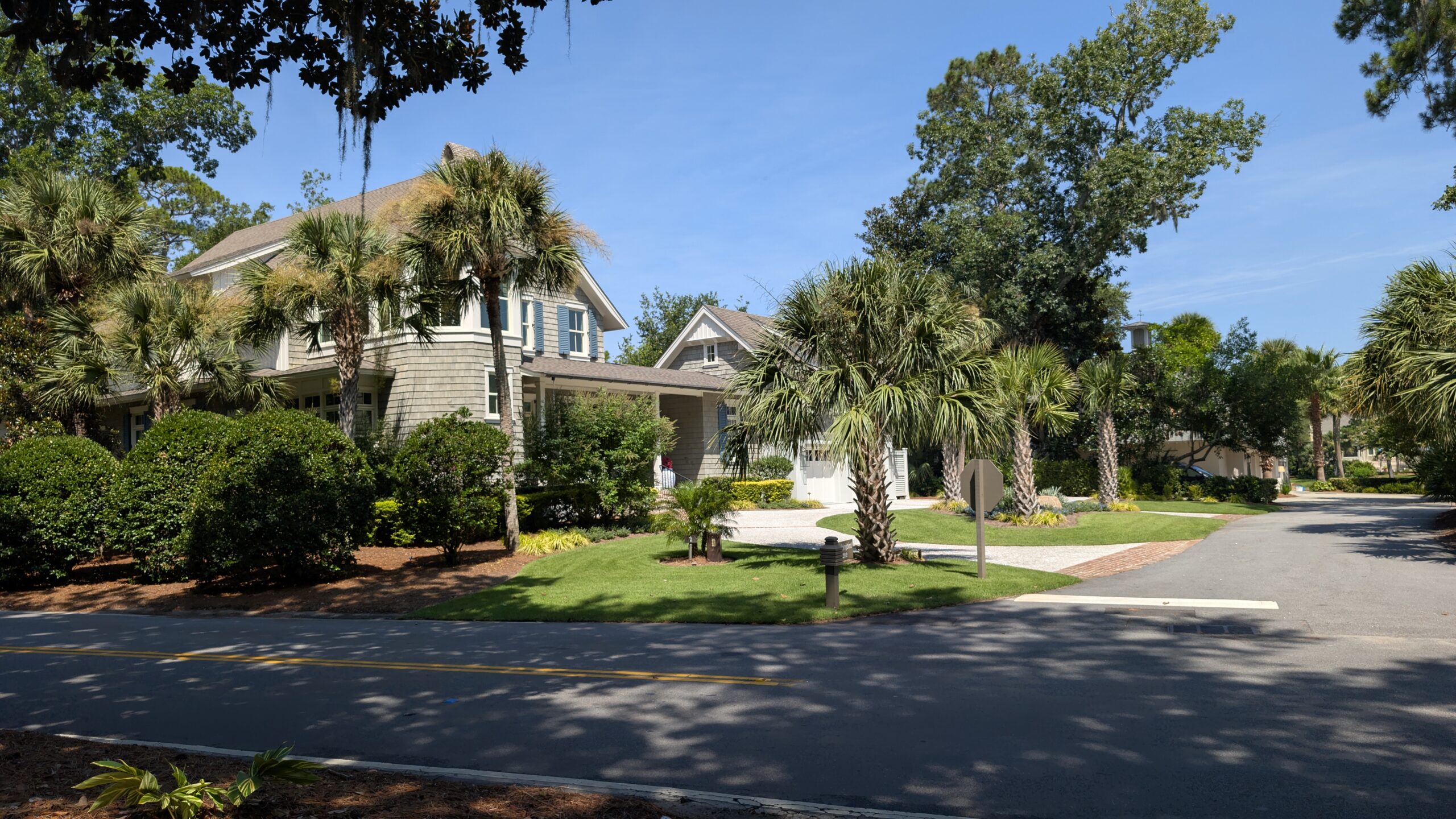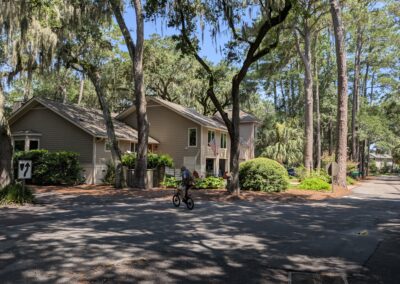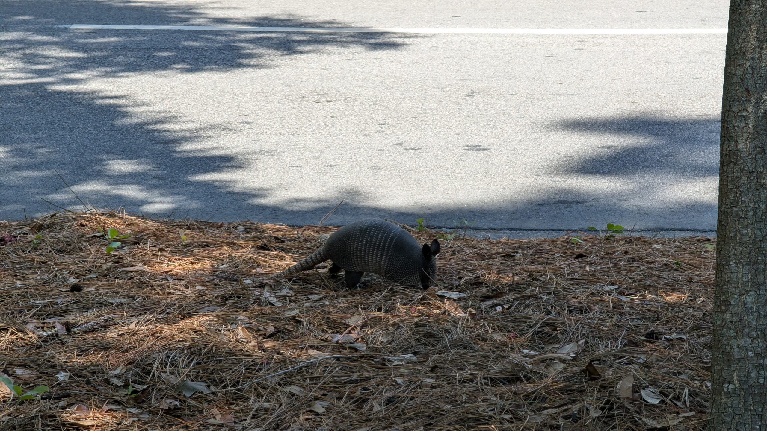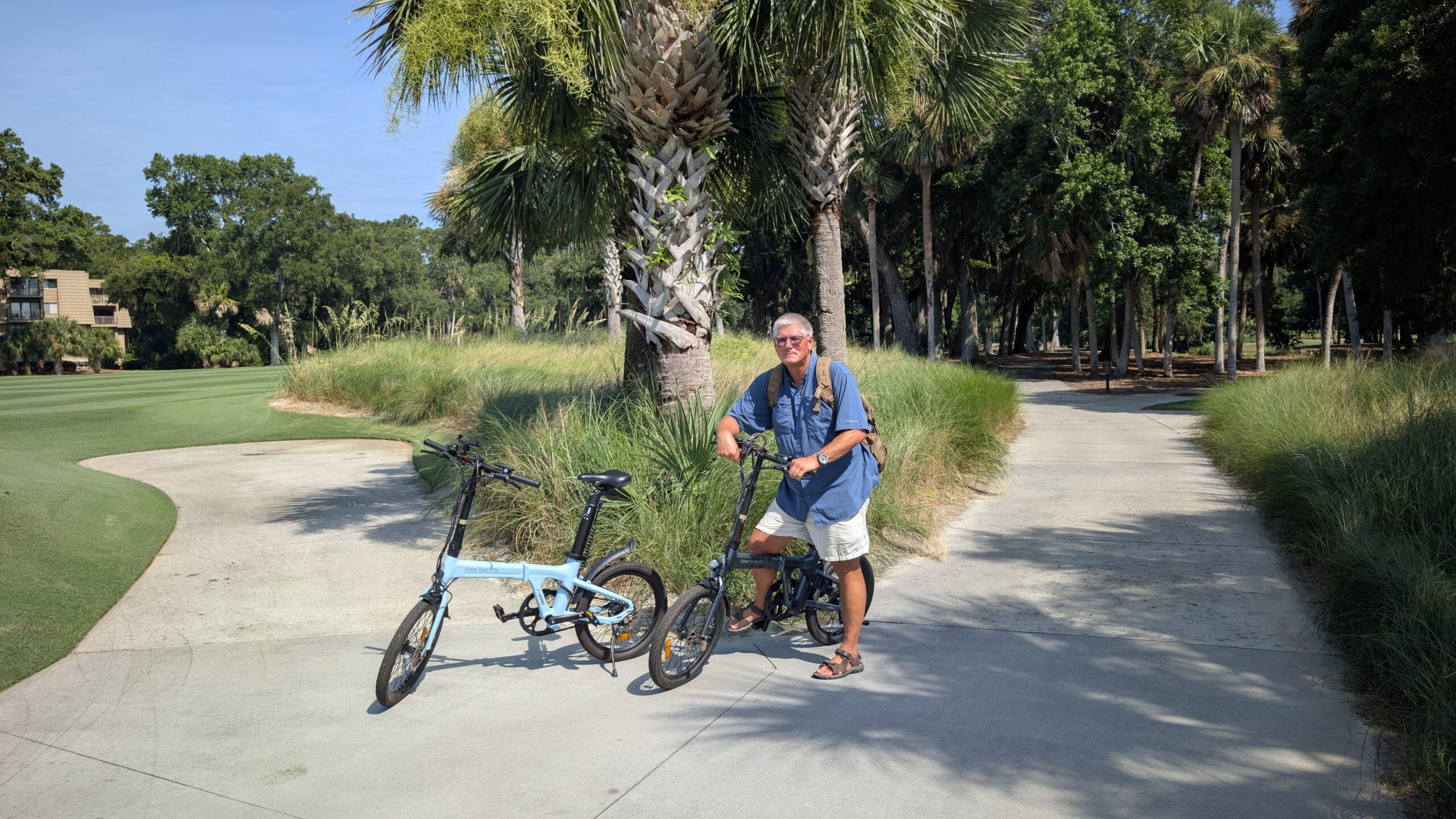 Heute morgen hält Thomas erst mal eine TelKo ab. Anschliessend packen wir unsere Fahrräder und Zubehör aus. Wir starten auf eine Rundfahrt durch einen Teil von Hilton Head Island. Die ganze Insel ist ja riesig. Wir bleiben aber praktisch immer innerhalb der Sea Pines Community. Es ist wunderschön, alles ist unter riesigen Bäumen. Und man hat das Gefühl, man ist in einem Zoo. Es hat viele Vögel, Eichhörnchen, Pferde, Gürteltiere und sogar einen Alligator entdecken wir. 😊