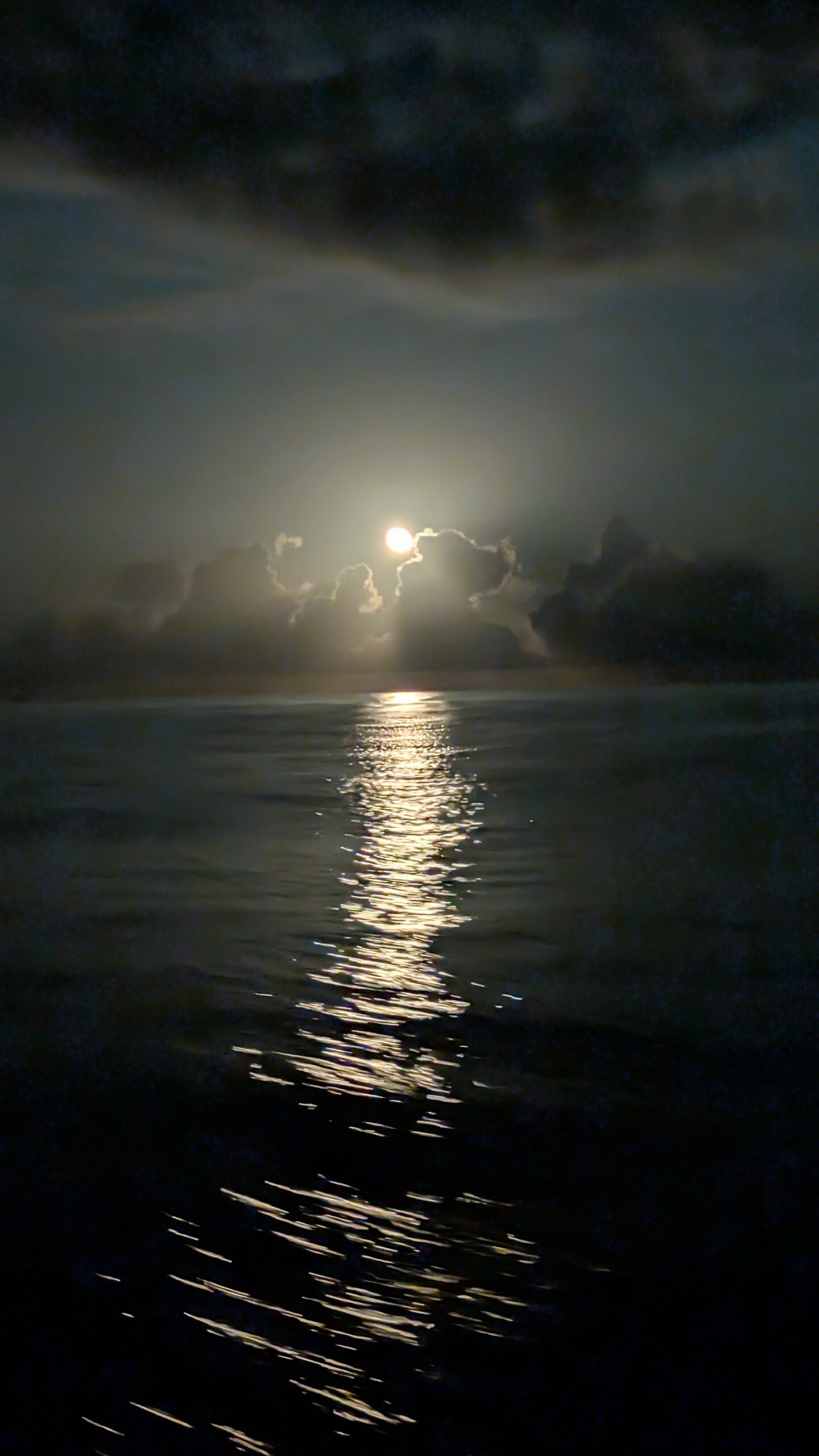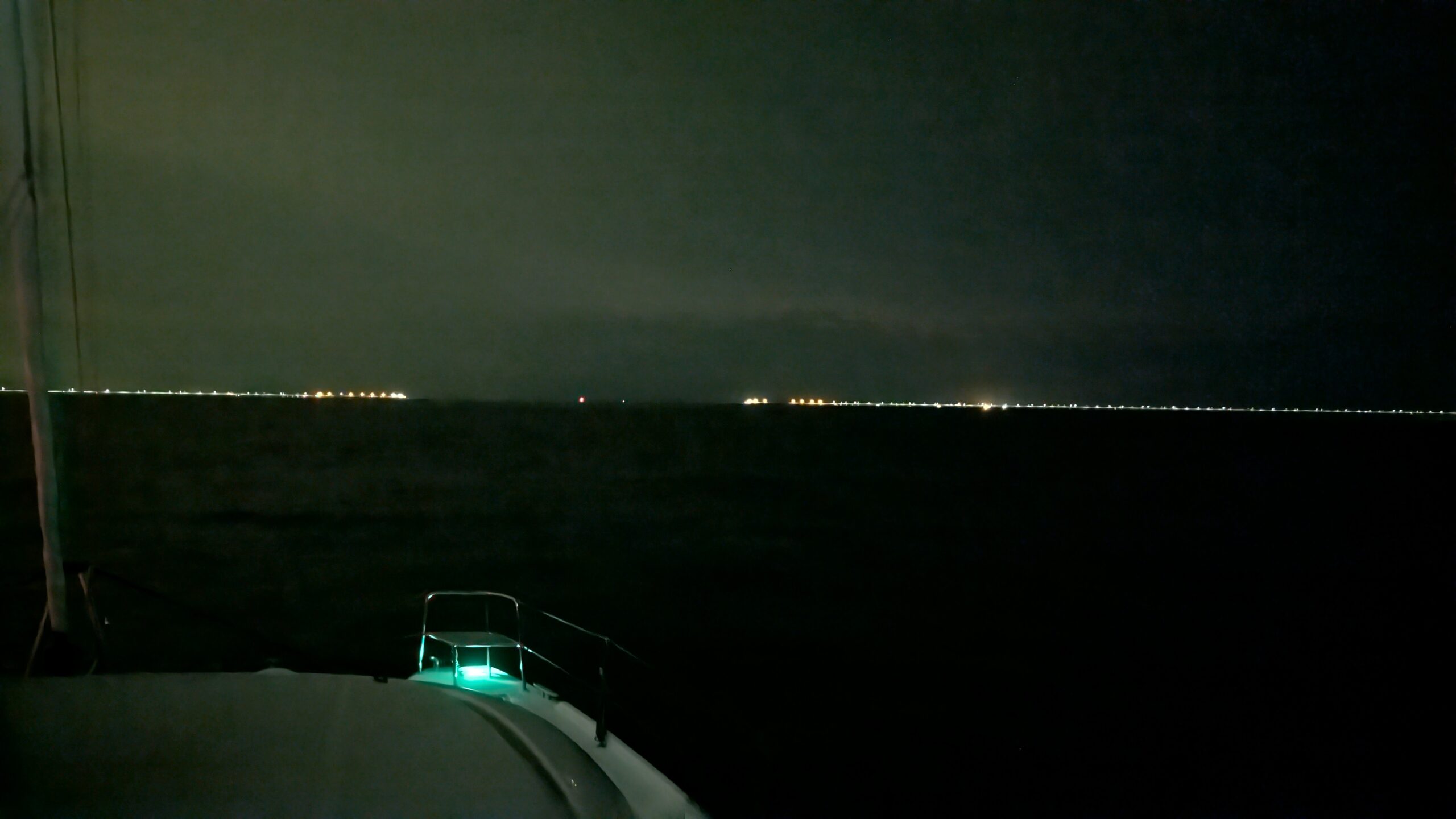 Aufgrund der grossen Lichtverschmutzung vom Land her, ist es gar nicht richtig dunkel. 😇
