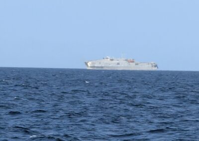 Auch heute Morgen sind wieder Delphine in Sicht. Sogar ganz viele Delphine. Aber sie sind nicht wirklich an Schiffen interessiert und bleiben leider weit weg. Ansonsten haben wir auch heute wieder schönstes, heisses Wetter und nur etwas Wind. Erst als wir näher zur Chesapeake Bay kommen wird es langsam spannender. Immer mehr auch grosse und militärische Schiffe kommen in Sicht. Um 22 Uhr erreichen wir den Inlet zur Chesapeake Bay. Jetzt müssen wir nur noch durch die Schiffe im Verkehrstrennungsgebiet hindurch kommen und den Auto-Tunnel überqueren. 😊