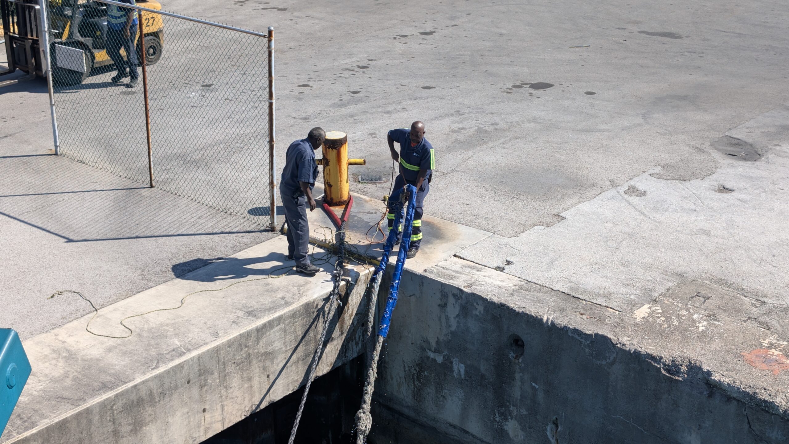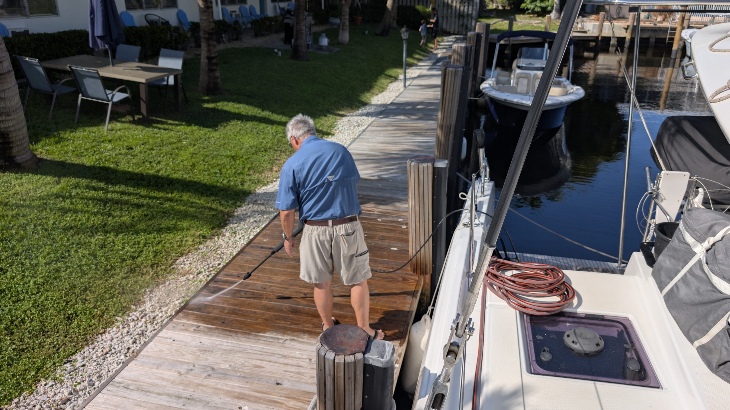 Dort wird heute erst mal mit dem Kärcher der Steg von der ganzen Vogelkacke befreit. So können wir nun ohne gross aufpassen auf’s Schiff laufen. 😊