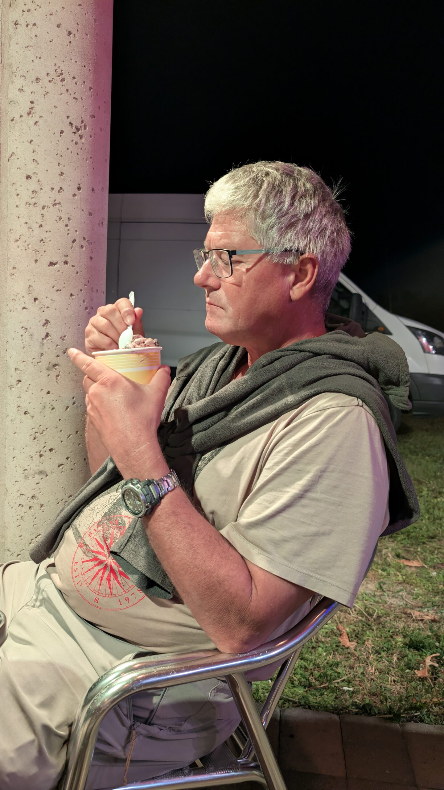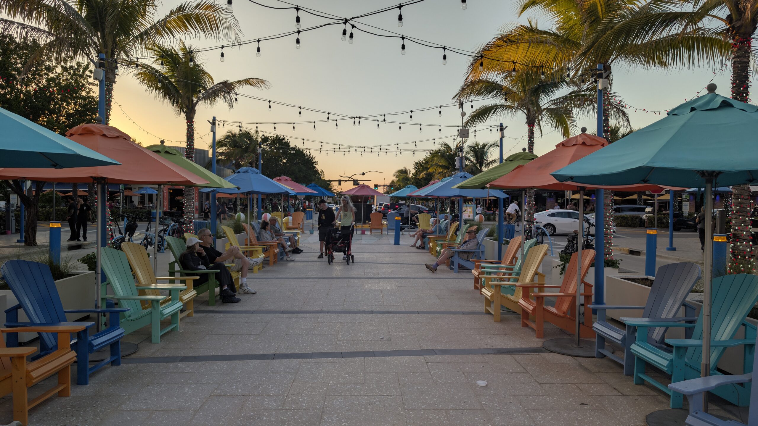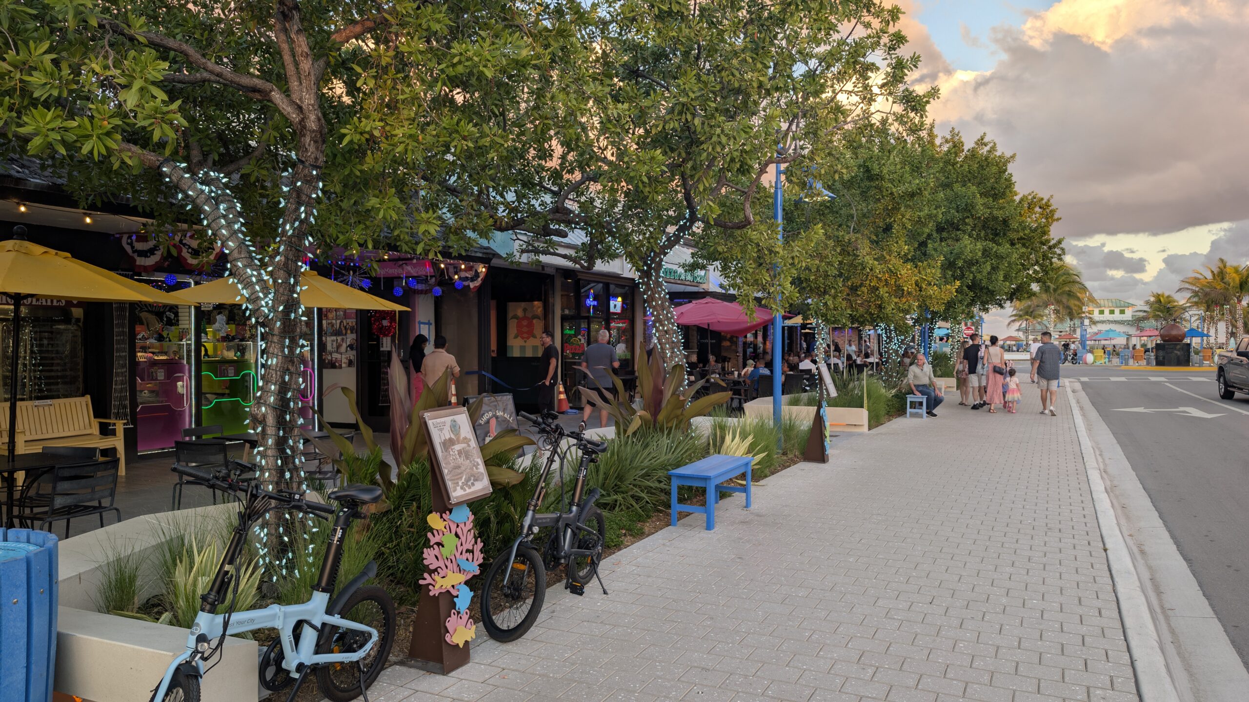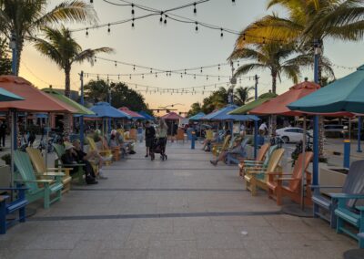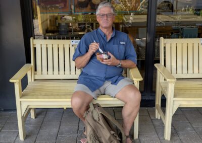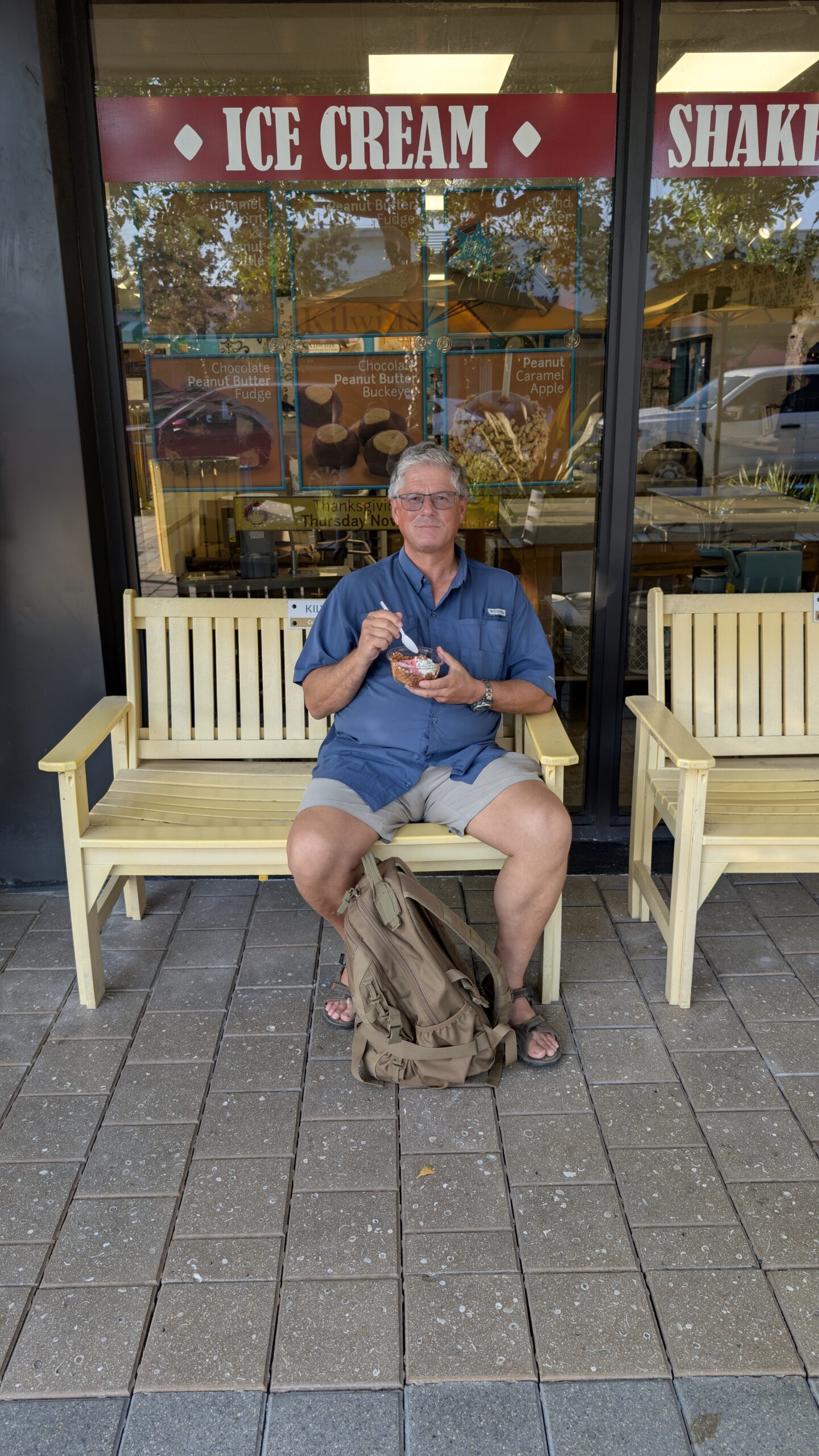 Wir fahren nach Norden bis zum Anglin Square. Dort gönnt sich Thomas ein Eis von Kilwins und wir sitzen ein bisschen in den Stühlen, geniessen die letzten Sonnenstrahlen und schauen die Leute an. 😜