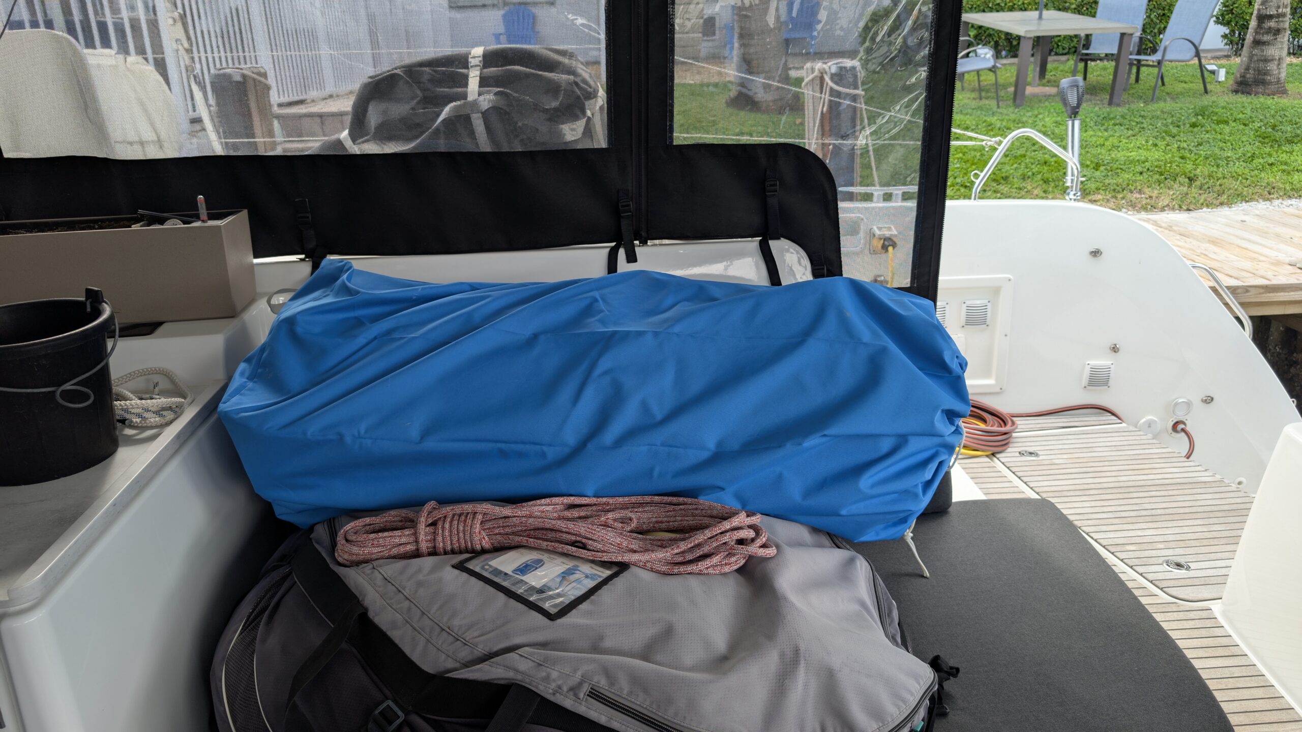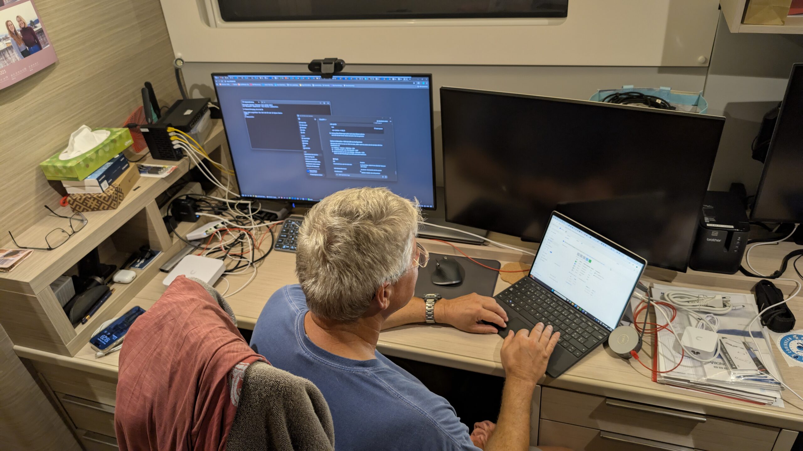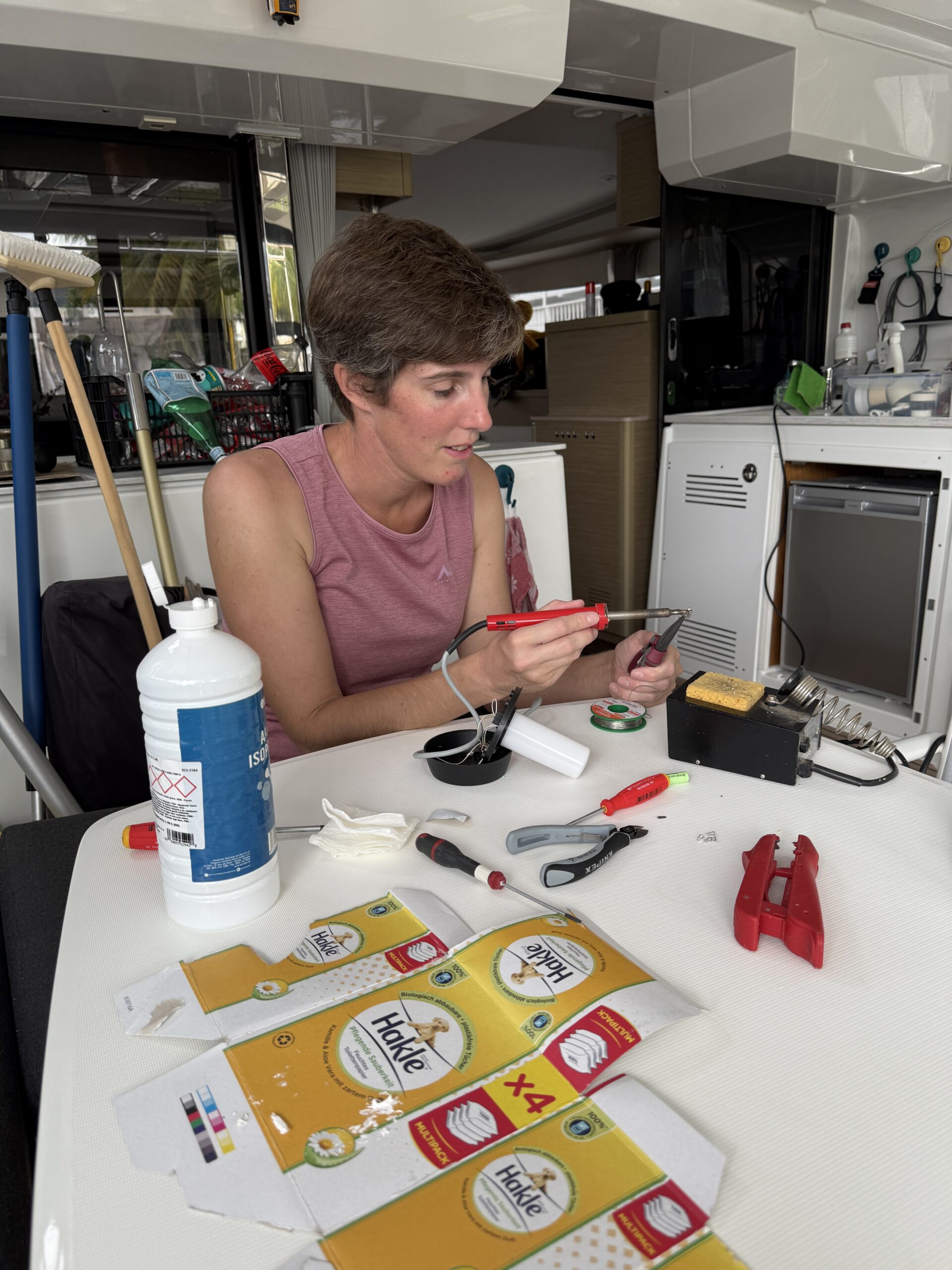 Er plant den Netzwerk- und NAS-Upgrade während ich mal wieder das Schiff putze, die Duschen und WC’s auf Stand-Betrieb umstelle, Chafe-Tape (Scheuerschutz-Band) anklebe und sonstige Kleinigkeiten erledige.