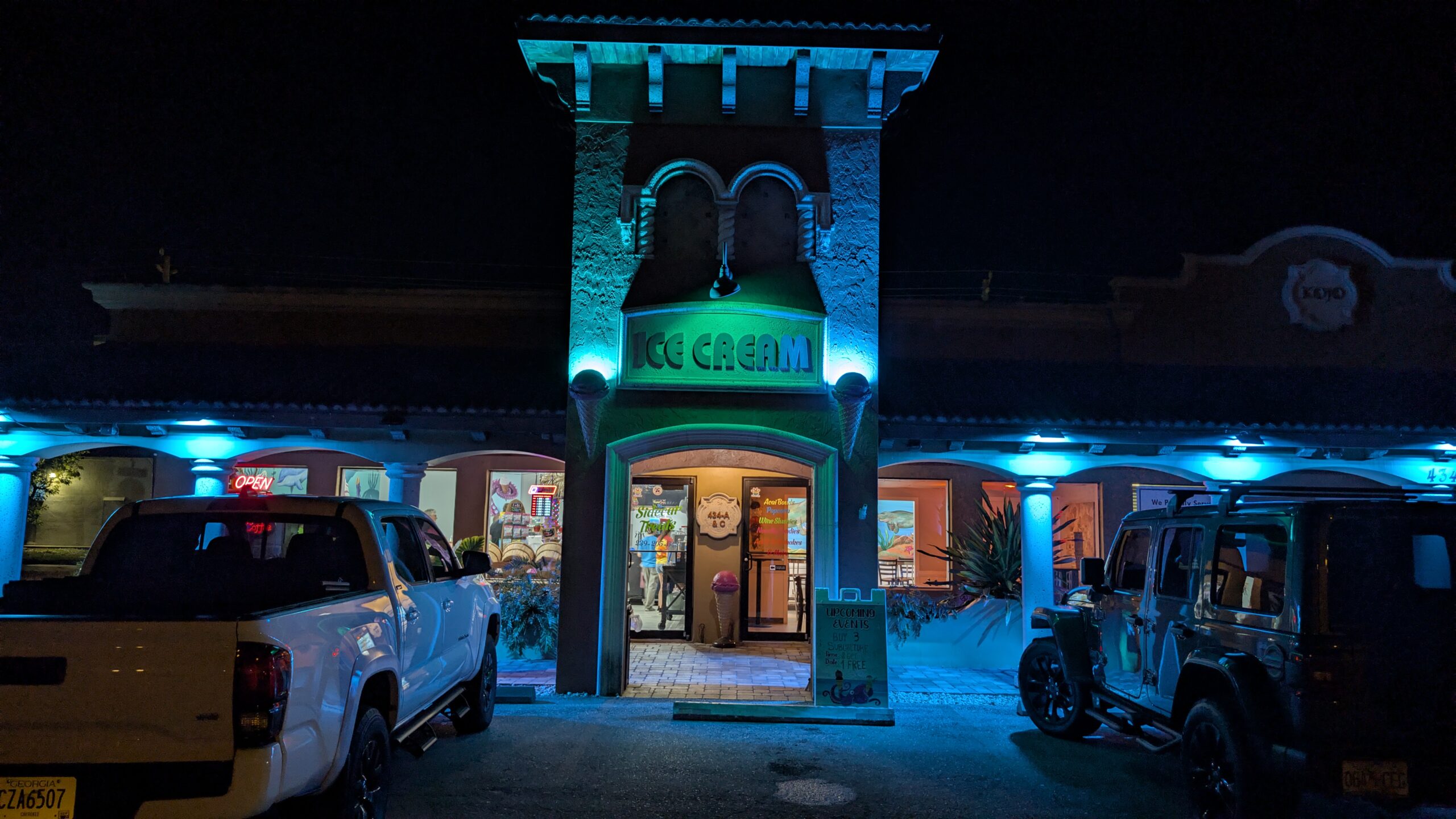 Im nahen Winn-Dixie machen wir einen kurzen Stop. Dann gibt es ein Dessert-Eis in der Eisdiele mit dem etwas seltsamen Namen ‚Sidecar Treats Cape Coral‘. 😊