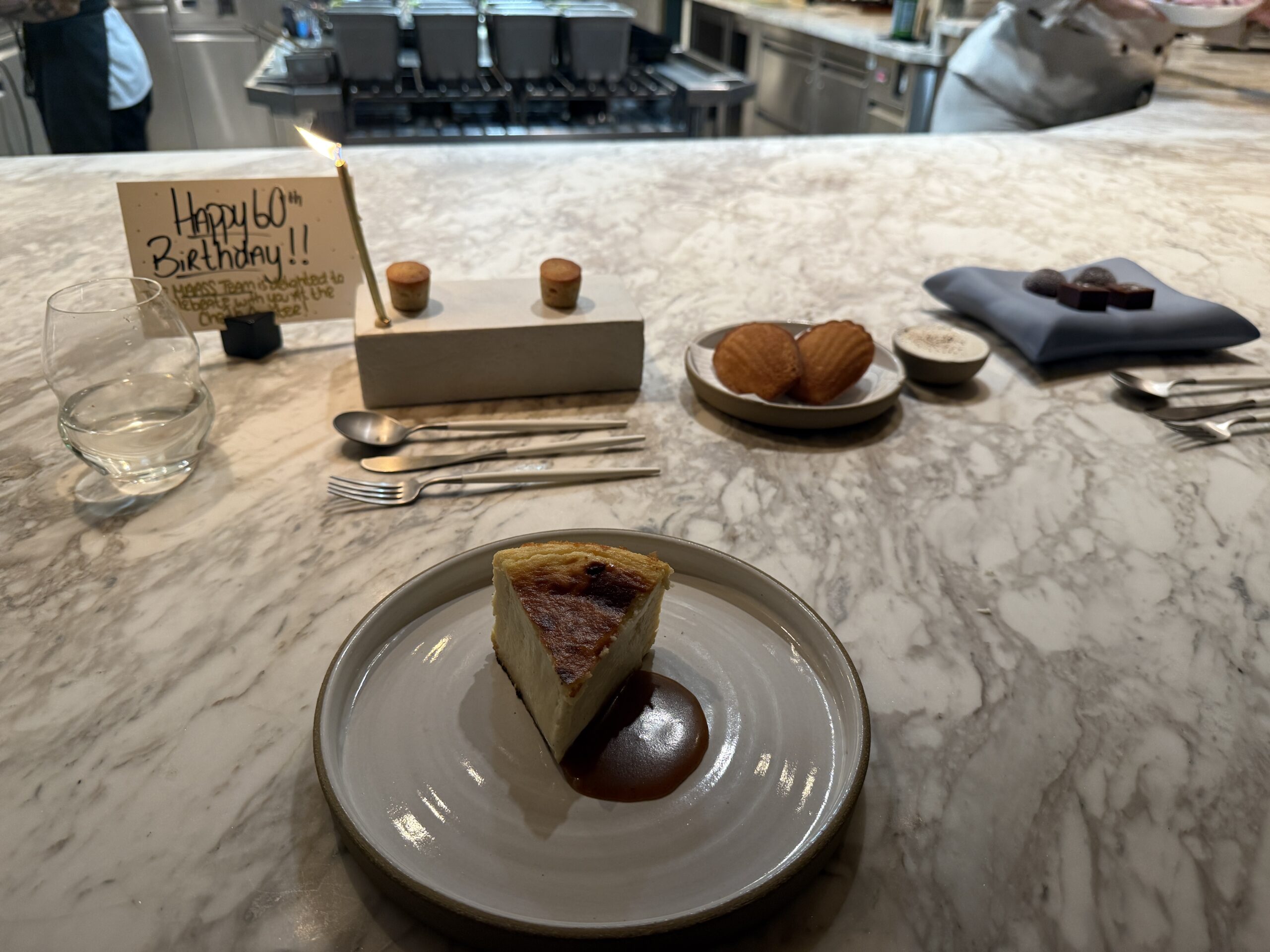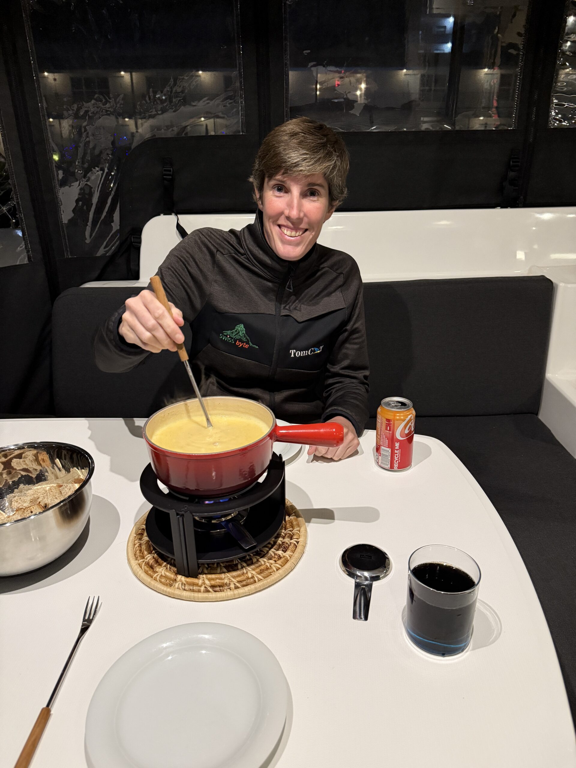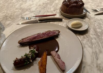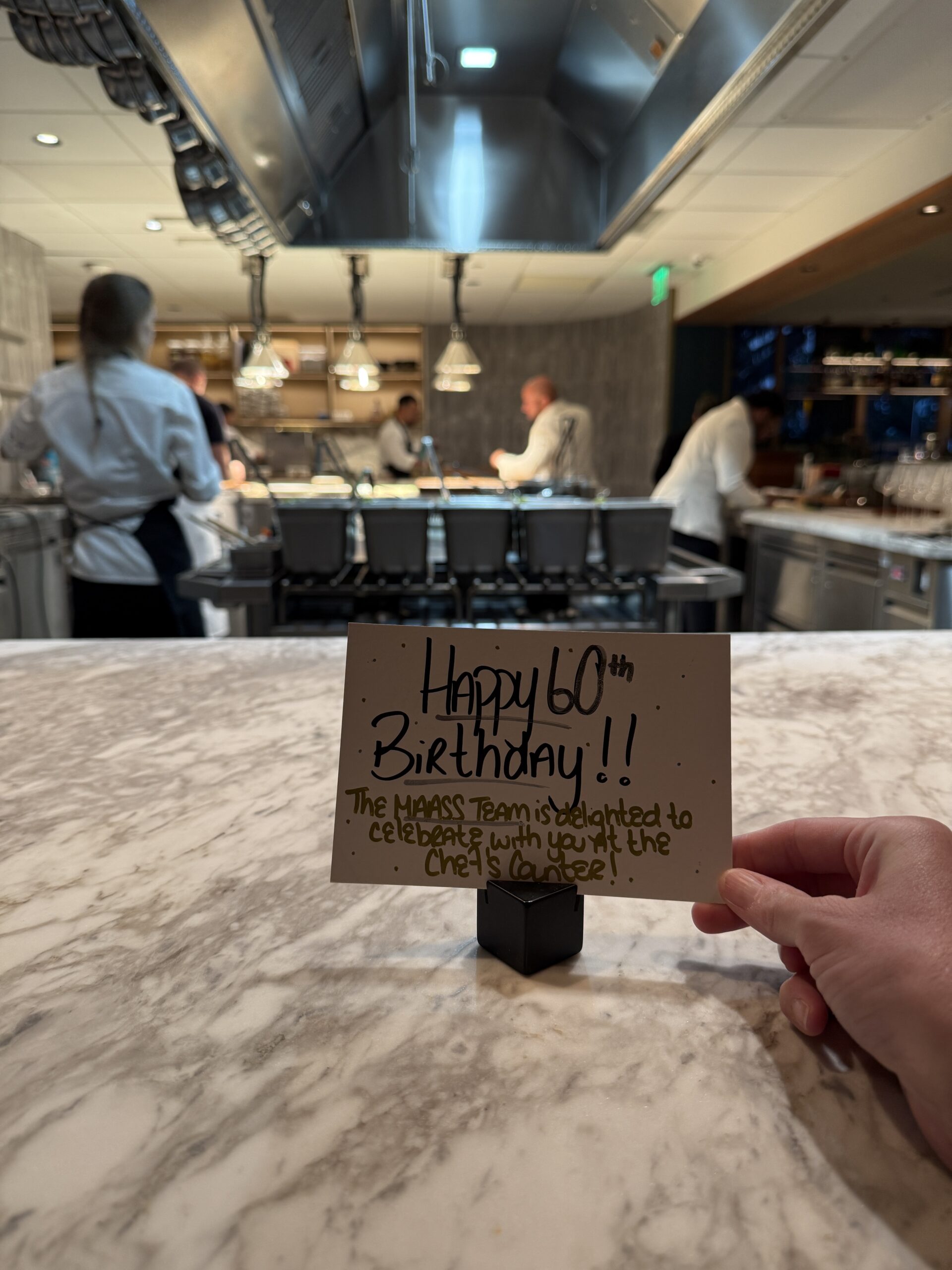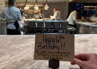 Das Abendessen ist heute mal was Spezielles. Zwei Freundinnen aus der Schweiz haben Thomas auf seinen 60sten Geburtstag ein Abendessen im MAASS geschenkt. 😁