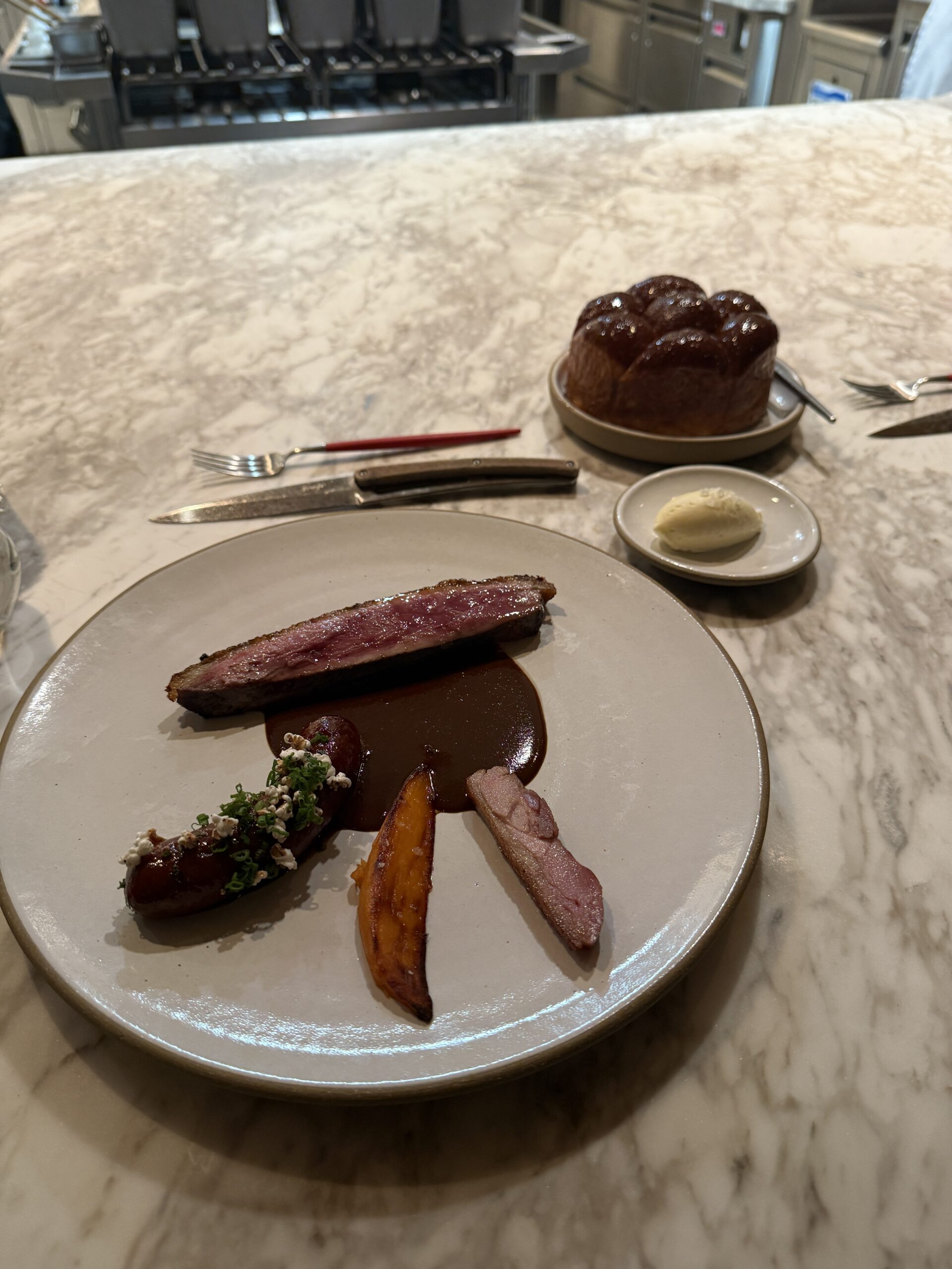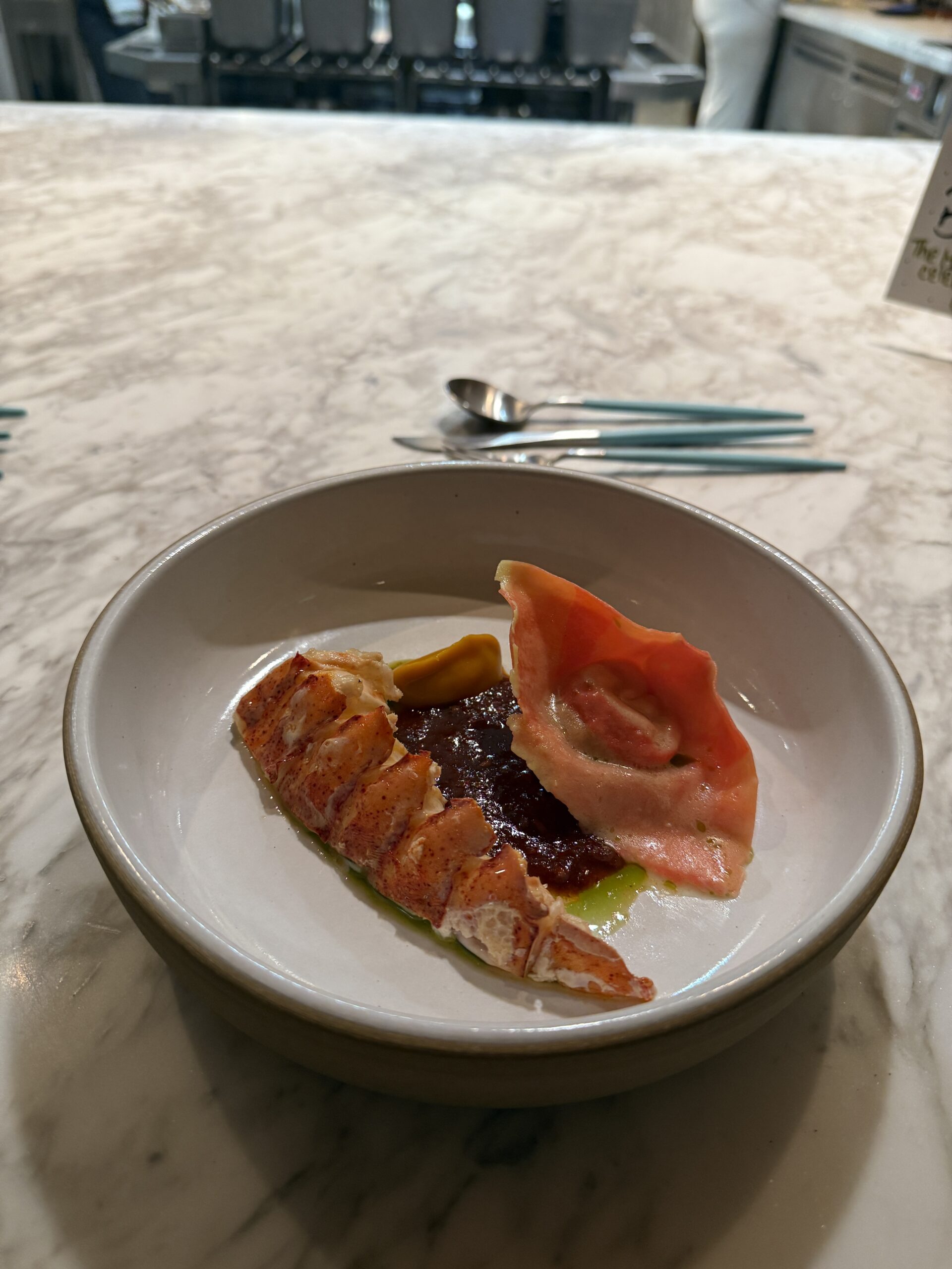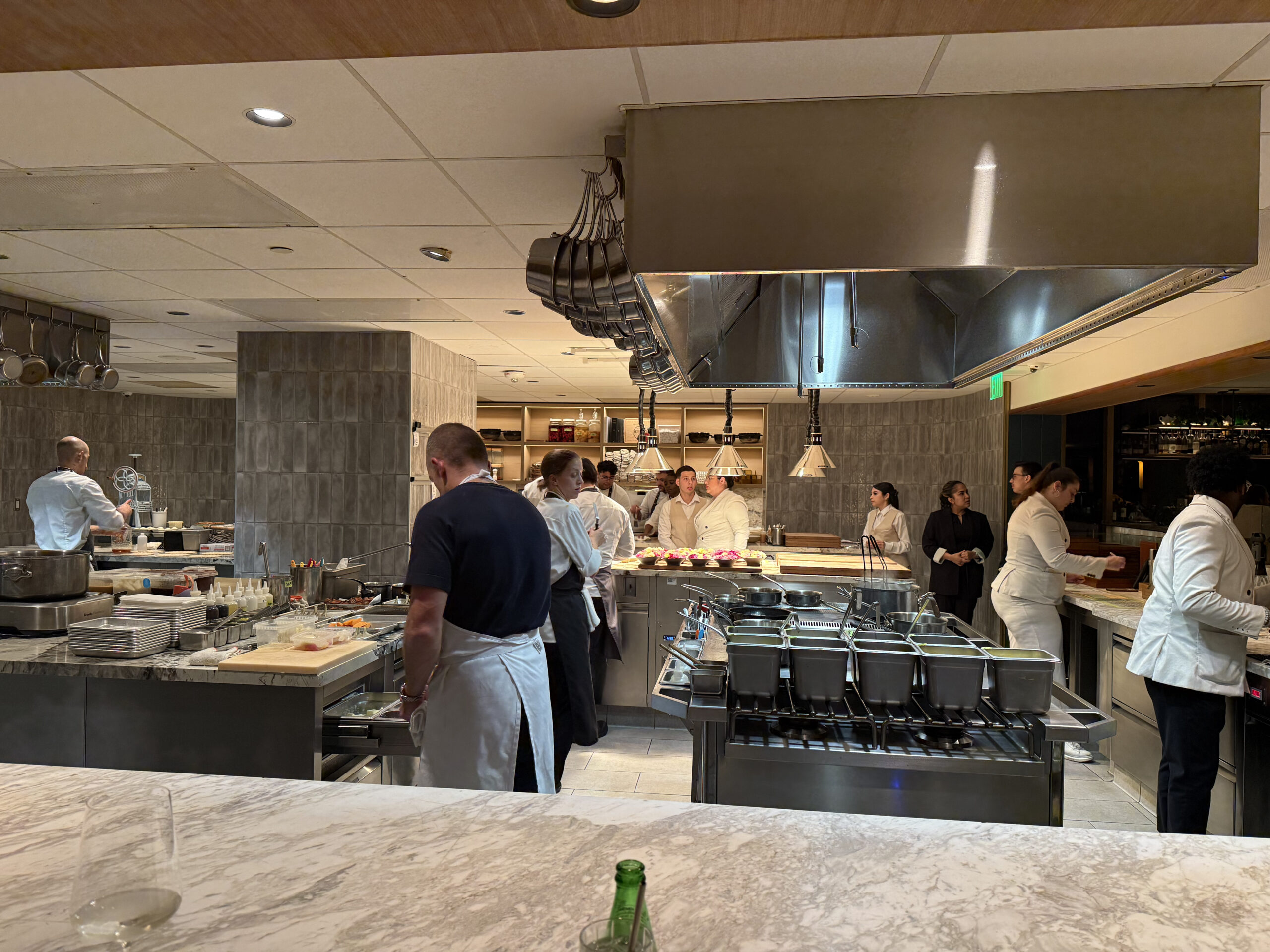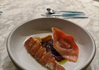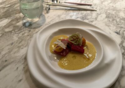 Dort dürfen wir am Chef’s Counter ein 14 gängiges Menü geniessen. Es ist sehr lecker. Und man kriegt auch genug. 😇