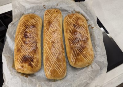 Ich mache noch ein Brot bzw. gleich zwei Kleinere. In dem riesen Backofen in der Wohnung geht das gut. 😁