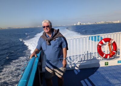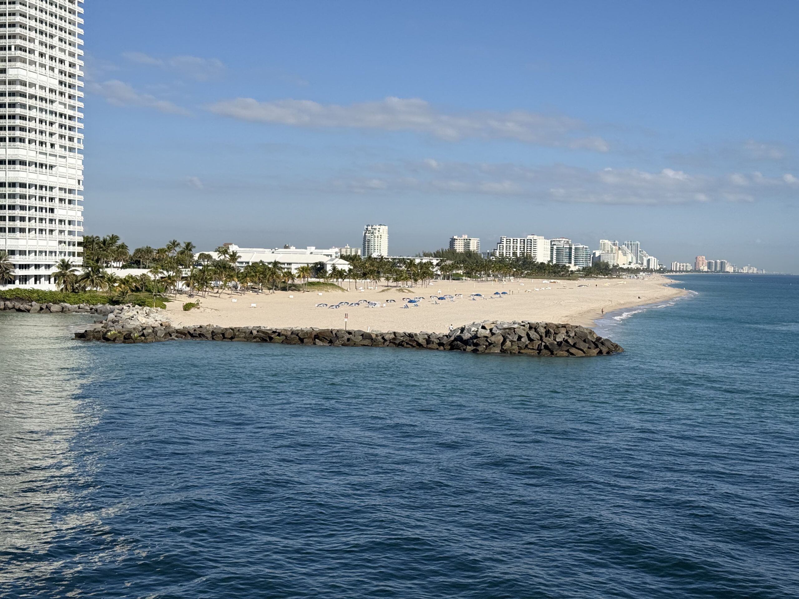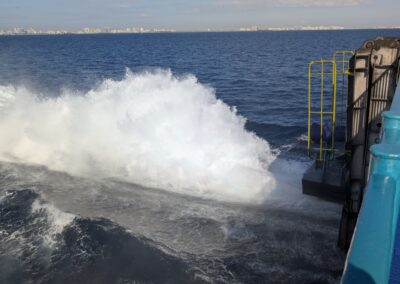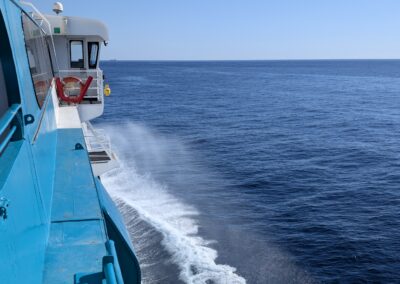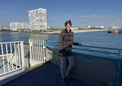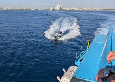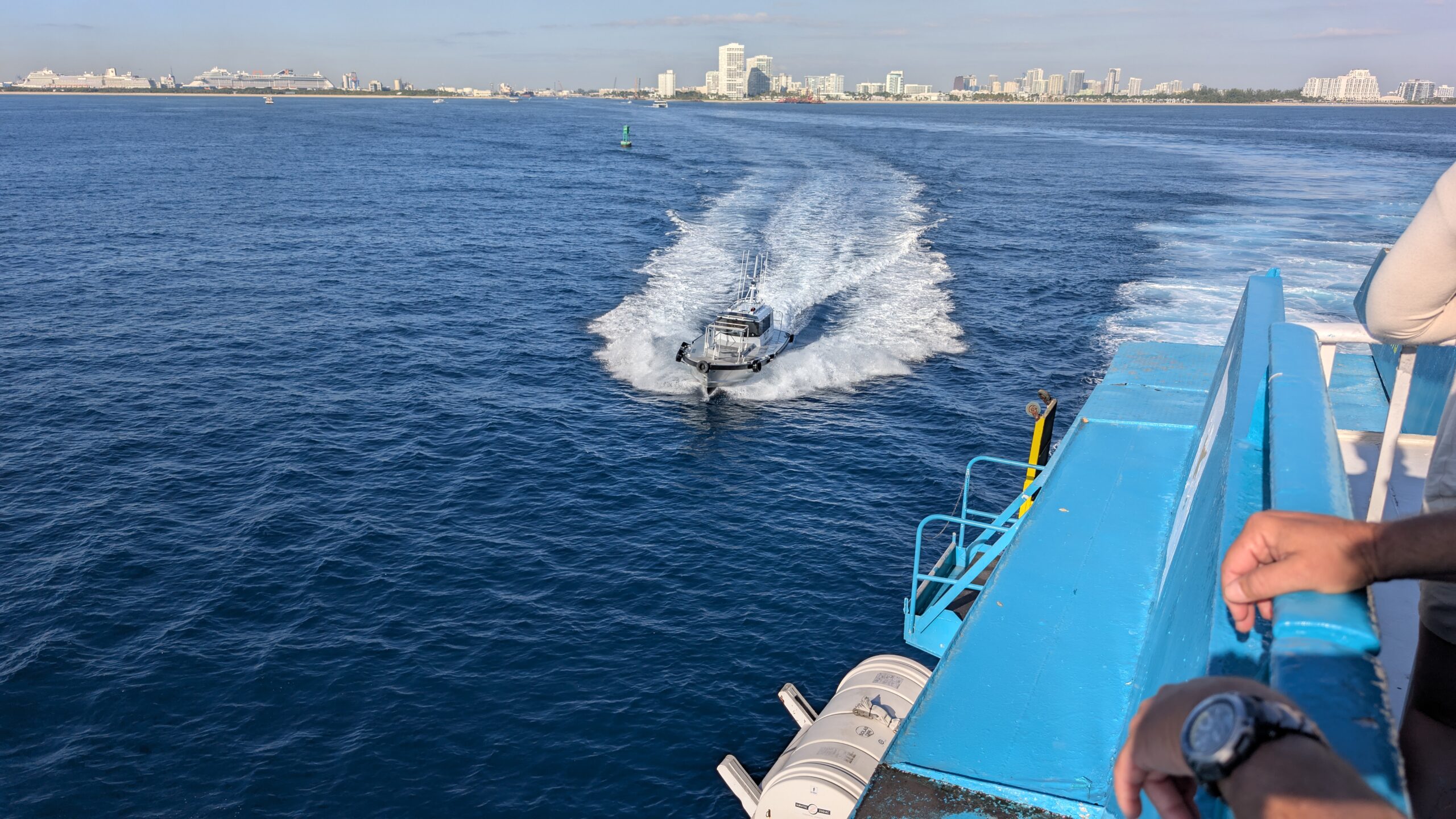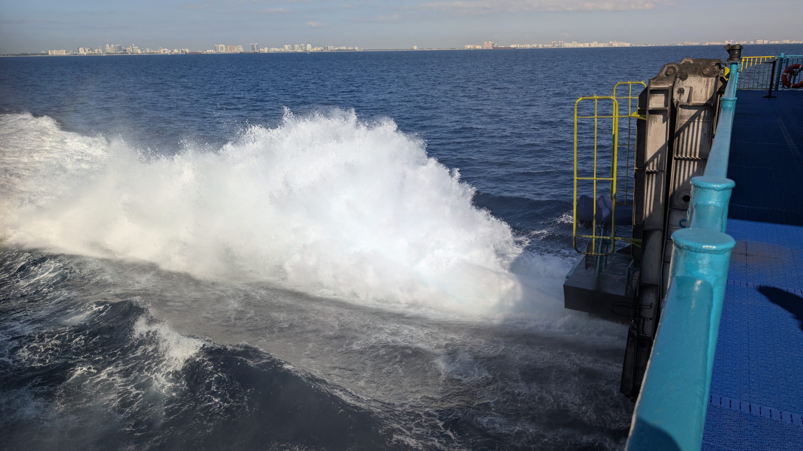 Denn heute klingelt um 6 Uhr der Wecker. Und um 6:40 Uhr lädt uns der Uber-Fahrer beim Fähr-Terminal im Port Everglades aus. Es hat sehr wenige Passagiere und der Check-In ist eine kurze Sache. Nach 1,5 Stunden warten, können wir die Fähre boarden. Pünktlich um 9 Uhr legt die Fähre ab und wir fahren mit 30 Knoten in Richtung Grand Bahama.