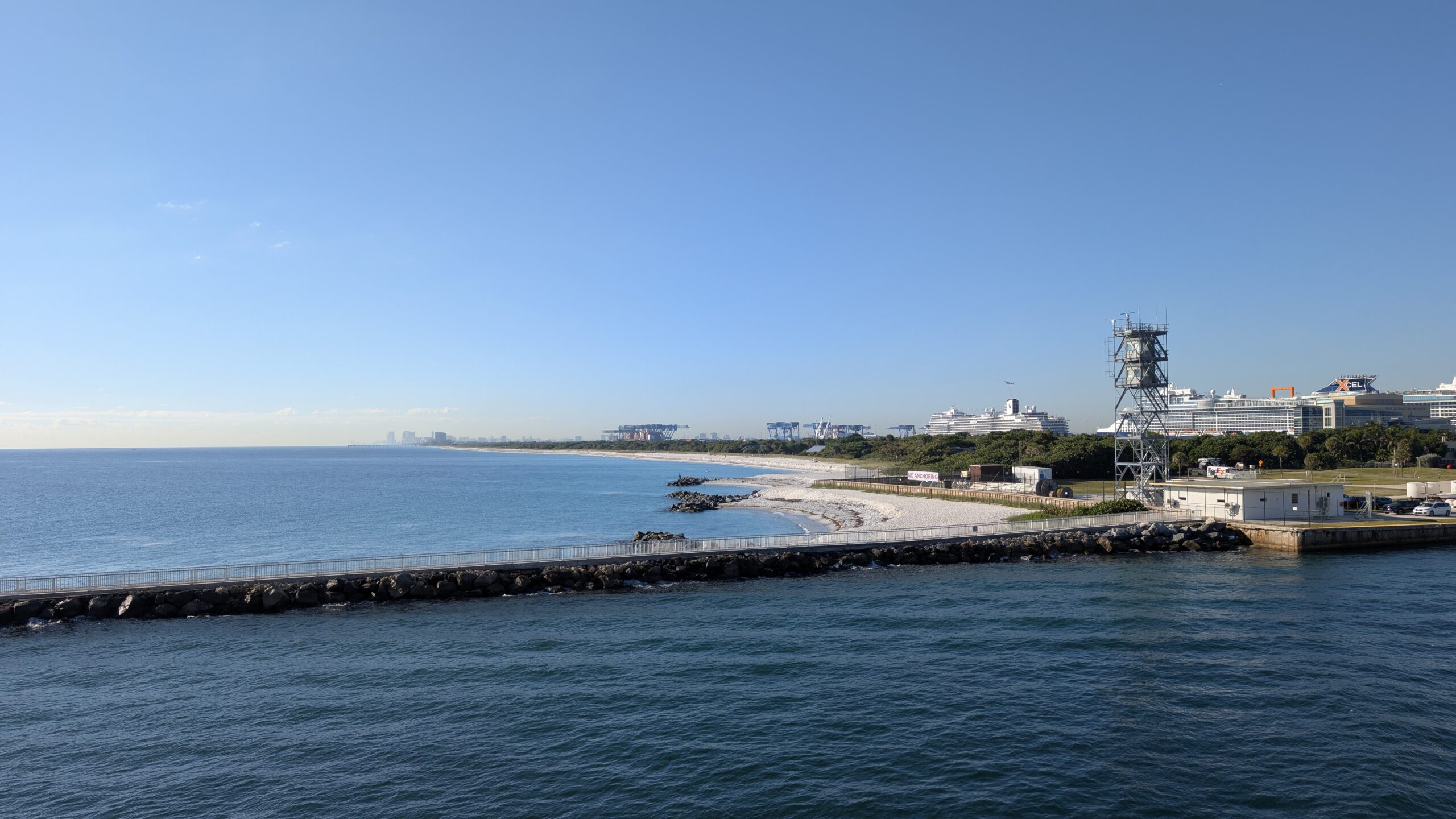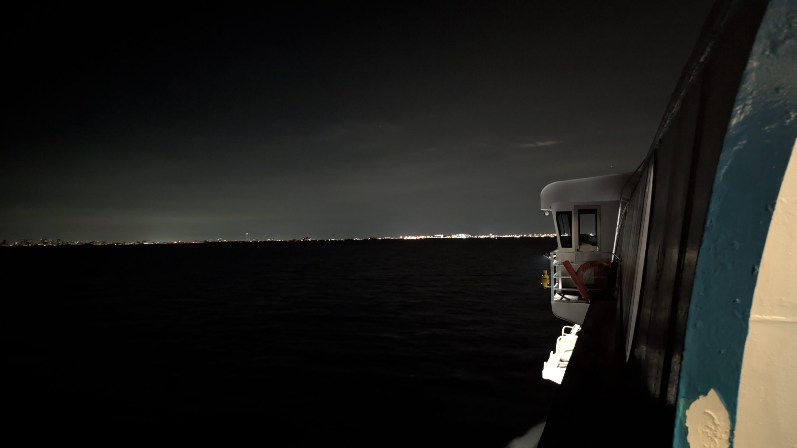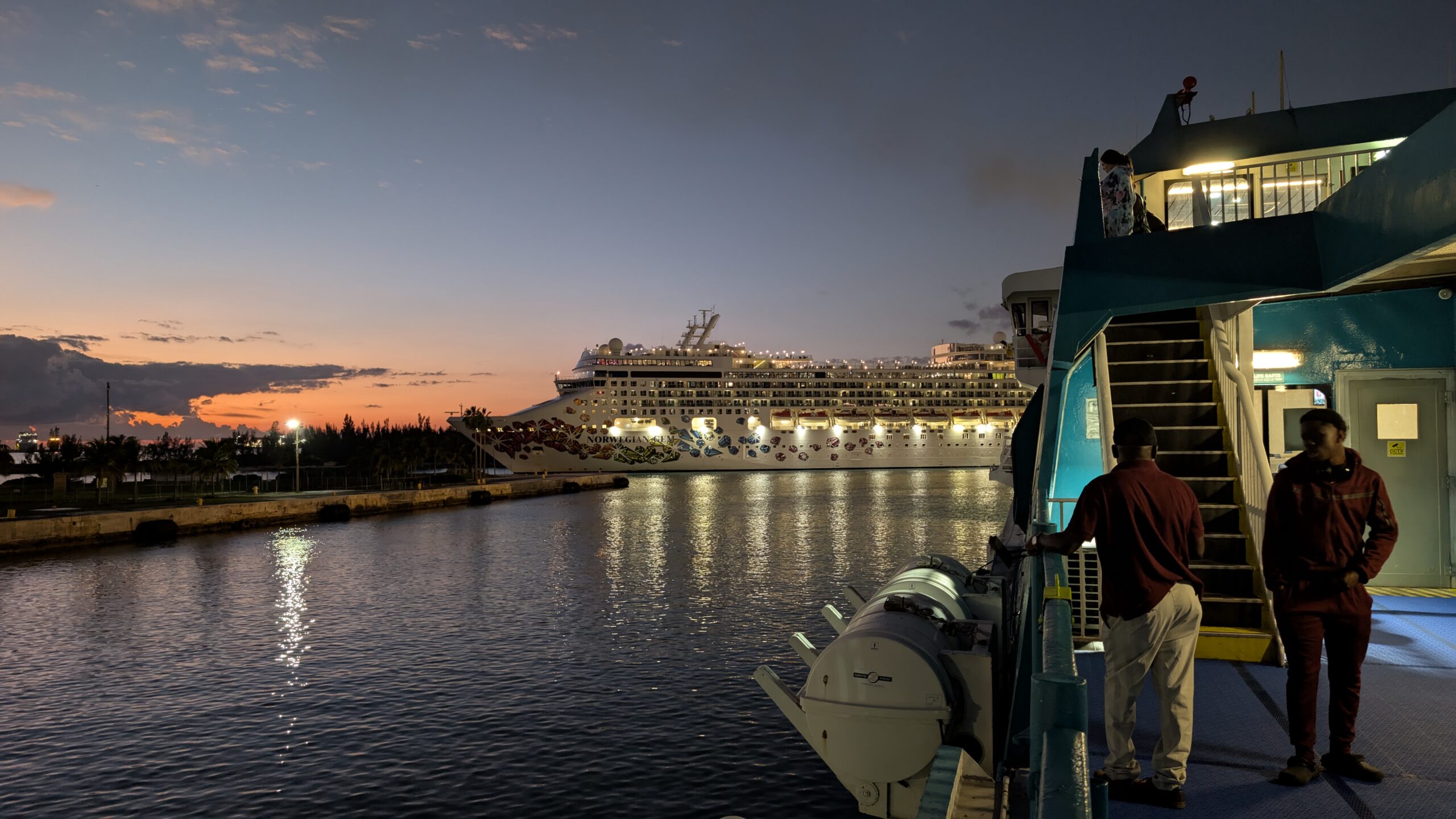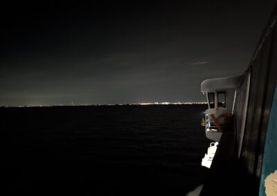 30 Minuten vor dem Fahrplan legt die Fähre um 18 Uhr ab und es geht wieder auf sehr ruhigem Meer zurück nach Fort Lauderdale. Der Rückweg geht irgendwie schneller, denn wir erreichen bereits um 20:45 Uhr Port Everglades. Auch hier müssen wir 20 Minuten warten, bis wir das Schiff verlassen dürfen. Warum auch immer. 😆