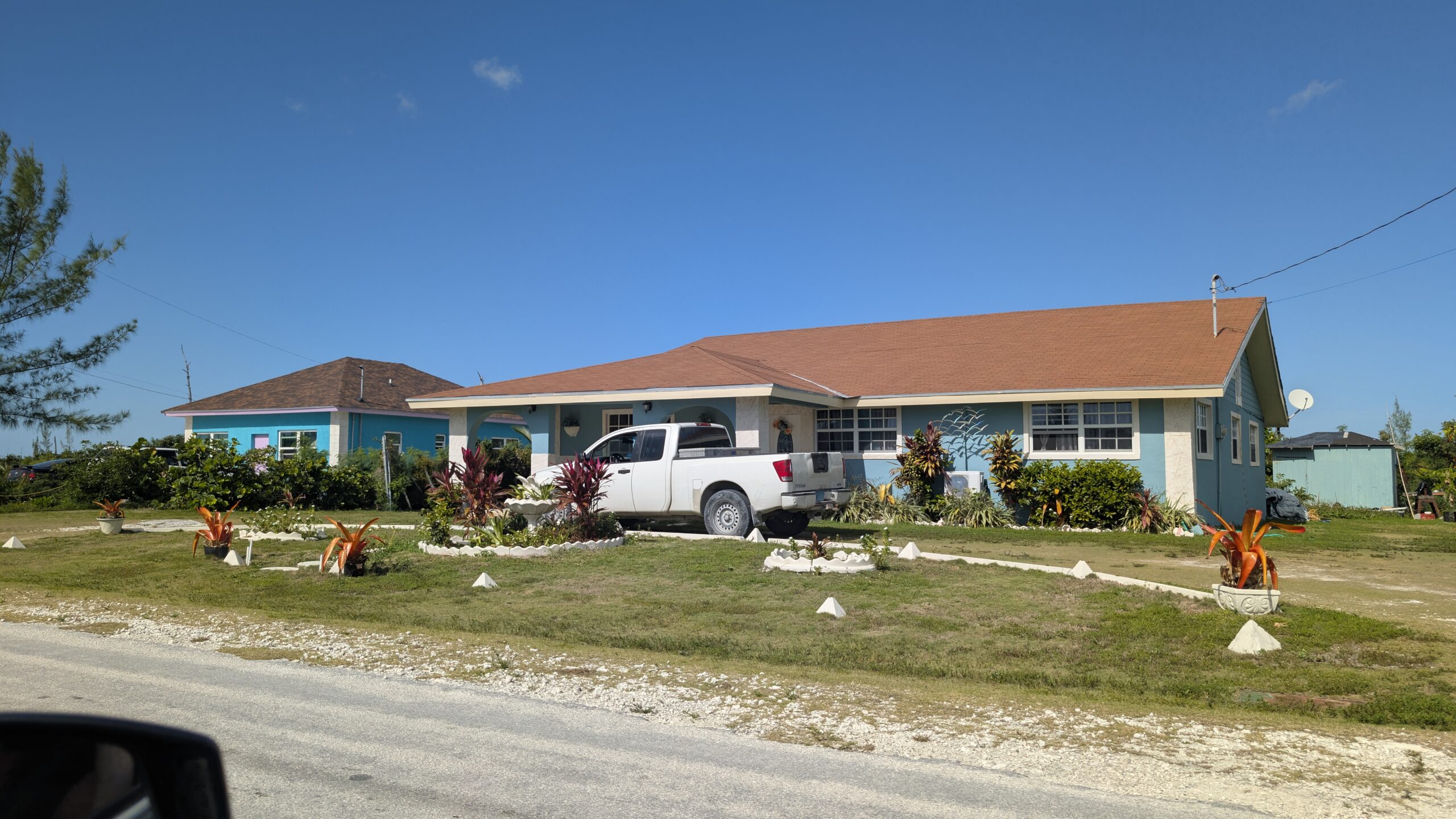 Heute fahren wir erneut auf der Insel rum. Diesmal bis ganz nach East End und wieder zurück. Ausserhalb von Freeport ist die Insel schon sehr karibisch. 😆