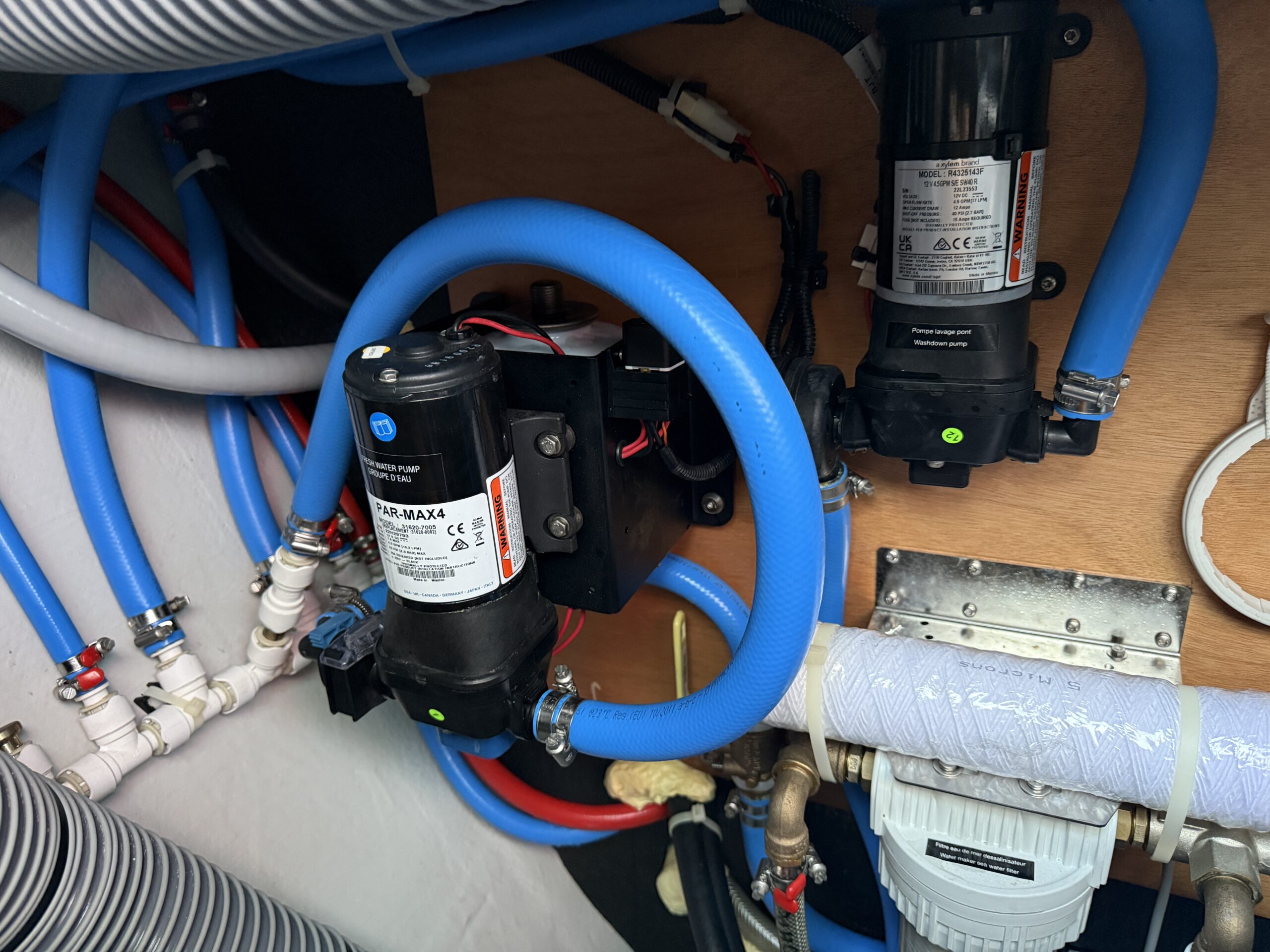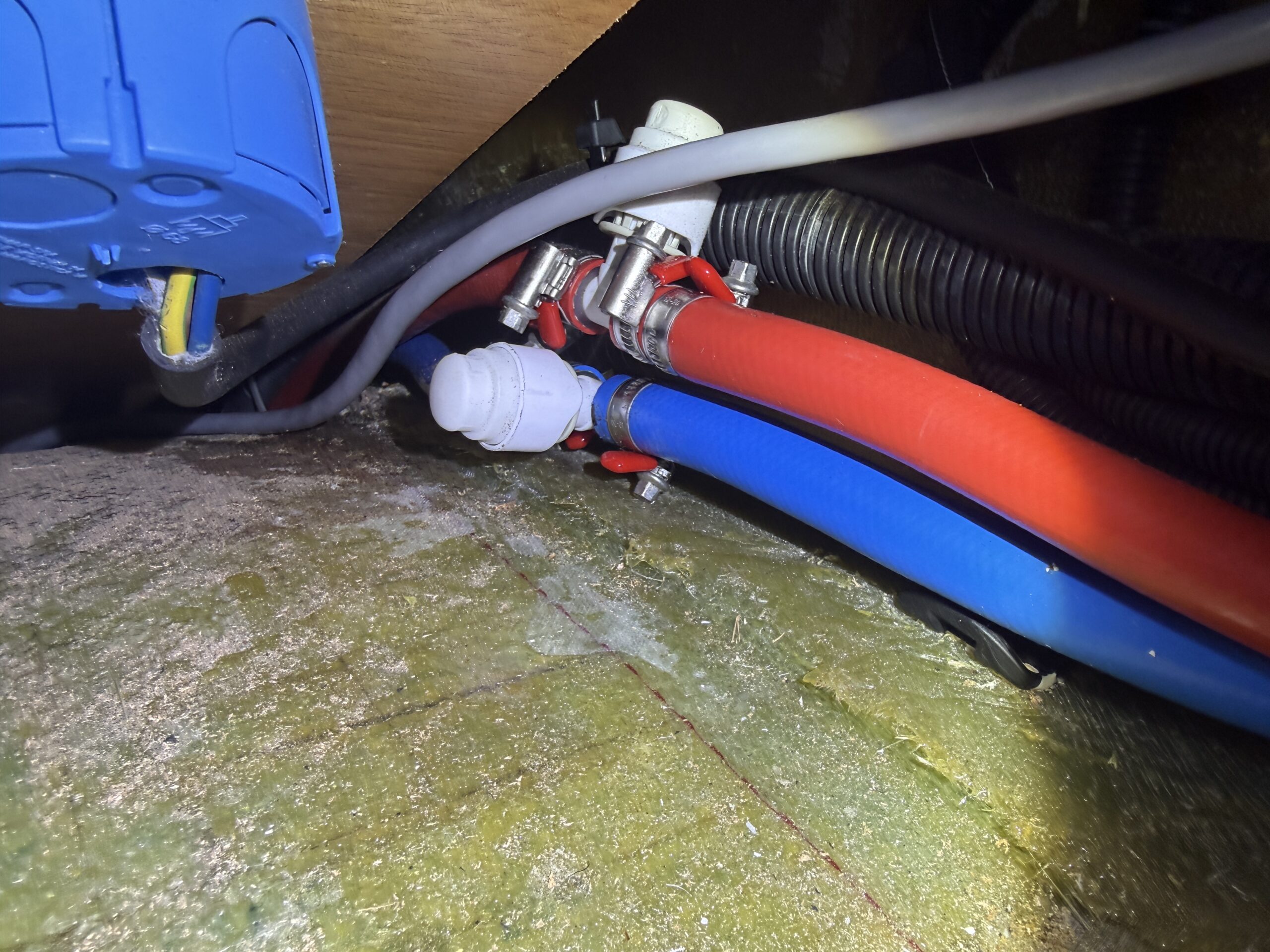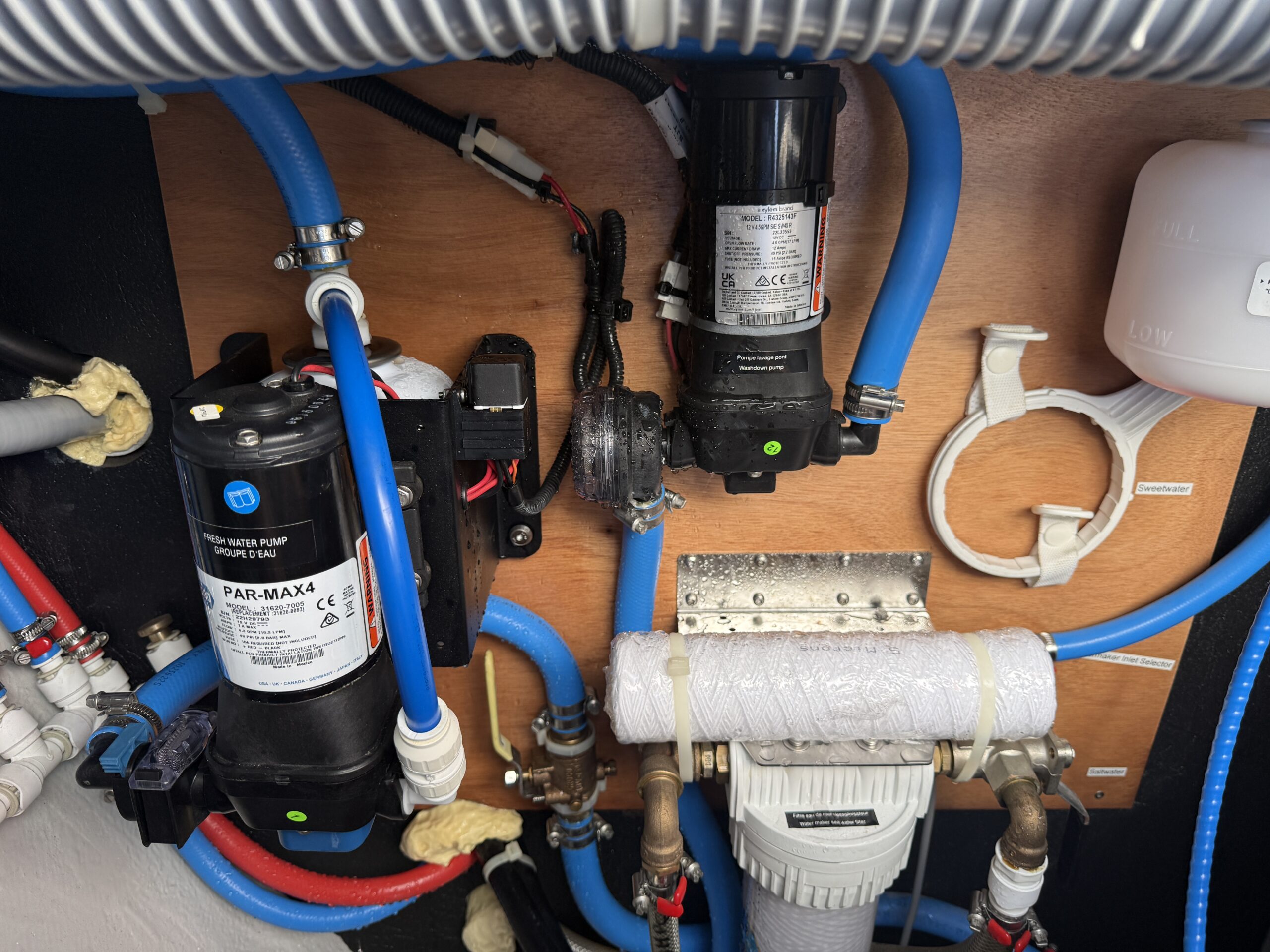 Zum Glück haben wir gerade eben noch eine Ersatz-Wasserpumpe gekauft. Denn dank den Teilen, die da mitgeliefert werden können wir nun den Druckbehälter überbrücken und haben trotzdem noch fliessen Wasser. 😇
