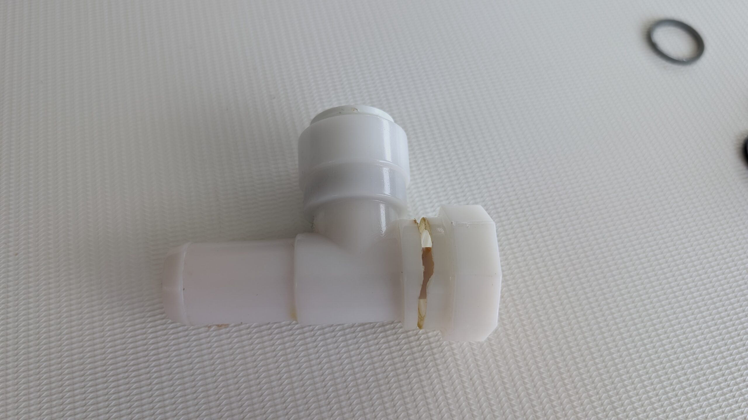 Laut Thomas‘ Analyse musste das früher oder später passieren, da der Schlauch sehr steif ist und die ganzen Vibrationen überhaupt nicht dämpft, sondern voll auf das Plastik-Verbindungsstück weiterleitet. Und das ist nicht für solche Maltretierung konstruiert. 🙄