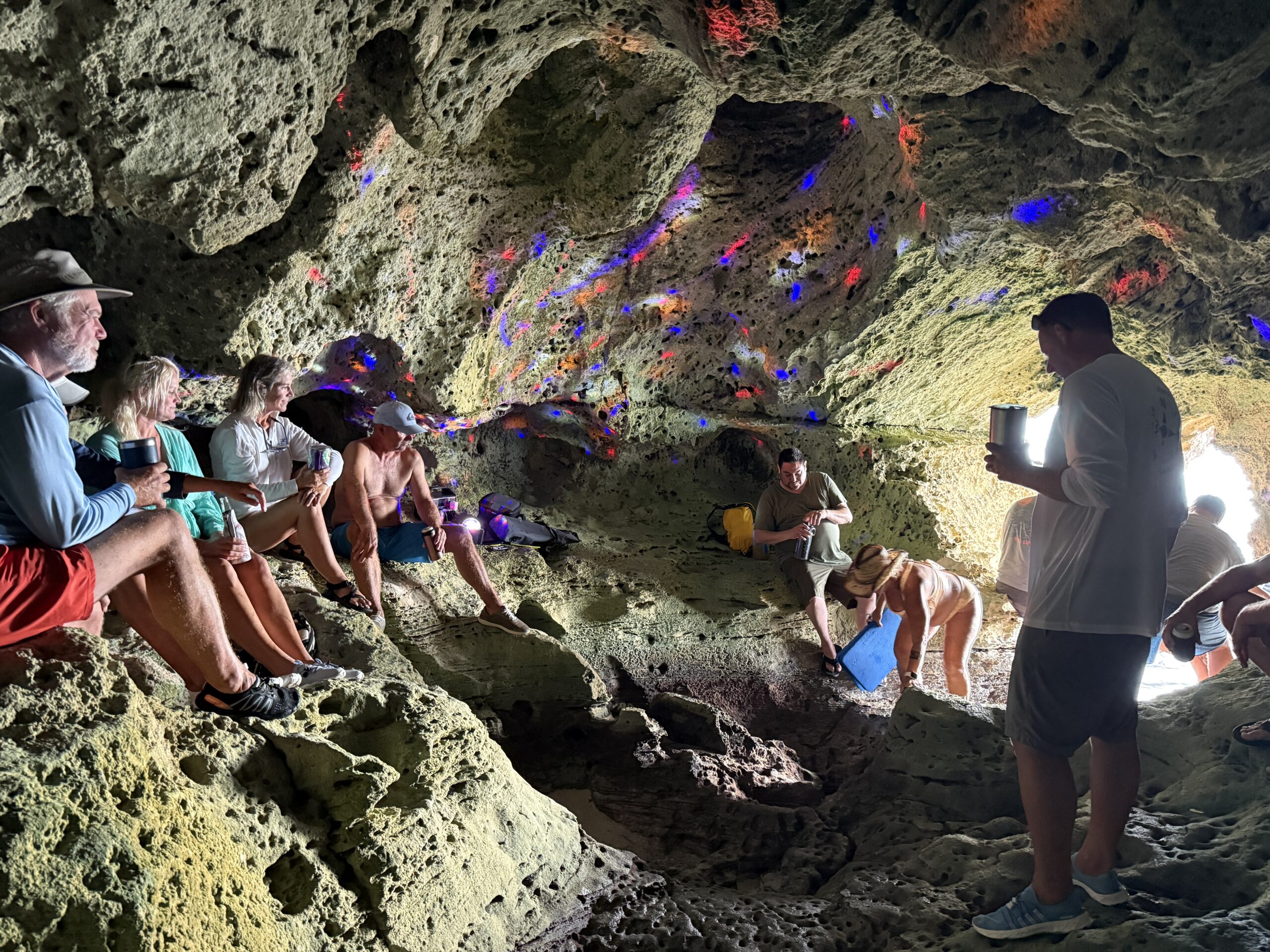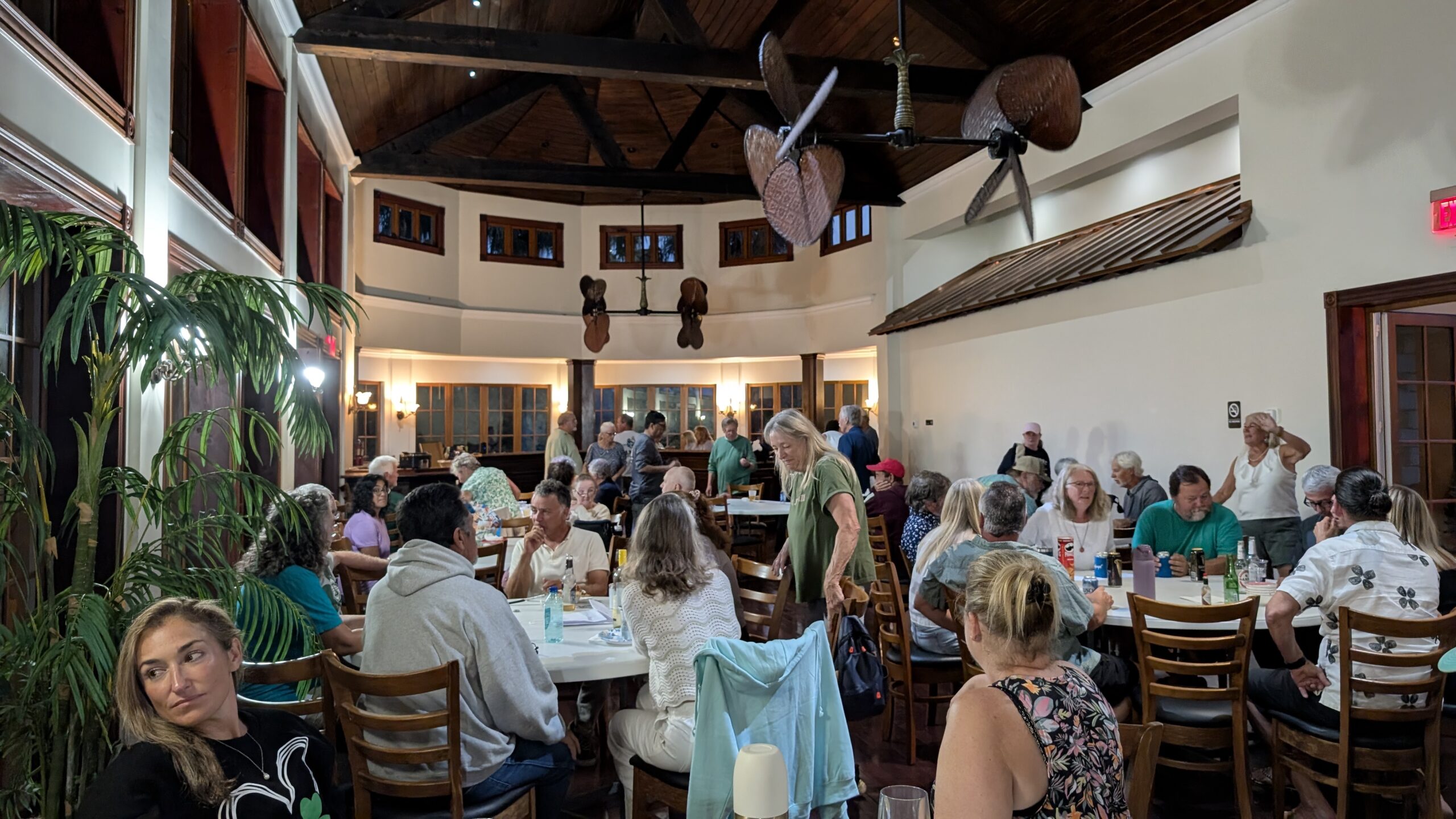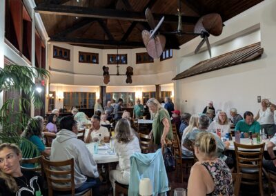 Wir lernen wieder interessante Leute kennen. Viele kommen immer wieder hier her in den Urlaub, einige leben sogar hier und ganz wenige sind zum aller ersten Mal hier. Als der Potluck zu Ende ist, treffen wir die einen noch an der Bar und unterhalten uns über alles mögliche, wobei Schiffe etc. schon ein Hauptthema ist. 😁