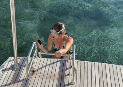 Wir fahren ein paar Minuten auf’s Meer raus und setzen dann gleich die Segel. Da wir das schon länger nicht mehr gemacht haben, dauert es einen Moment länger, aber funktioniert alles einwandfrei. 😜