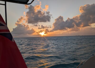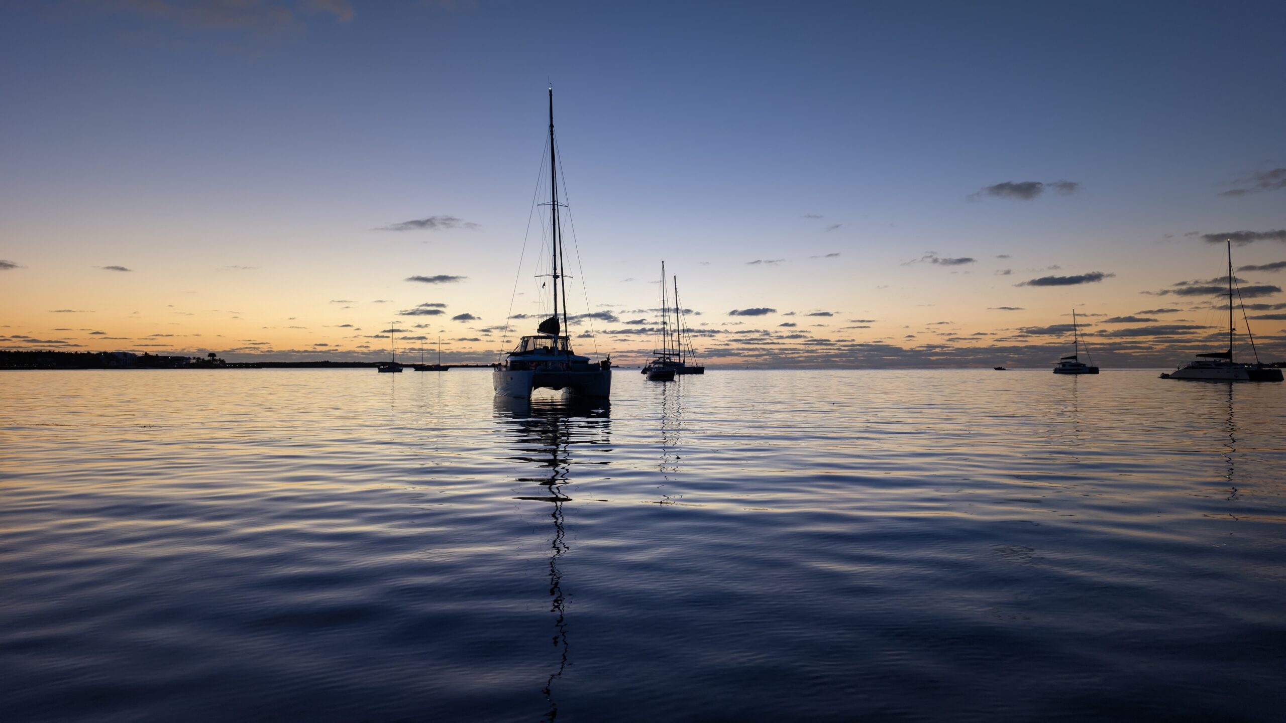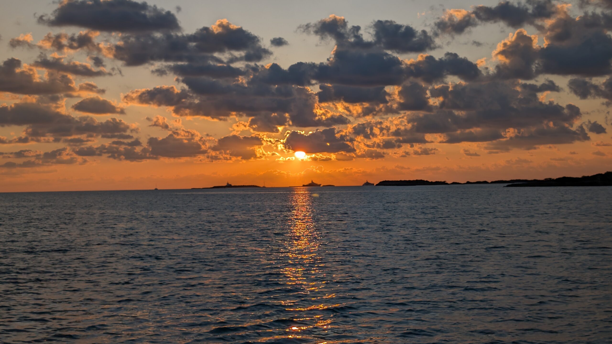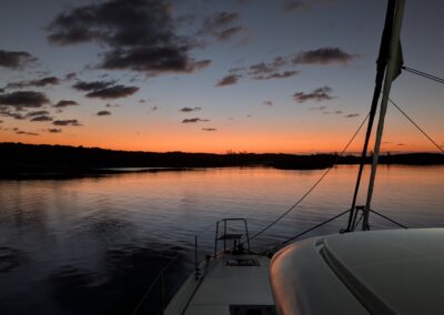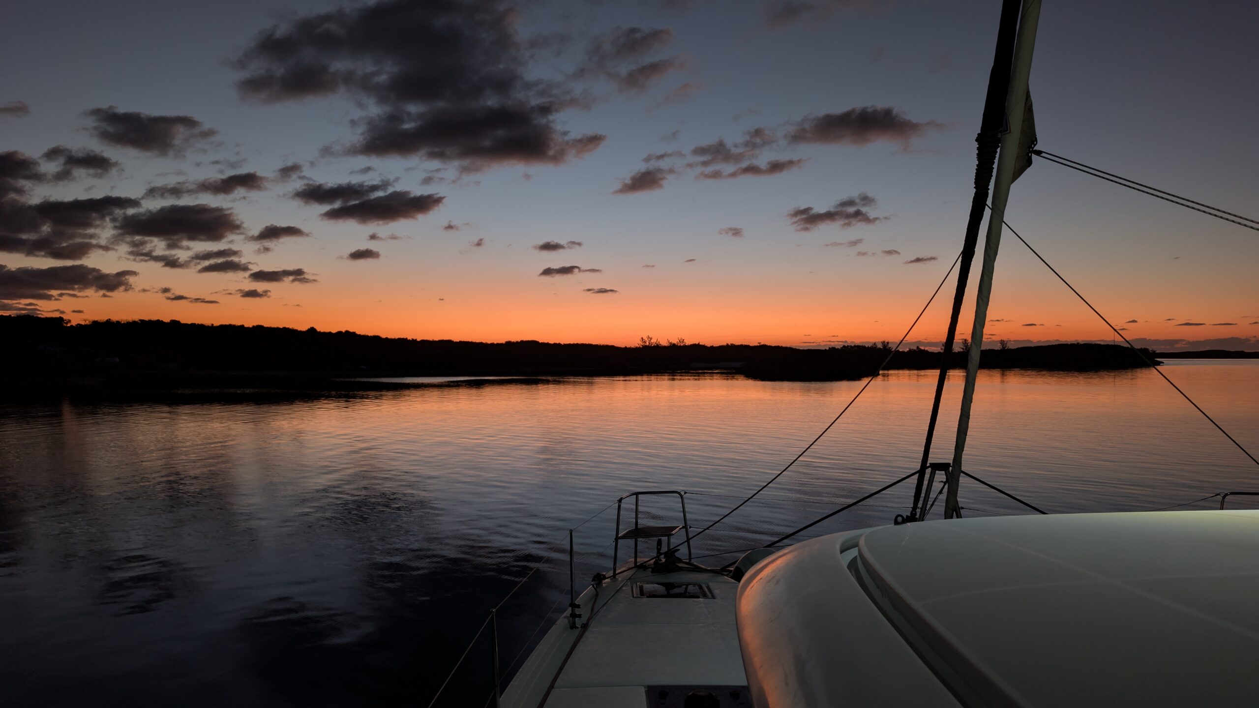 Auch heute starten wir bei Sonnenaufgang um 7 Uhr. Und wie gestern blässt der Wind heute mit weniger als 5 Knoten. 😇