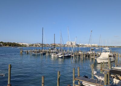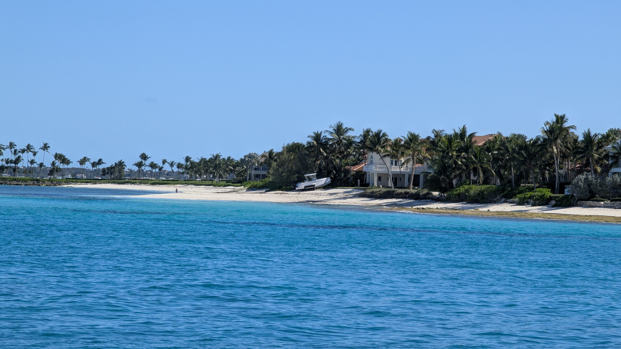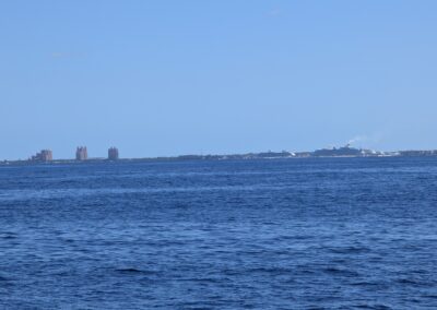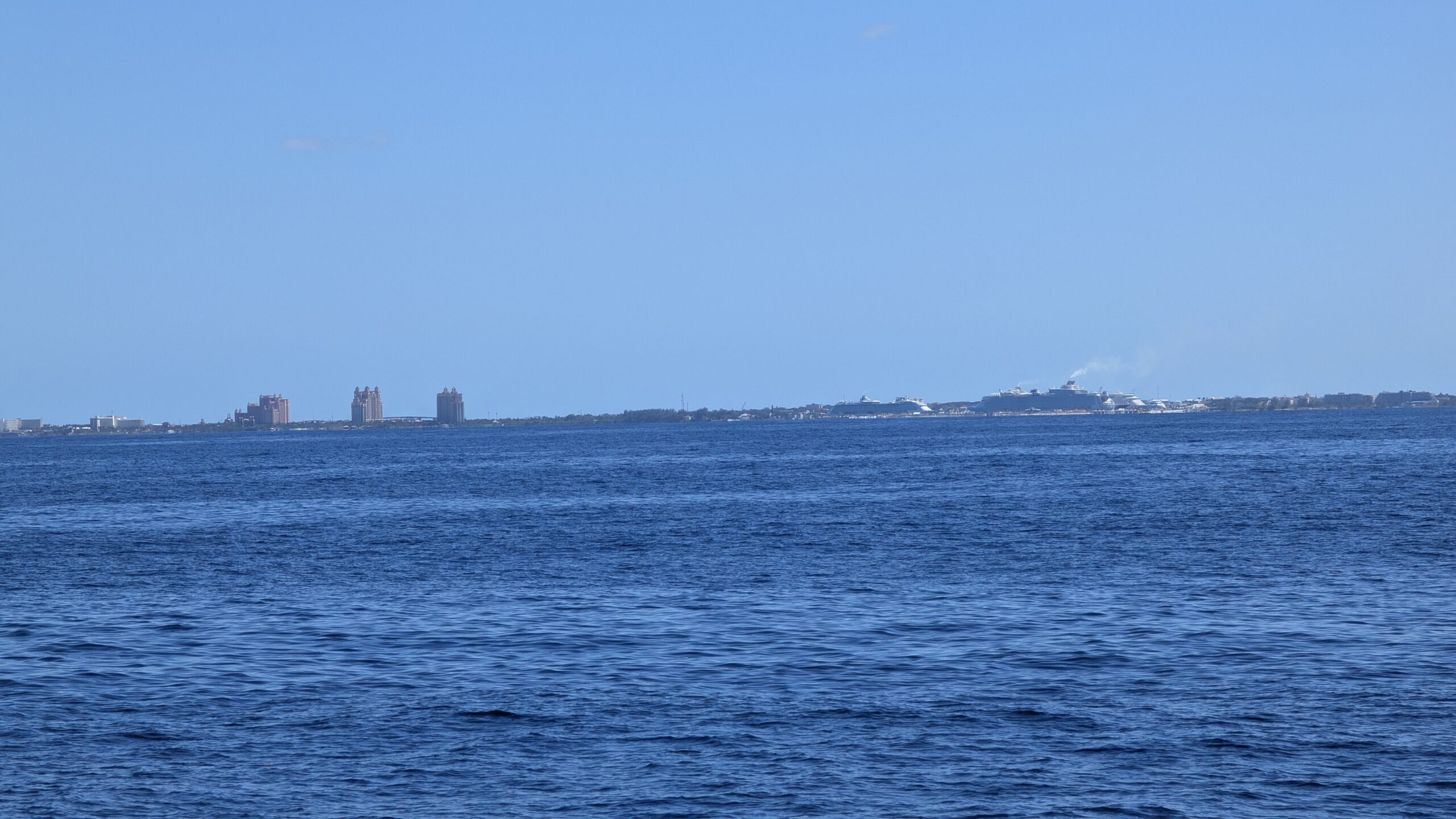 Unterwegs müssen wir zwei schlafenden Delphinen ausweichen, ansonsten ist es eine langweilige, ereignislose Fahrt. Um 16 Uhr nähern wir uns der Insel Paradise Island. Heute nehmen wir eine Abkürzung zwischen den kleinen Inseln hindurch. Das klappt tiptop und um 16:40 Uhr fällt der Anker in der Montague Bay bei Nassau.