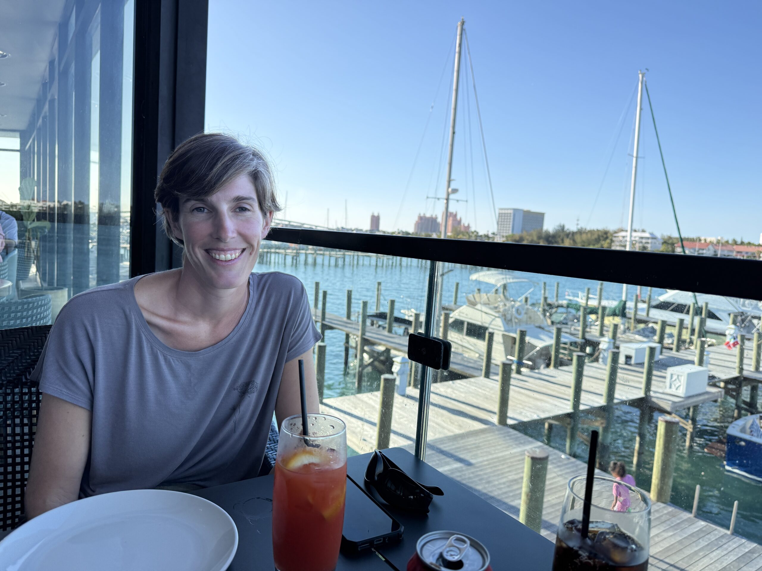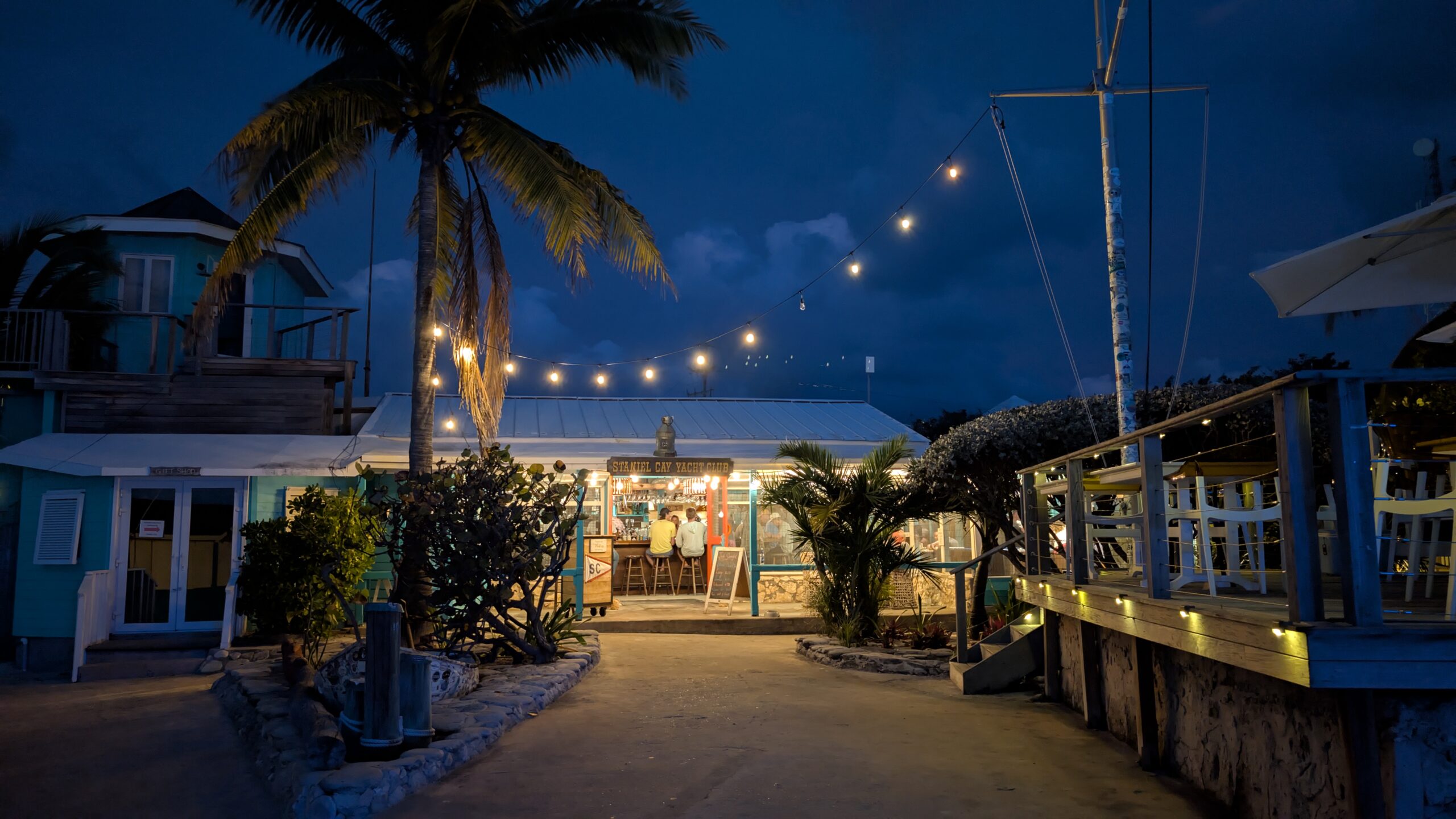 Mit dem Dinghy fahren wir in die Nassau Harbor Club Hotel and Marina, wo wir es parken können und dann im Latitudes Abendessen. Nach dem Essen wollen wir im Solomon’s Fresh Market auf der anderen Strassenseite einkaufen, aber die Öffnungszeiten auf Google Maps stimmen nicht und er ist bereits geschlossen. Thomas nervt sich ab solchen Dingen abgöttisch. 😆