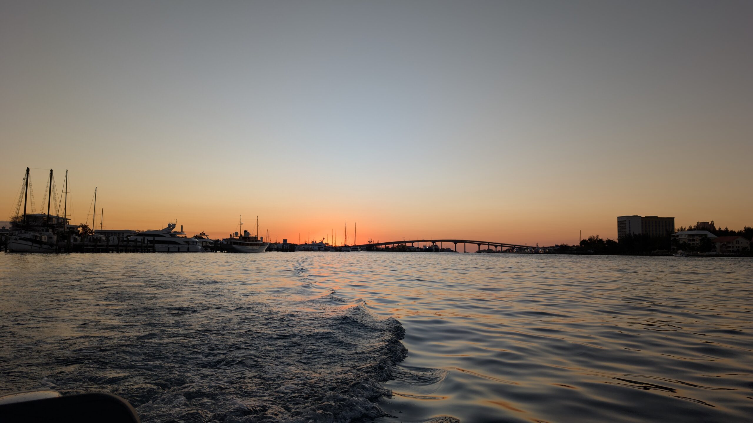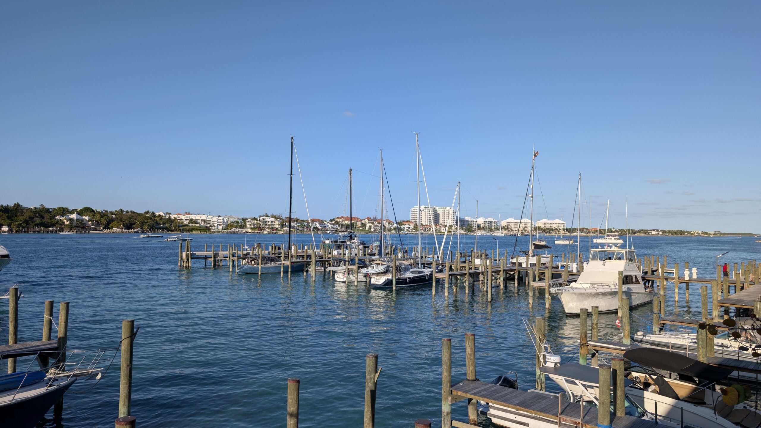 Um 19 Uhr wollen Andi und Michaela in Richtung Fort Lauderdale starten. Wir laufen schnell zu Ihnen um sie zu verabschieden. Dann wollen wir, oder eigentlich Thomas 😜, im Pisces noch einmal ein Lobster Thermidor essen gehen, aber es hat keinen freien Tisch im Restaurant. Dann gehen wir eben zurück und Thomas gibt sich mit einem Stück Bananenbrot zufrieden.