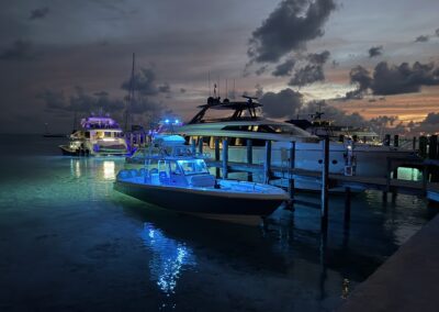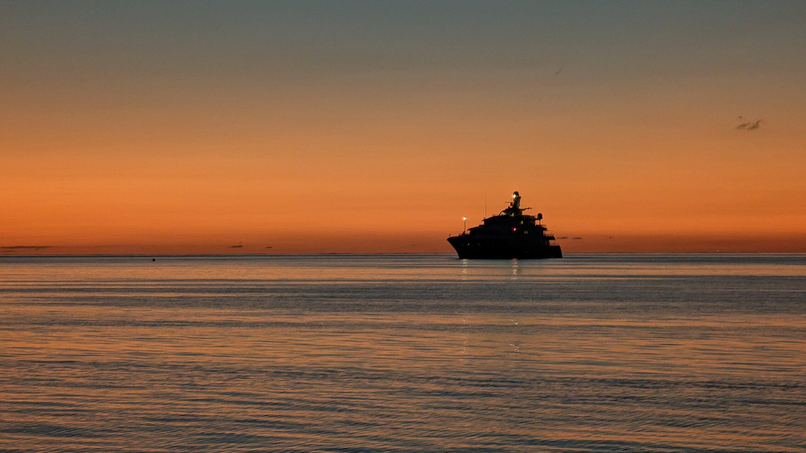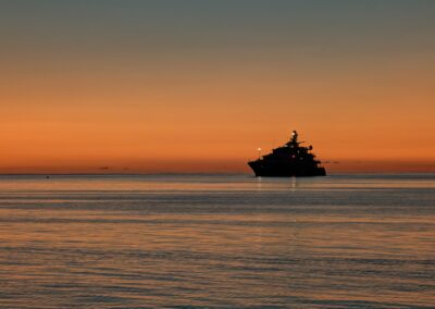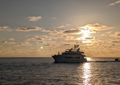 Nach dem Abendessen fahren wir noch für einen Drink zu Rudy auf’s Schiff.