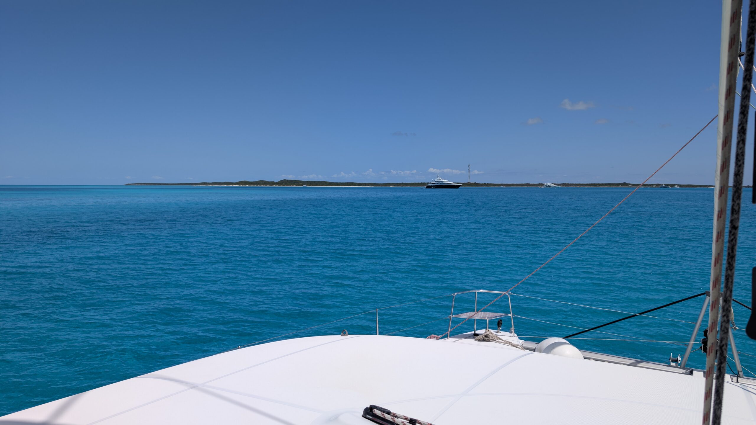 Eine Stunde vor der Planung können wir kurz vor 17 Uhr die Segel einholen und hinter dem Great Stirrup Cay bei den Berry Islands ankern. Das war jetzt mal ein sehr erfolgreicher Segel-Tag, wie wir ihn schon sehr lange nicht mehr hatten. 😁