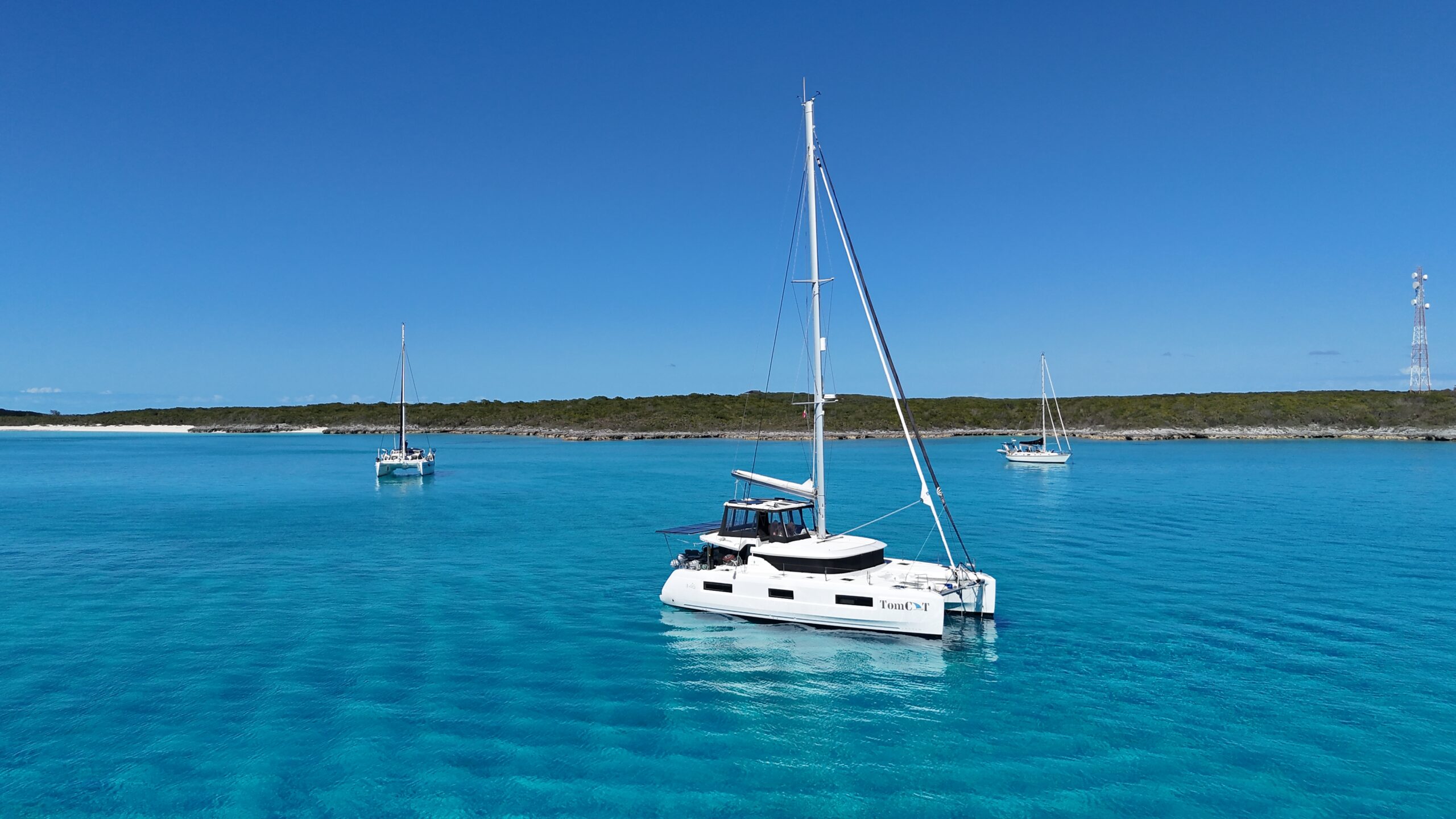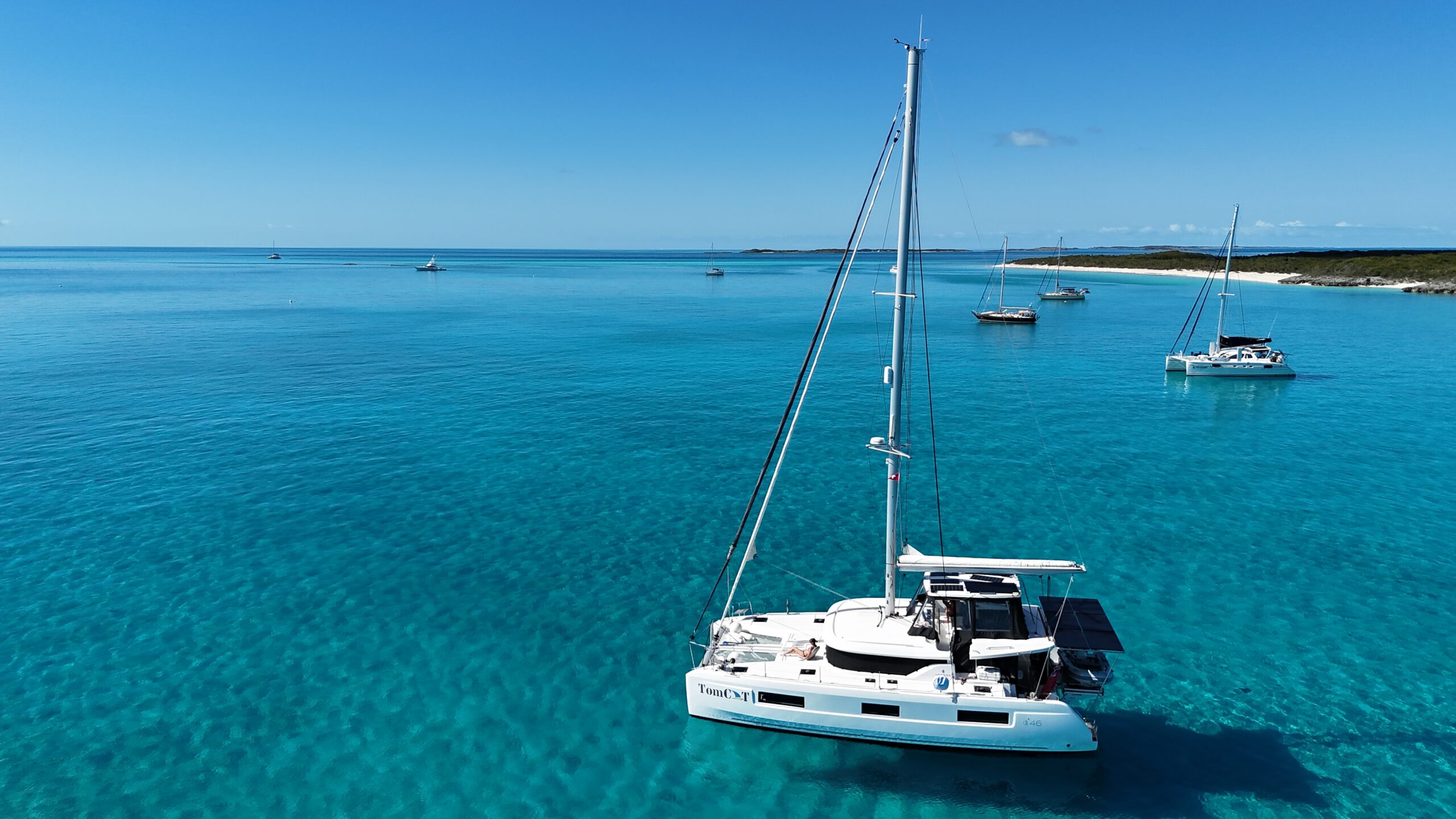 Eine Stunde später, um 15:30 Uhr, ist auch unser Anker in der Nähe eines Schwester-Schiffs von TomCAT, der Crazy Idea von Rudy Wolf, gefallen.