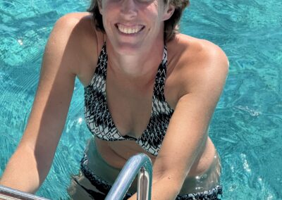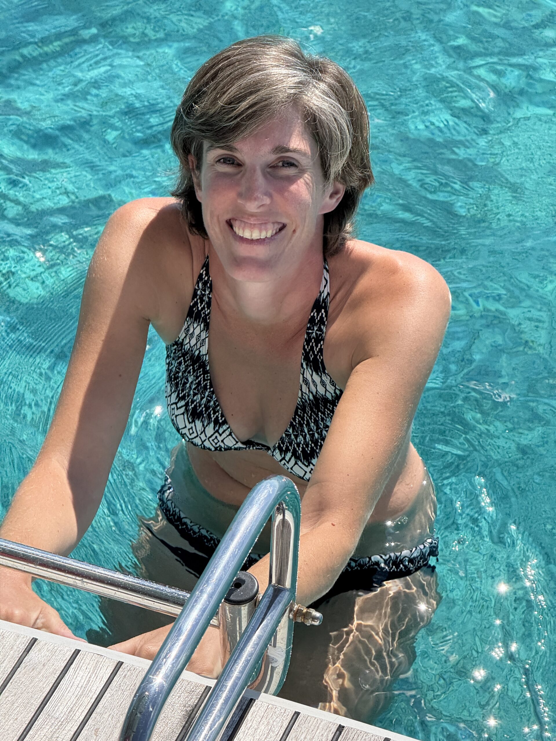 Zurück bei TomCAT mache ich einen kurzen Schwumm und versuche dann an der Sonne zu trocknen. Sie ist aber nicht mehr so stark, dafür der Wind umso mehr. 😆
