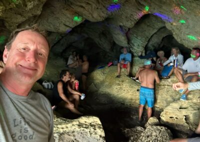 Der Regen hält aber nicht lange an. Als wir um 17 Uhr zum Cave-Rave (😜) gehen, ist es wieder trocken und sogar ein wenig sonnig.
